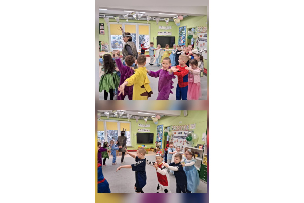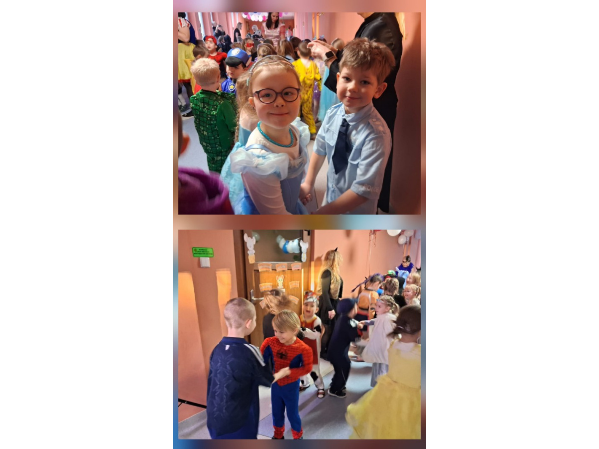 W naszym przedszkolu odbył się radosny bal karnawałowy. Tego dnia dzieci pojawiły się w barwnych strojach, wcielając się w ulubione postacie z bajek, wymarzone zawody oraz bajkowe księżniczki. Rytmiczna i wesoła muzyka zachęcała wszystkich do tańca i wspólnej zabawy. Bal stał się doskonałą okazją do integracji grupy, budowania relacji rówieśniczych dostarczając dzieciom wielu niezapomnianych przeżyć.