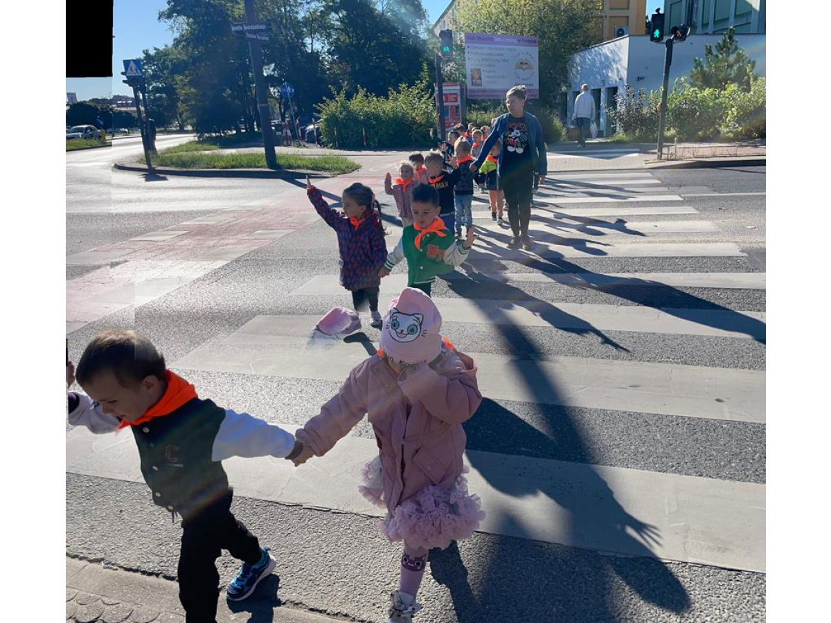 We wrześniu utrwalaliśmy zasady bezpiecznego poruszania się po drogach, przypominaliśmy sobie przepisy ruchu drogowego i wyruszyliśmy na pobliskie skrzyżowanie, aby udowodnić, że potrafimy bezpiecznie przechodzić przez ulicę.