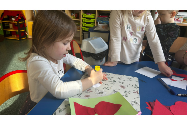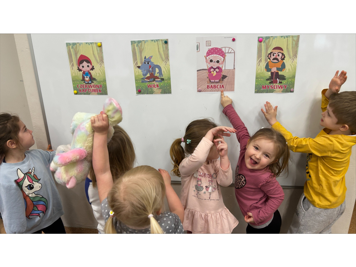 W ostatnim tygodniu lutego dzieci z grupy „Motylki” poznawały różne bajki i ich bohaterów. Jedną z nich była historia Czerwonego Kapturka, którą przedszkolaki wysłuchały, a następnie wykonały własne postacie z wyciętych elementów papieru.