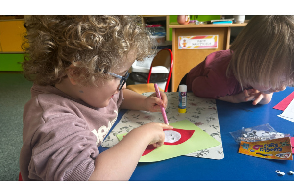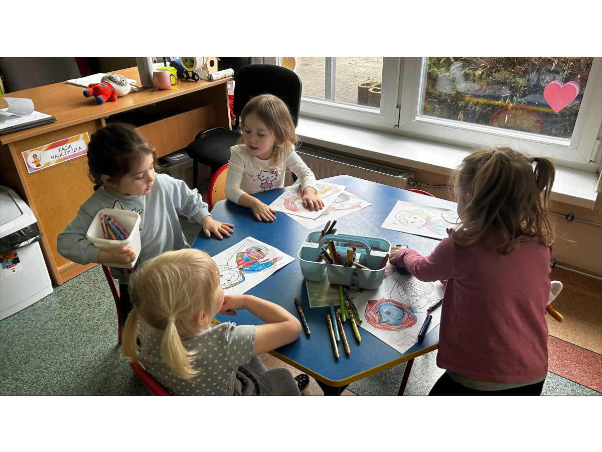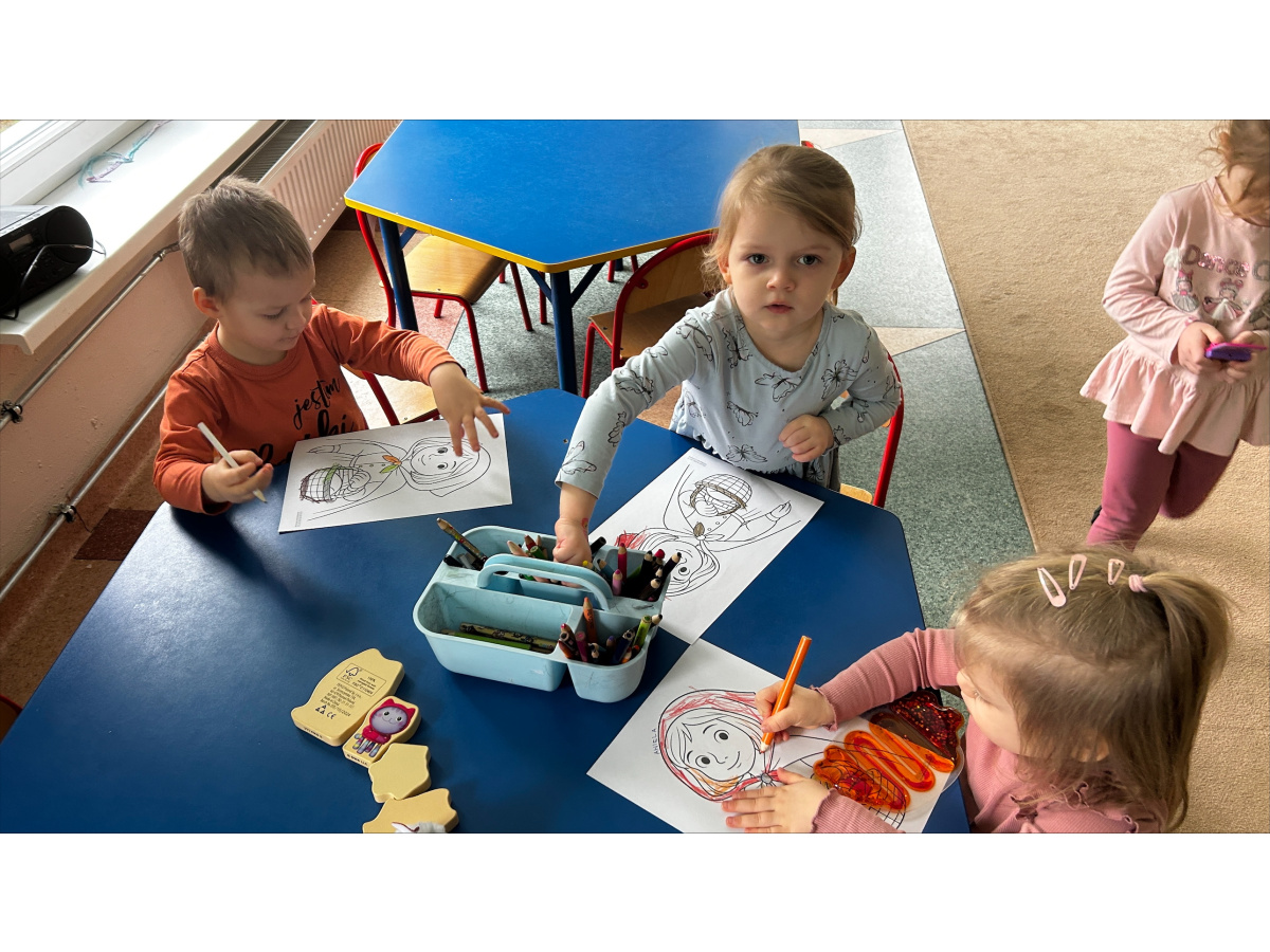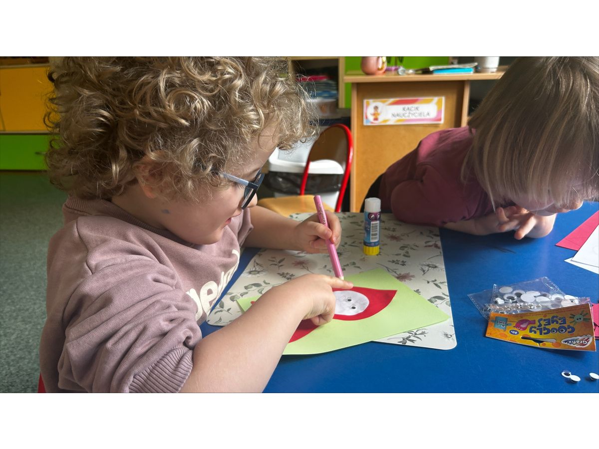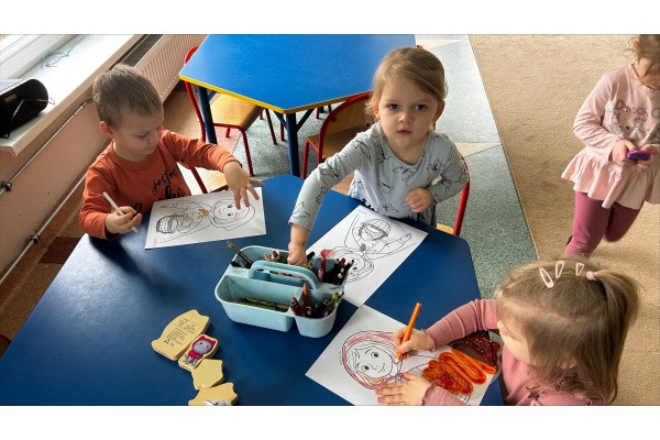 Bajka stała się także okazją do rozmowy o bezpieczeństwie, dzieci dowiedziały się, jak ważna jest ostrożność wobec nieznajomych oraz przypomniały sobie zasady obowiązujące w przedszkolu, m.in. aby w razie potrzeby wracać do sali i zawsze pozostawać pod opieką dorosłych. Był to dzień pełen emocji, nauki i twórczej zabawy.