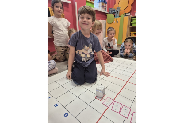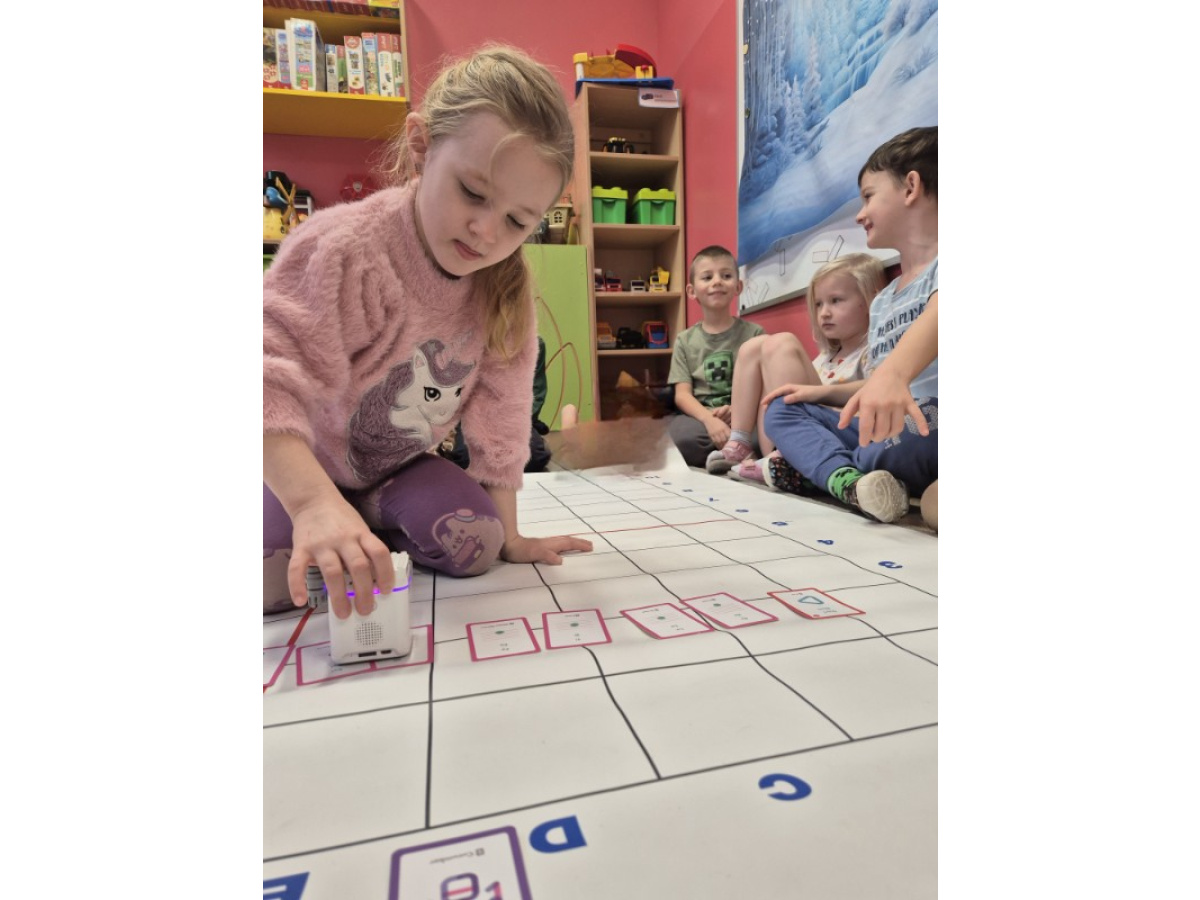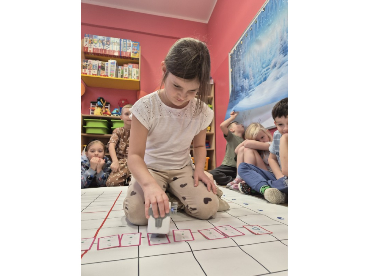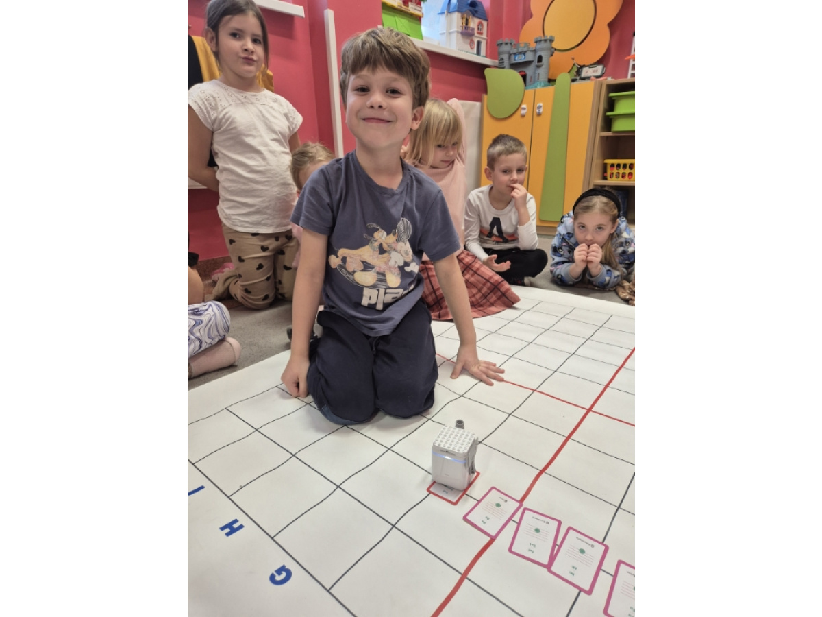 Podczas zajęć z GeniBotem Świetliki rozwijały umiejętności logicznego myślenia, kreatywności i współpracy. Dzieci poznawały podstawy programowania poprzez zabawę, kierując robotem i obserwując efekty swoich działań.
