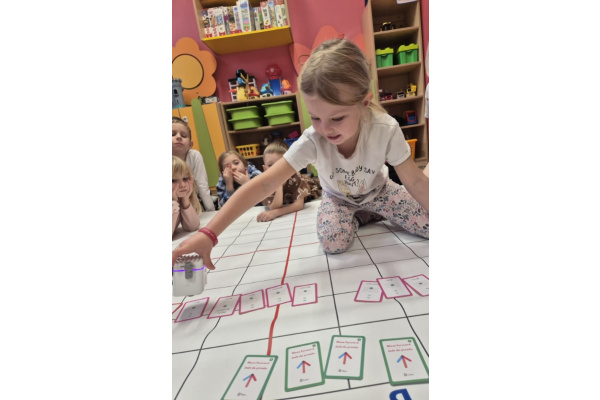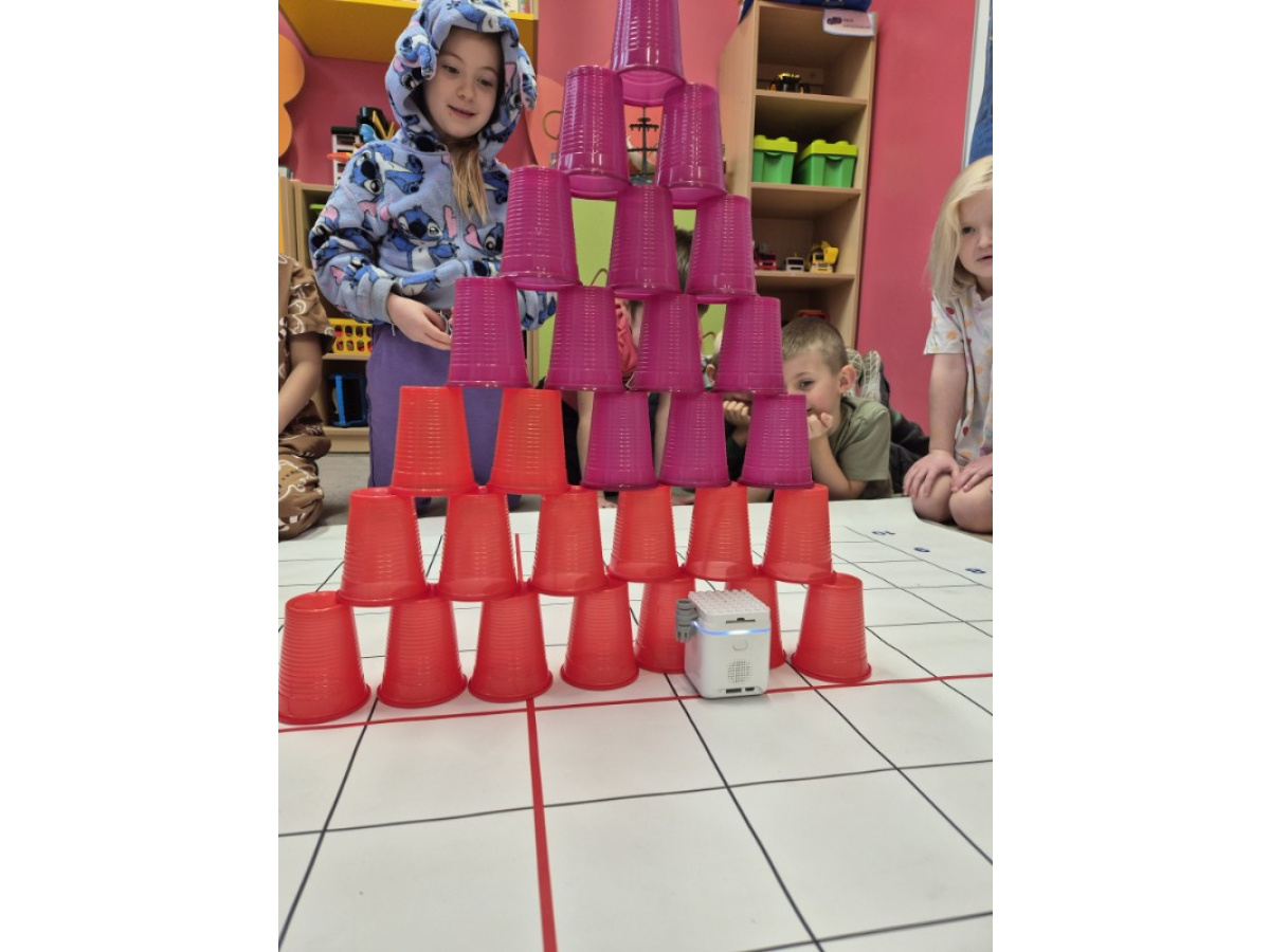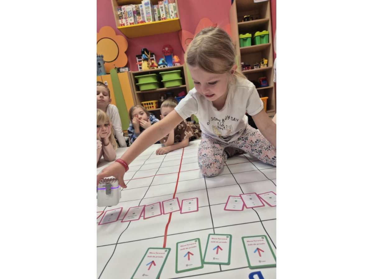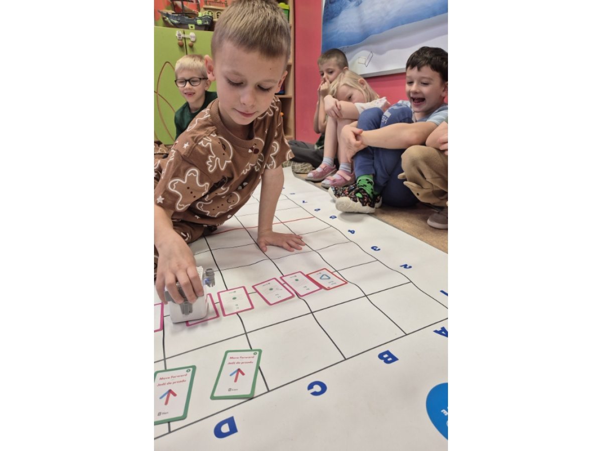 Podczas zajęć z GeniBotem Świetliki rozwijały umiejętności logicznego myślenia, kreatywności i współpracy. Dzieci poznawały podstawy programowania poprzez zabawę, kierując robotem i obserwując efekty swoich działań.