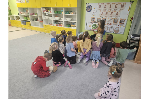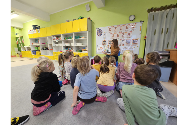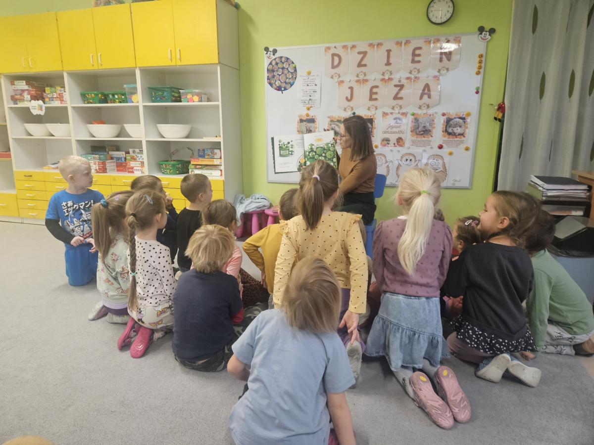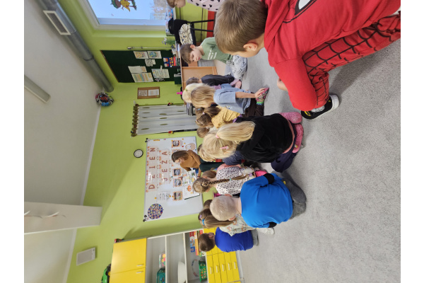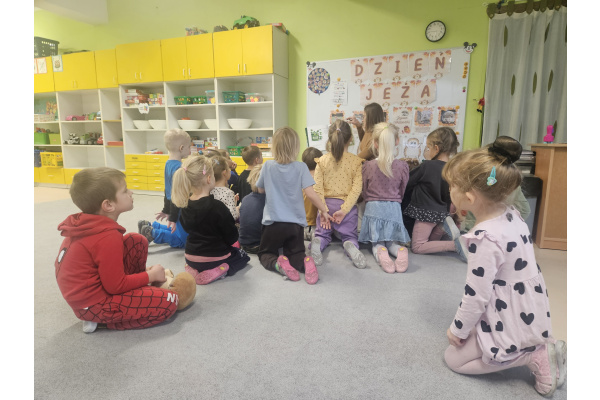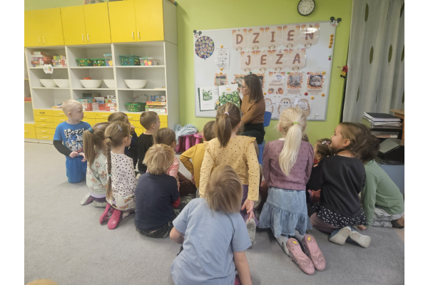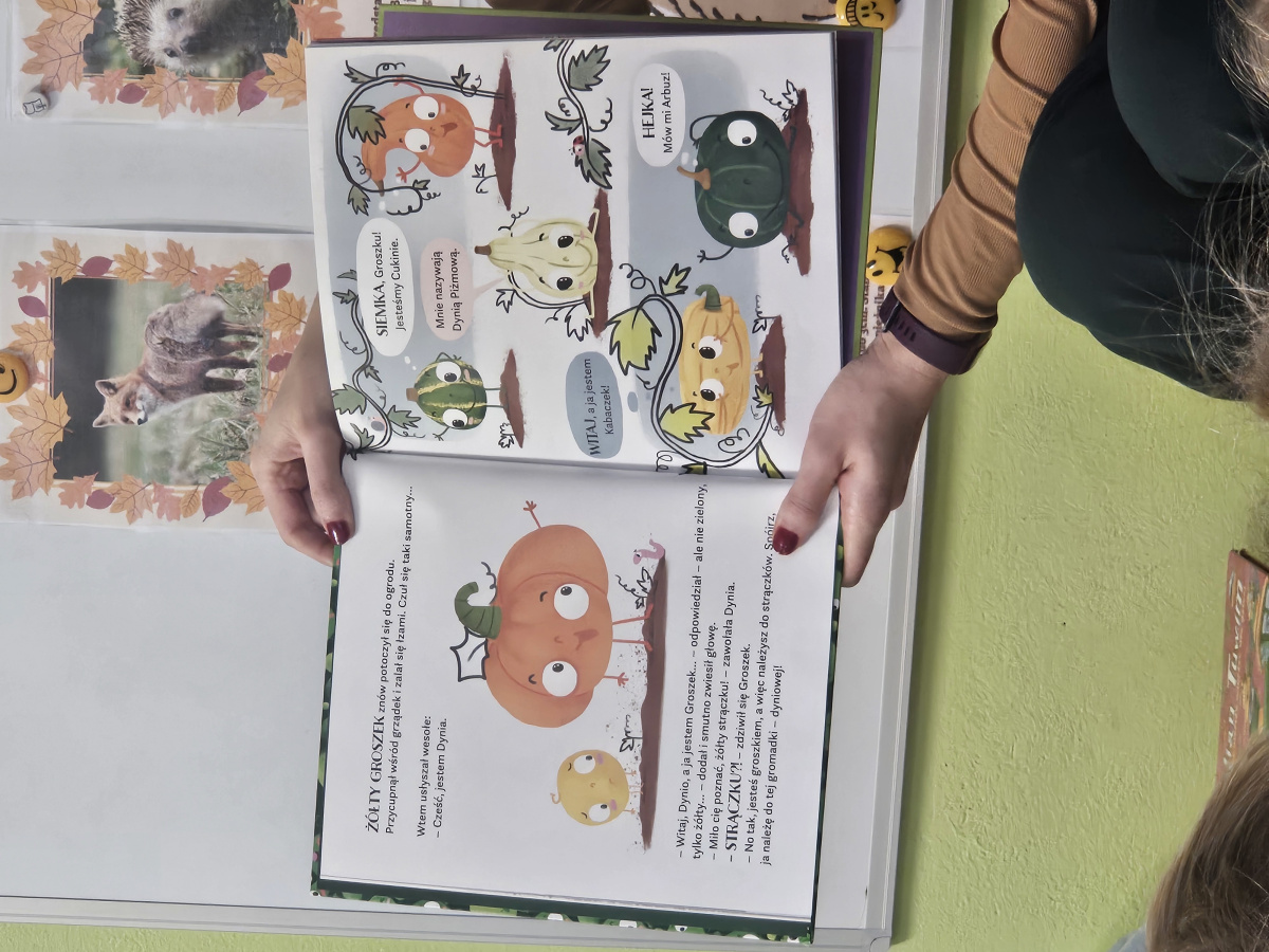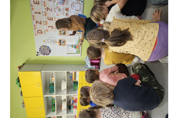 W pewien piękny piątek do naszej grupy zawitała mama Mai, aby przeczytać nam książkę. Chętnie usiedliśmy na dywanie żeby oddać się lekturze. Tytułowym bohaterem był wyjątkowy Groszek, który wcale nie był zielony jak pozostałe. Udał się w daleką podróż, aby dowiedzieć się, że nie jest inny i gorszy tylko piękny i wyjątkowy. Książka bardzo przypadła nam do gustu.
