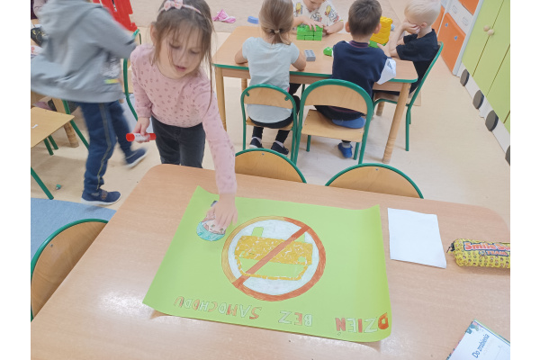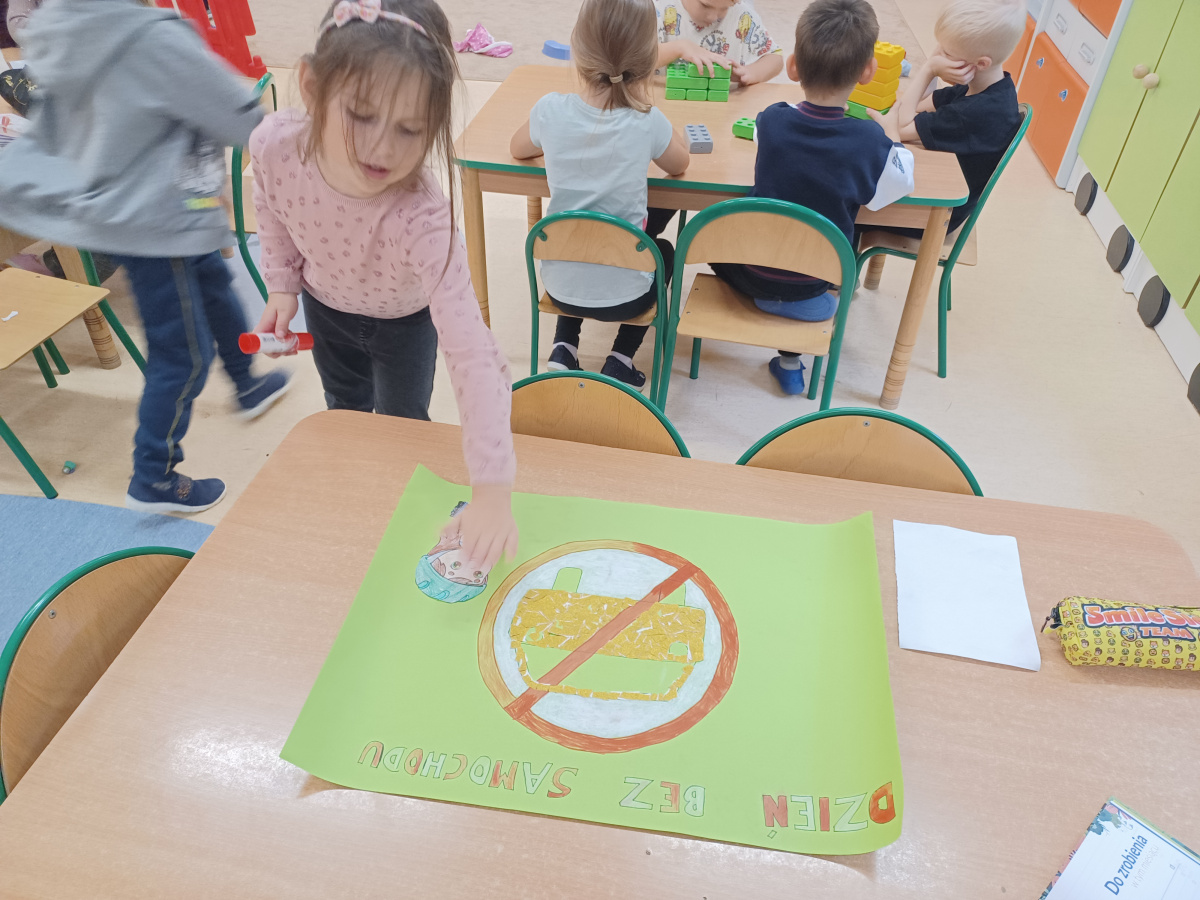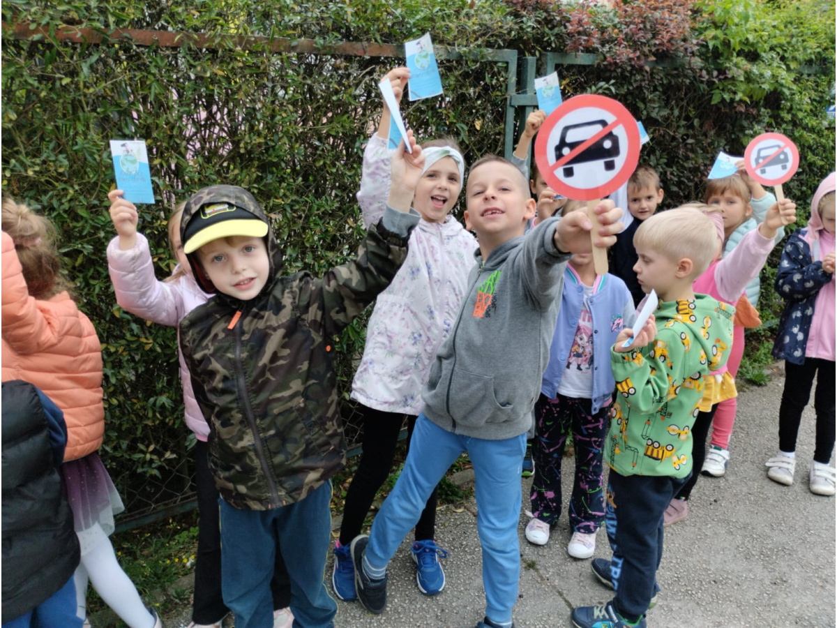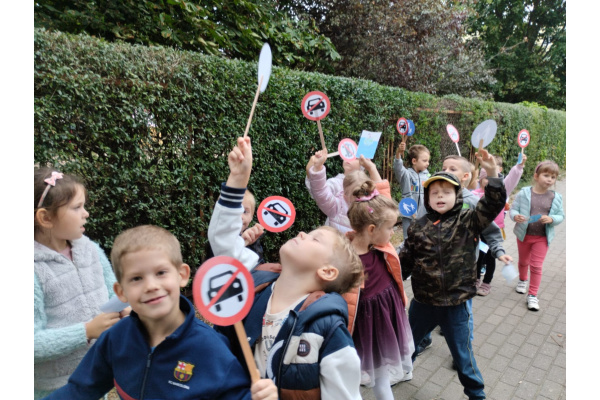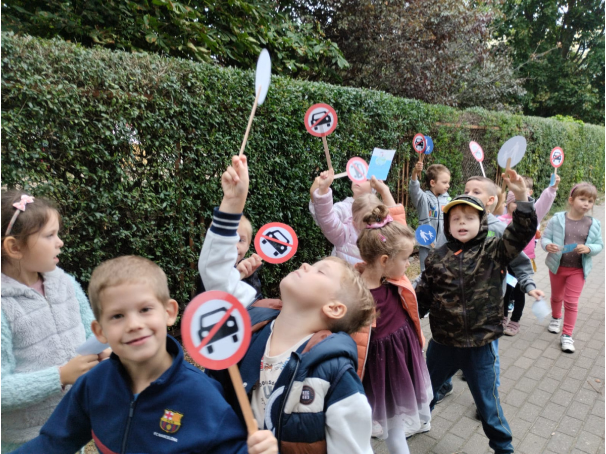 22 września obchodziliśmy "Dzień bez samochodu". W tym dniu przypominaliśmy sobie jakie działania podejmowane przez człowieka szkodzą naszej planecie, a jakie są pożądane i ją chronią. Aby móc oddychać swierzym powietrzem, dzieci zgodnie stwierdziły, że dni bez samochodu powinno być zdecydowanie więcej. Wzięliśmy także udział w pochodzie wokół przedszkola, aby przypomnieć innym ludziom o obchodzonym dniu i zwiększyć ich świadomość na temat negatywnego wpływu spalin na nasze środowisko.
