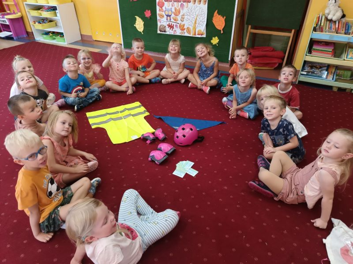 Oprócz pierwszego dnia jesieni w piątek 22 września obchodziliśmy również światowy dzień bez samochodu. Dzieci rozmawiały na temat tego, czym można jeździć zamiast auta i w co trzeba się wtedy zaopatrzyć. Niezłą frajdę przyniosło dzieciom przymierzanie rekwizytów zapewniających bezpieczeństwo na drodze. Na koniec niektóre przedszkolaki zaprezentowały nam swoje pojazdy.