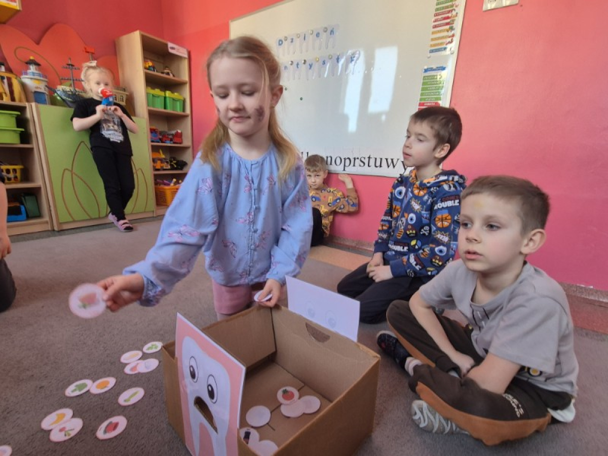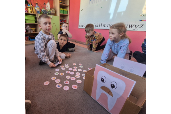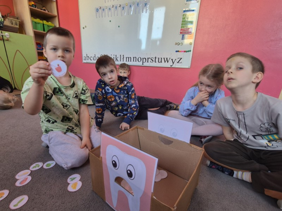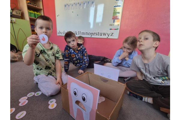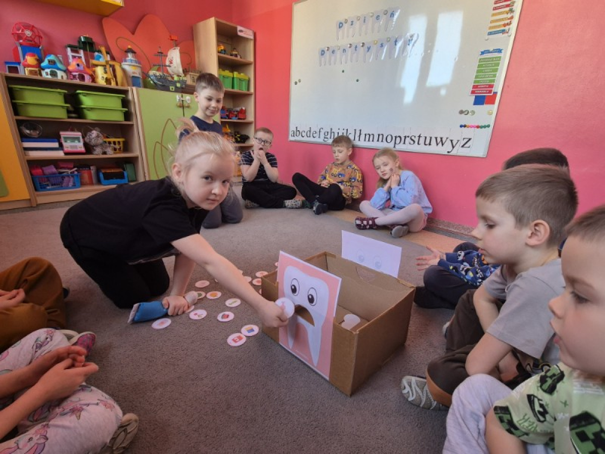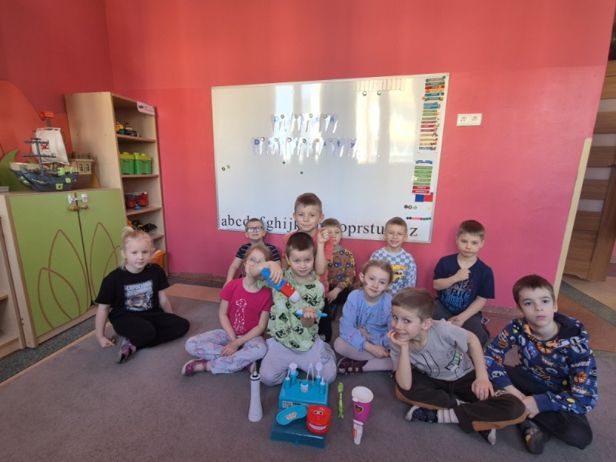 Z okazji Dnia Dentysty dzieci z grupy Świetliki poznały zasady prawidłowej higieny jamy ustnej oraz dowiedziały się, jak dbać o zdrowe zęby. Przedszkolaki uczestniczyły w rozmowach, zabawach edukacyjnych oraz utrwalały prawidłową technikę szczotkowania zębów. Był to dzień pełen ciekawych informacji i uśmiechów, który przypomniał wszystkim, jak ważna jest codzienna troska o zdrowy uśmiech.