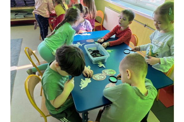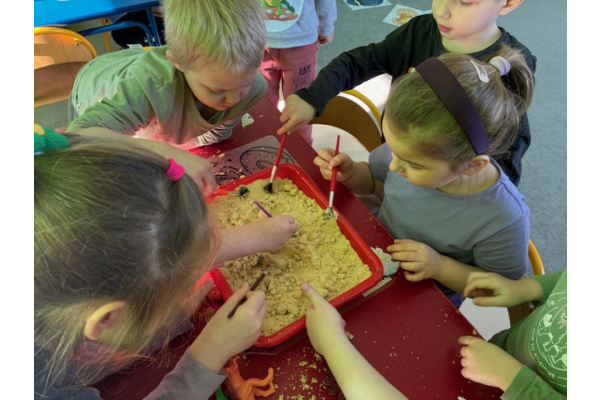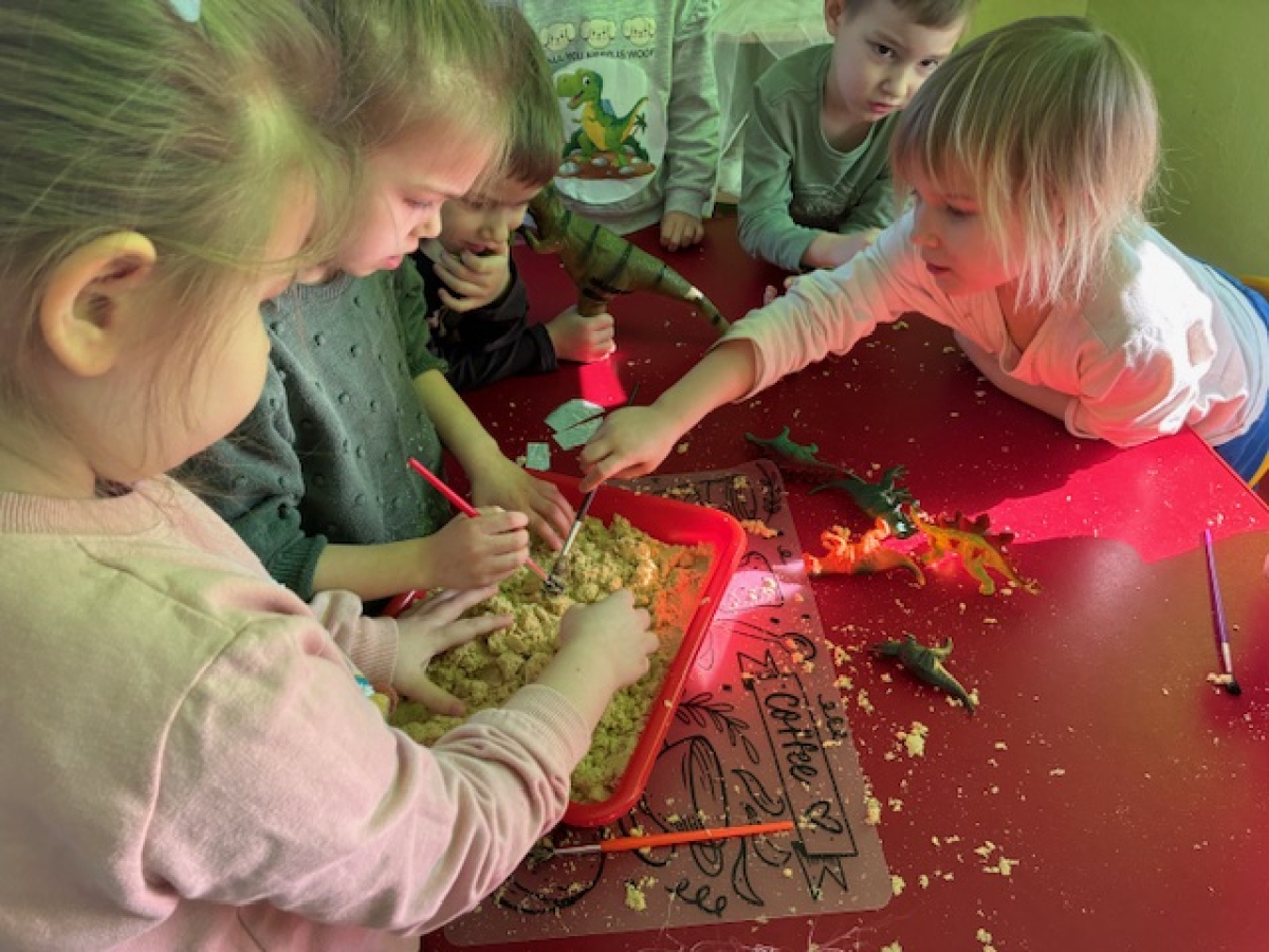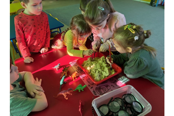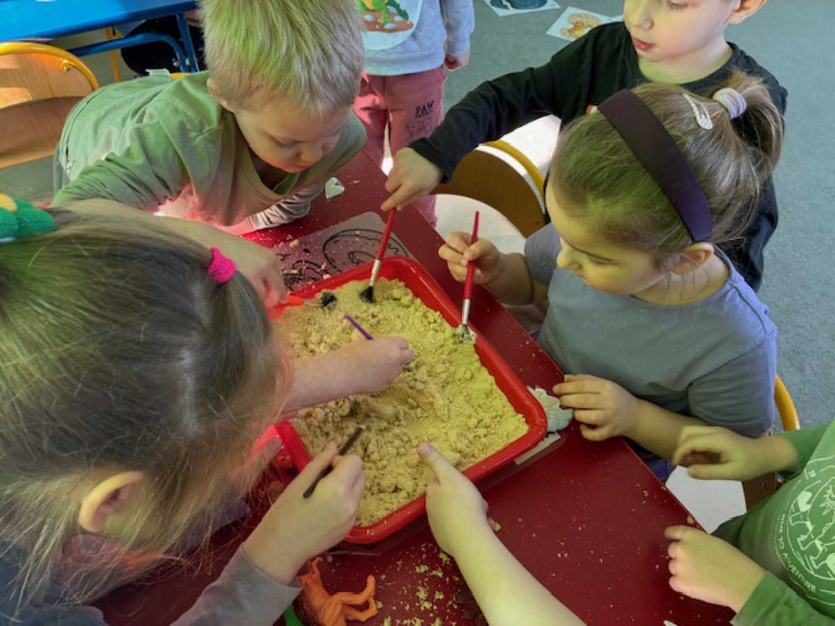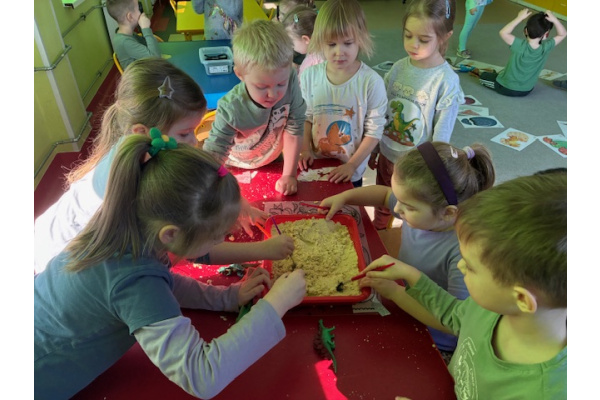 26 lutego w grupie „ Myszek” obchodziliśmy Dzień Dinozaura. Tego dnia dzieci przeniosły się w fascynujący świat prehistorycznych gadów. Oglądały prezentację multimedialną, dzięki której poznały różne gatunki dinozaurów oraz ciekawostki na ich temat. Przedszkolaki wcieliły się w rolę paleontologów – wyszukiwały dinozaury ukryte w piasku oraz odkrywały "skamieniałości". Dużym zainteresowaniem cieszyły się również gry memory – zarówno w wersji tradycyjnej, jak i na tablicy interaktywnej, które rozwijały pamięć i koncentrację.Dzieci przyniosły do przedszkola swoje zabawki oraz książki o tematyce dinozaurów, wzbogacając kącik tematyczny i dzieląc się swoją wiedzą z rówieśnikami.