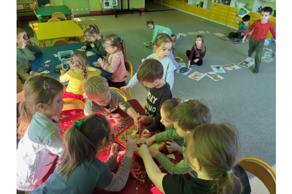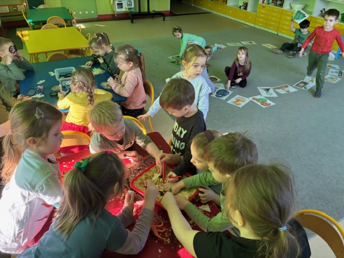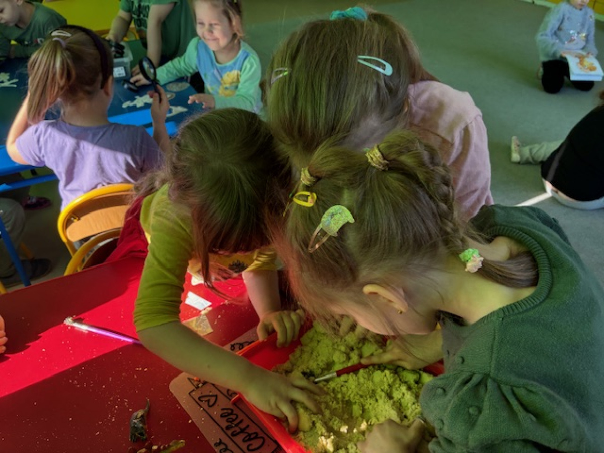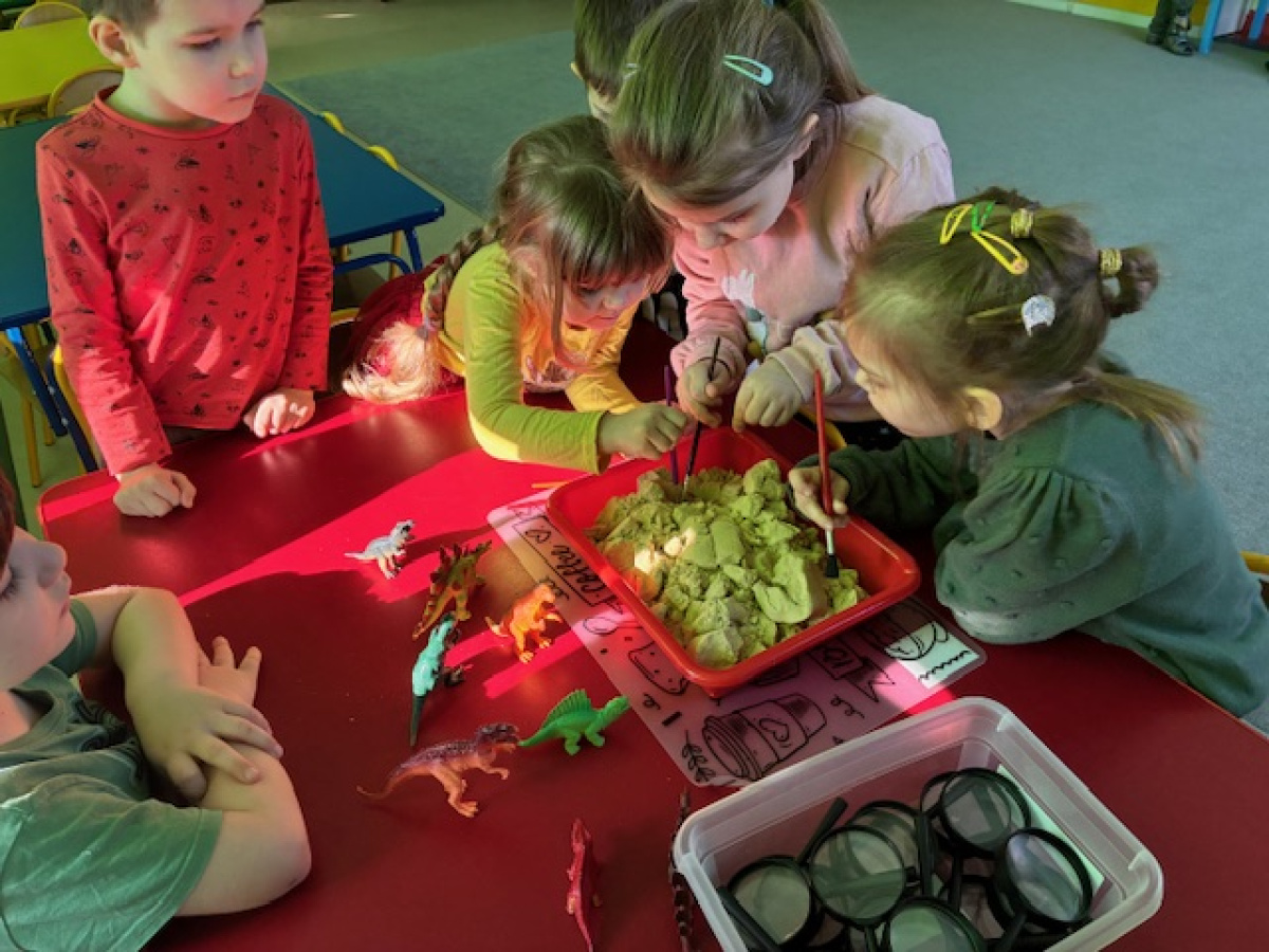 26 lutego w grupie „ Myszek” obchodziliśmy Dzień Dinozaura. Tego dnia dzieci przeniosły się w fascynujący świat prehistorycznych gadów. Oglądały prezentację multimedialną, dzięki której poznały różne gatunki dinozaurów oraz ciekawostki na ich temat. Przedszkolaki wcieliły się w rolę paleontologów – wyszukiwały dinozaury ukryte w piasku oraz odkrywały "skamieniałości". Dużym zainteresowaniem cieszyły się również gry memory – zarówno w wersji tradycyjnej, jak i na tablicy interaktywnej, które rozwijały pamięć i koncentrację.Dzieci przyniosły do przedszkola swoje zabawki oraz książki o tematyce dinozaurów, wzbogacając kącik tematyczny i dzieląc się swoją wiedzą z rówieśnikami.