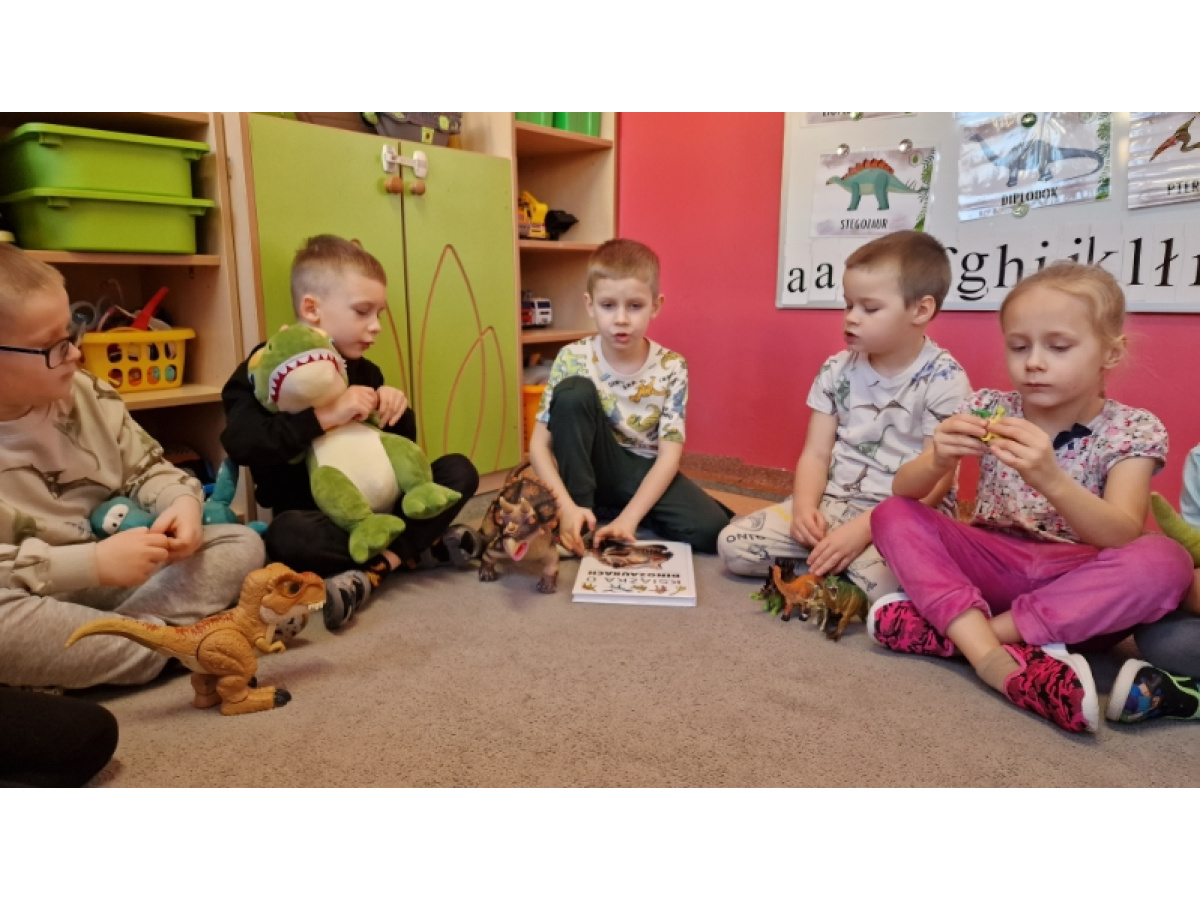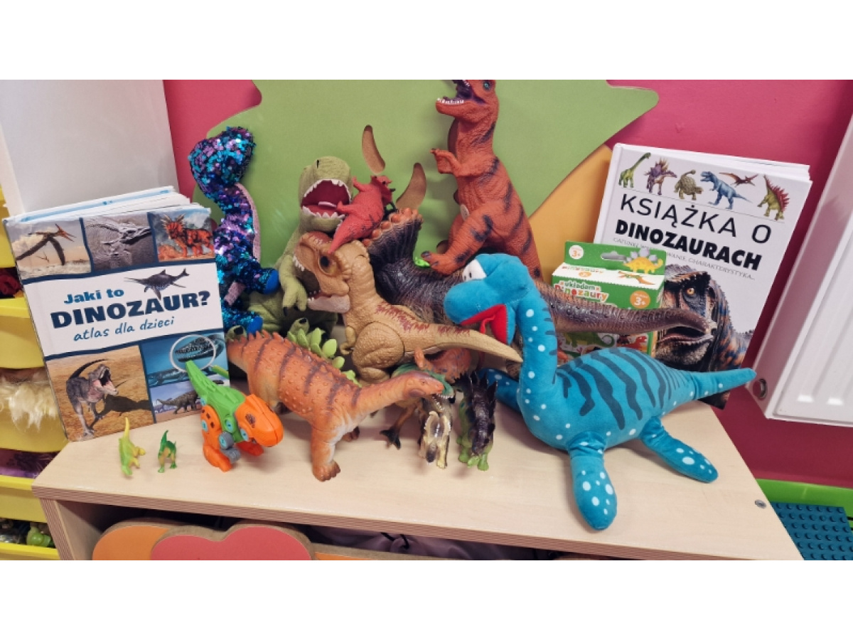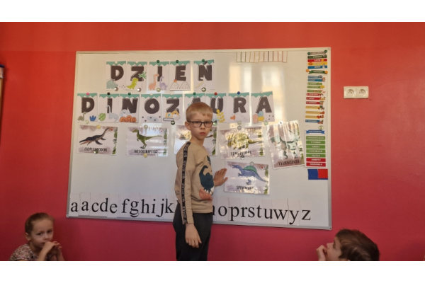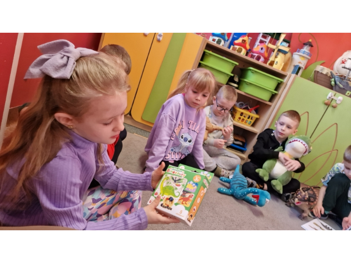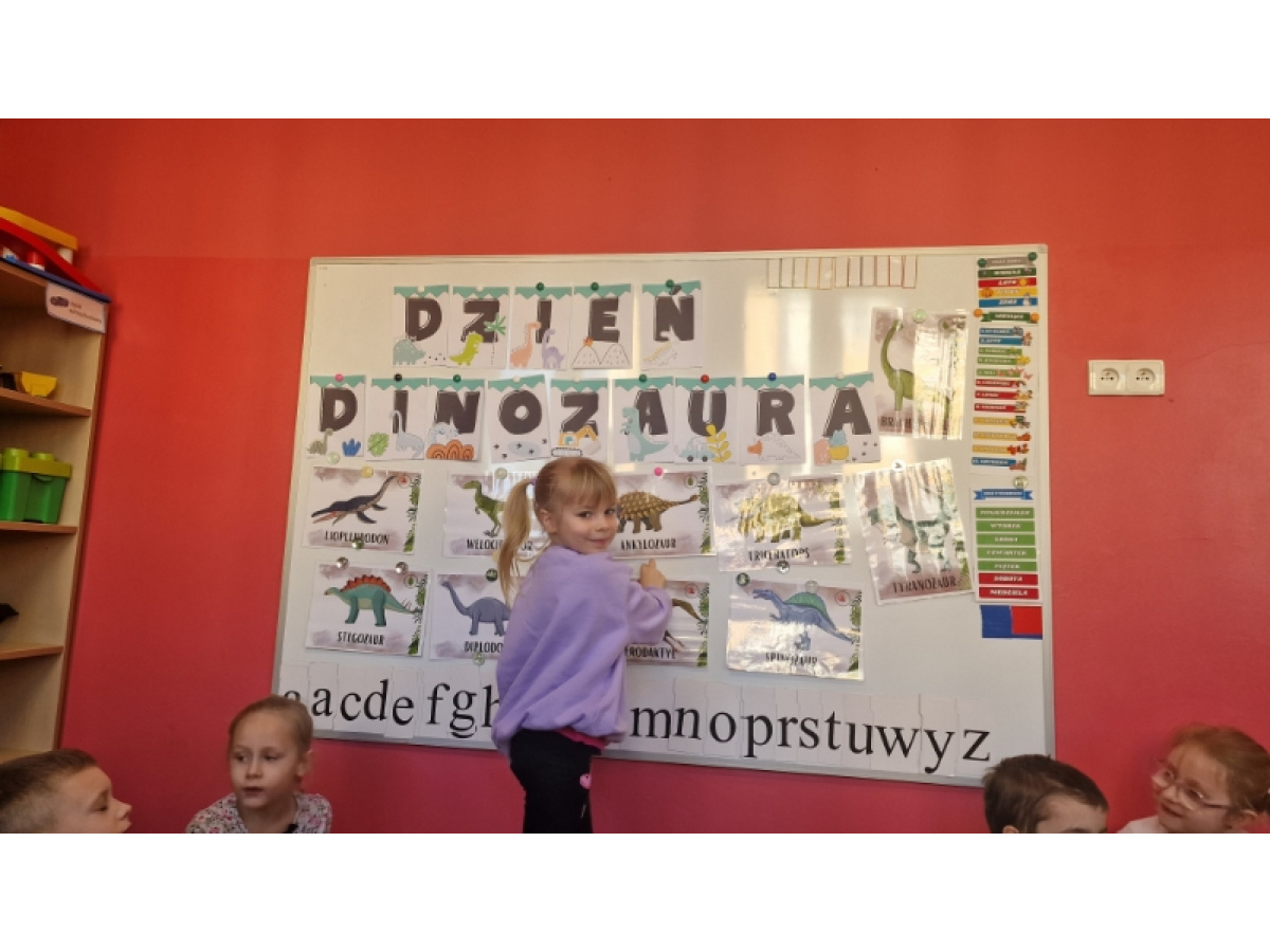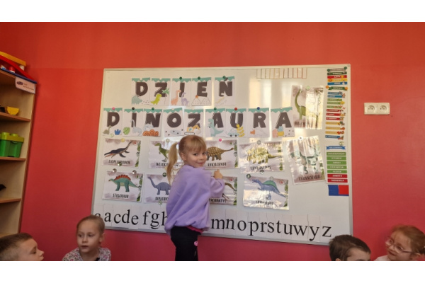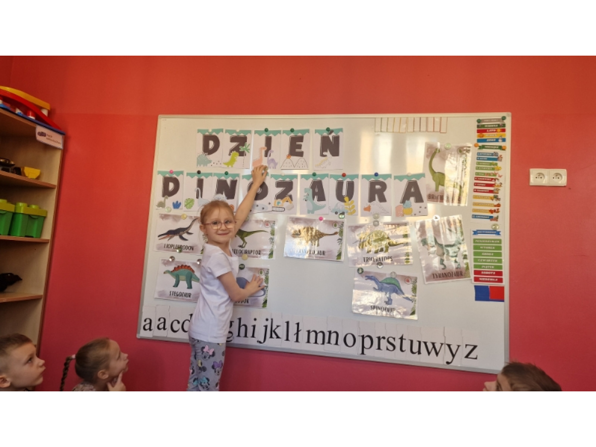 Nasze przedszkolaki przeniosły się w prehistoryczny świat! Dzieci bawiły się, poznawały ciekawostki o dinozaurach i uczestniczyły w tematycznych zabawach. Na zdjęciach widać uśmiechy, kreatywne kostiumy i radosną atmosferę pełną odkryć i przygód. To był dzień pełen śmiechu, zabawy i fascynujących „dinozaurzych” doświadczeń!