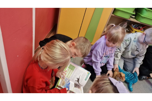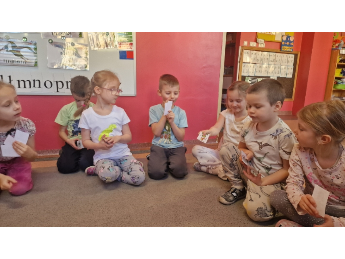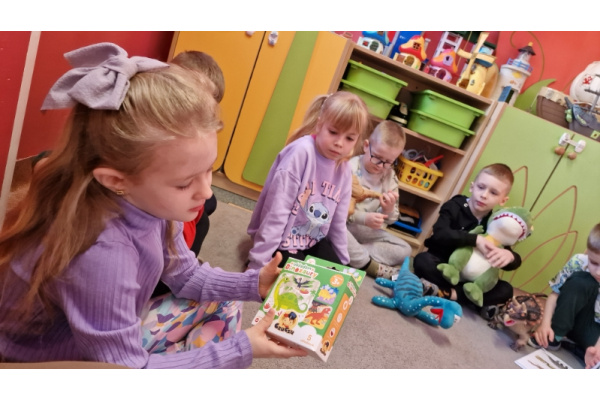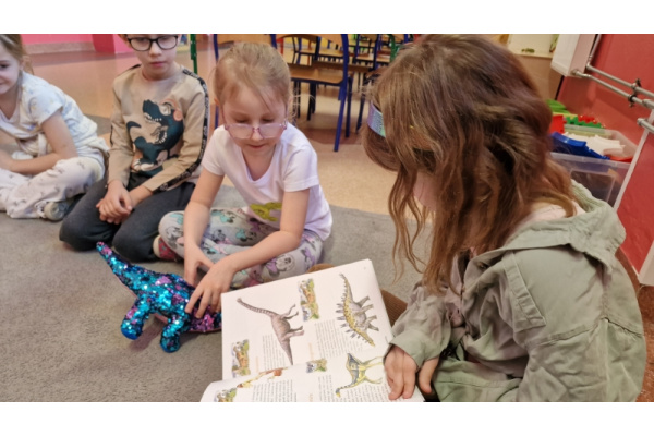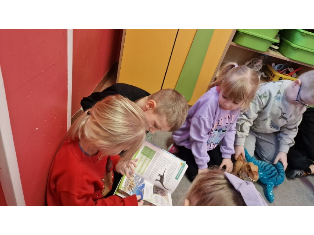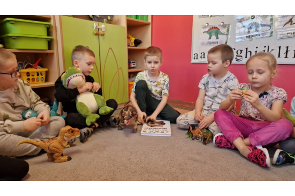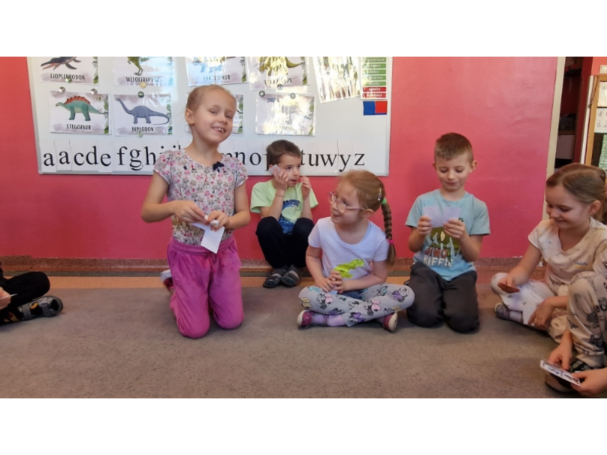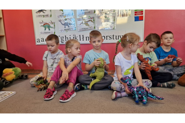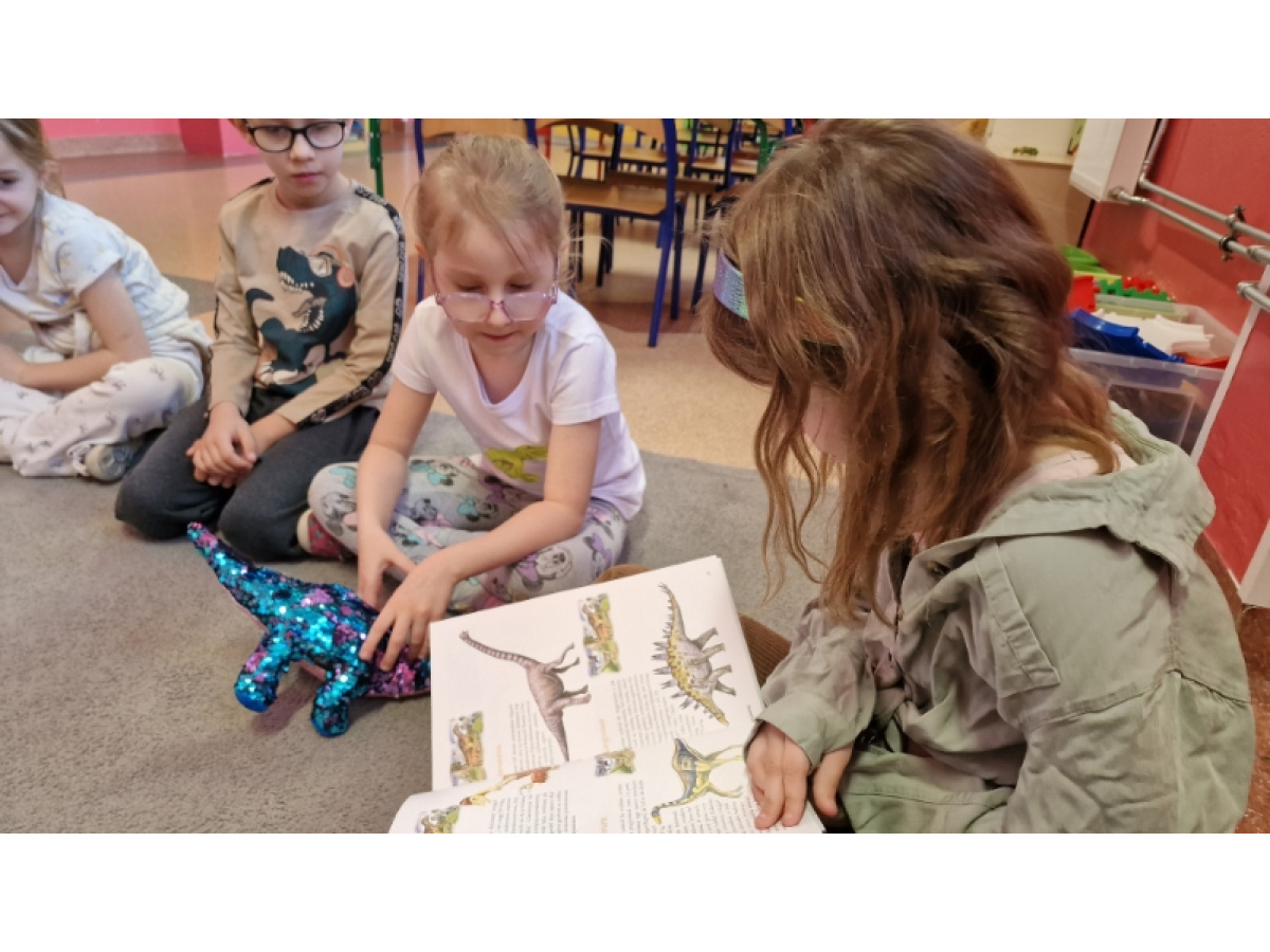 Nasze przedszkolaki przeniosły się w prehistoryczny świat! Dzieci bawiły się, poznawały ciekawostki o dinozaurach i uczestniczyły w tematycznych zabawach. Na zdjęciach widać uśmiechy, kreatywne kostiumy i radosną atmosferę pełną odkryć i przygód. To był dzień pełen śmiechu, zabawy i fascynujących „dinozaurzych” doświadczeń!