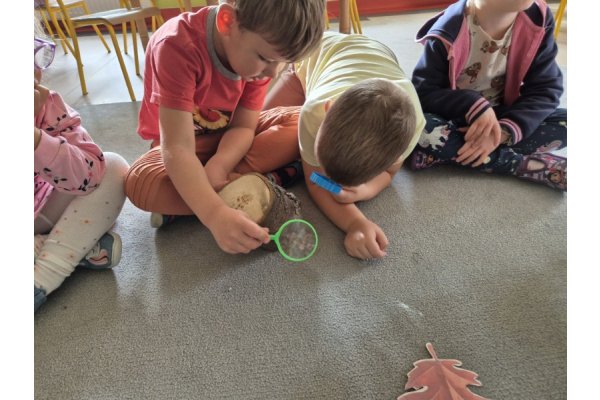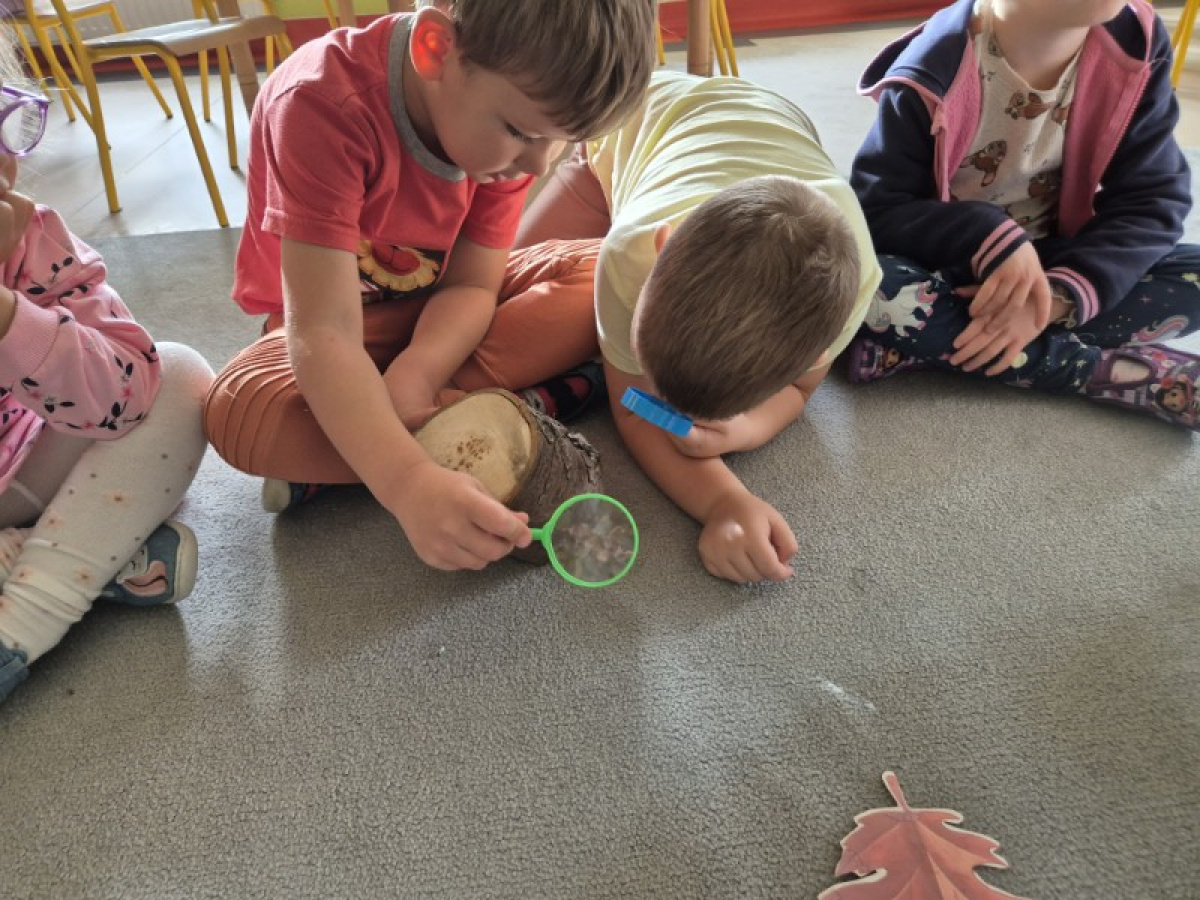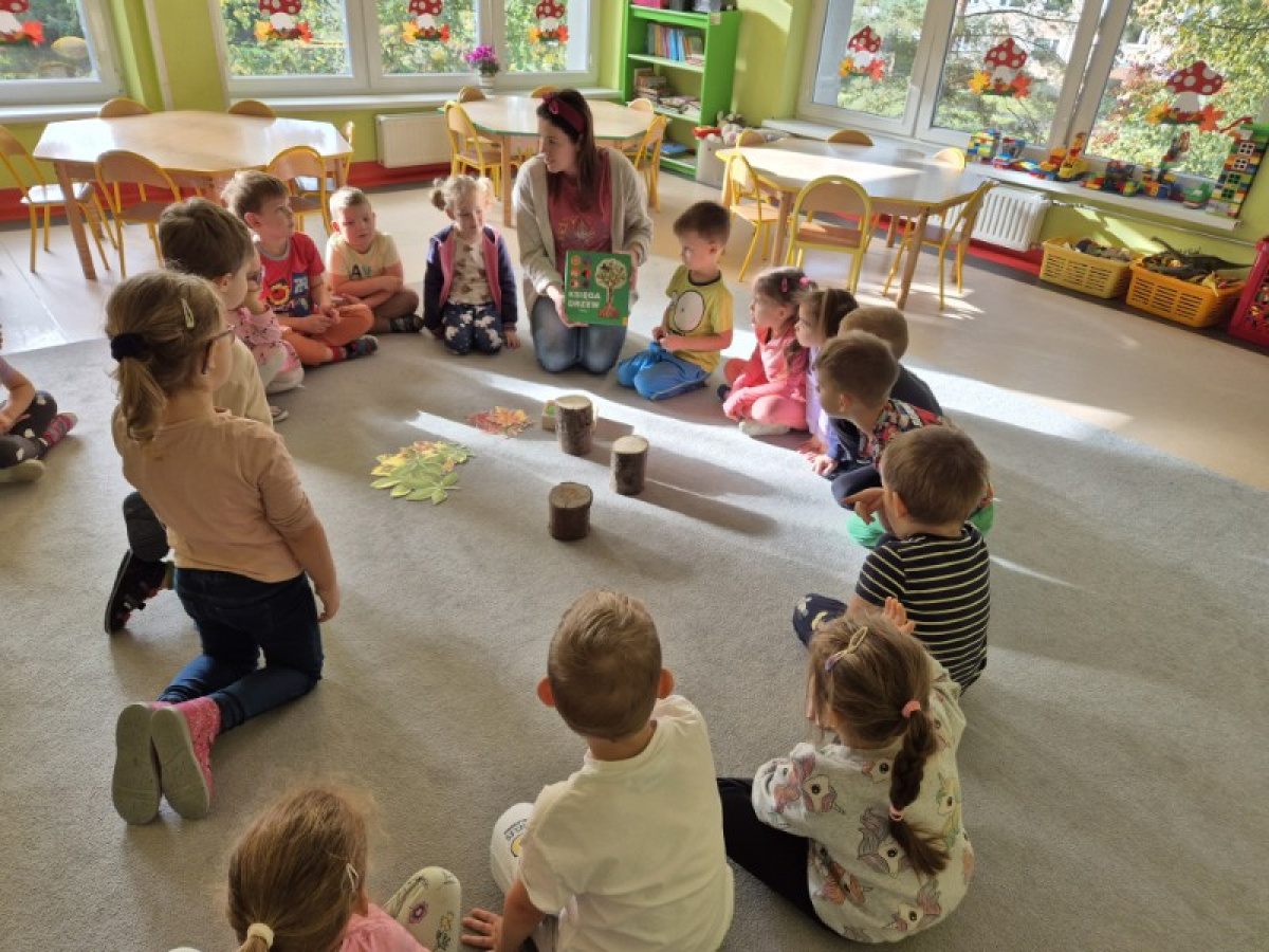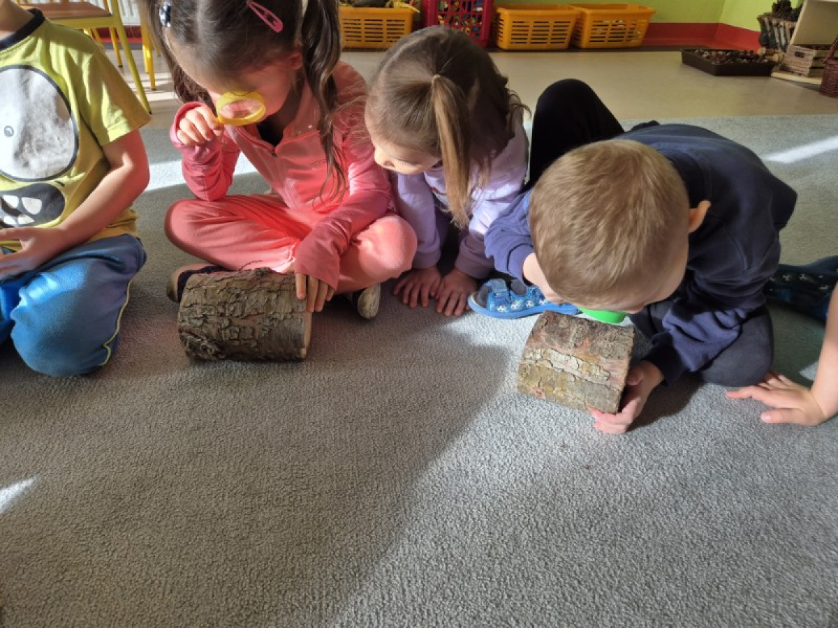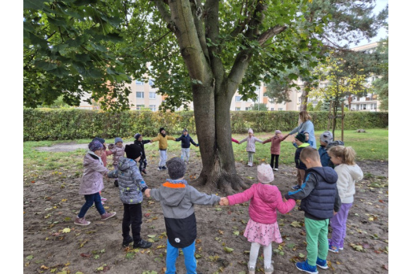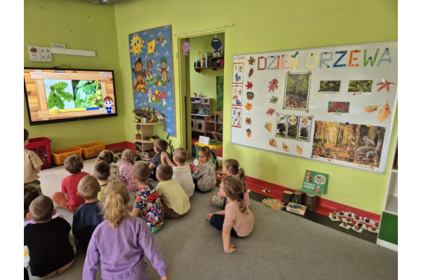 W piątek 10 października obchodziliśmy Święto Drzewa. Zajęcia rozpoczęliśmy od rozmowy kierowanej popartej pytaniami: Po co sadzimy drzewa?, Jaka jest rola drzew? Następnie wysłuchaliśmy wiersza M. Skrobacz pt: „Smutne drzewo”, który uwrażliwił nas na szanowanie drzew wokół nas. Wesoło bawiliśmy się biorąc udział w różnych zabawach ruchowych. W ogrodzie przedszkolnym oglądaliśmy drzewa za pomocą lup i obiecaliśmy, że będziemy dbać i szanować drzewa, gdyż są nam bardzo potrzebne!