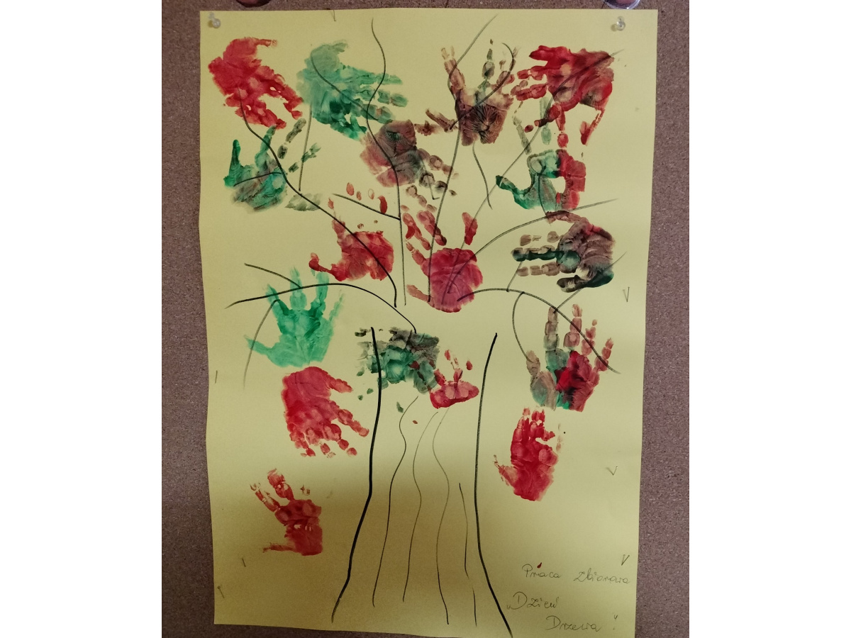 W naszym przedszkolu obchodziliśmy Święto Drzewa. Misie poznały na zajęciach jak wyglądają drzewa, omawiały czym się różnią a co mają podobne. Tworzyły z różnorodnego materiału wspólne, piękne drzewa. Na koniec zajęć wykonały pracę plastyczną przedstawiającą drzewo ze swoich dłoni. Podczas spaceru misie oglądały drzewa rosnące na terenie ogrodu przedszkolnego.