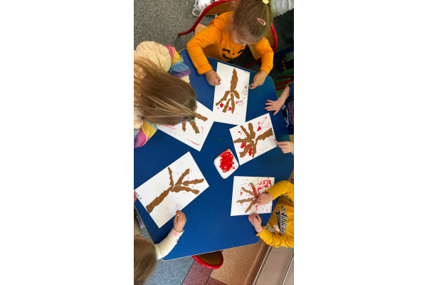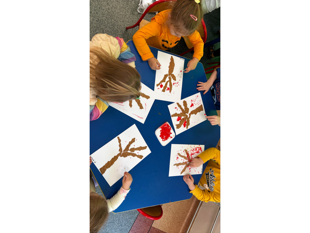 W przedszkolu obchodziliśmy Dzień Drzewa, z tej okazji malowaliśmy farbami liście drzew i tworzyliśmy piękne prace plastyczne, a także dowiedzieliśmy się, z czego powstają produkty z drewna, np. chusteczki, kartki papieru czy kredki. Na koniec wyszliśmy do ogrodu przedszkolnego, oglądaliśmy drzewa i przytulaliśmy się do nich.