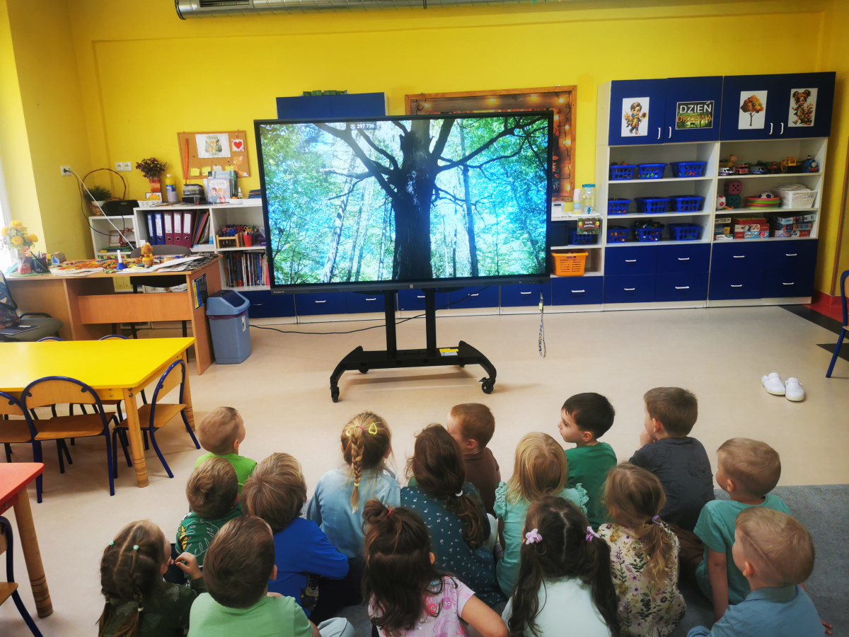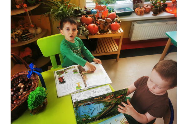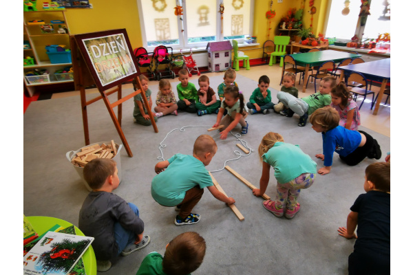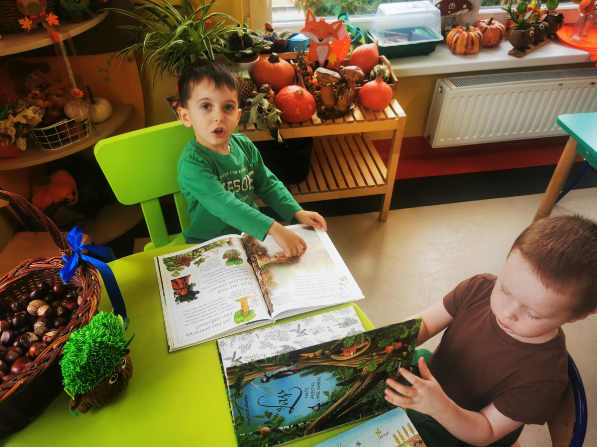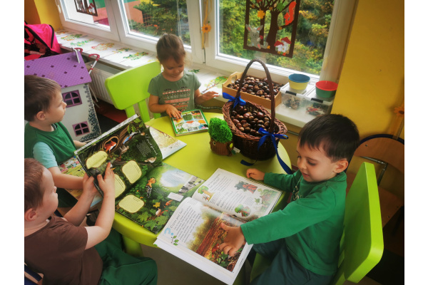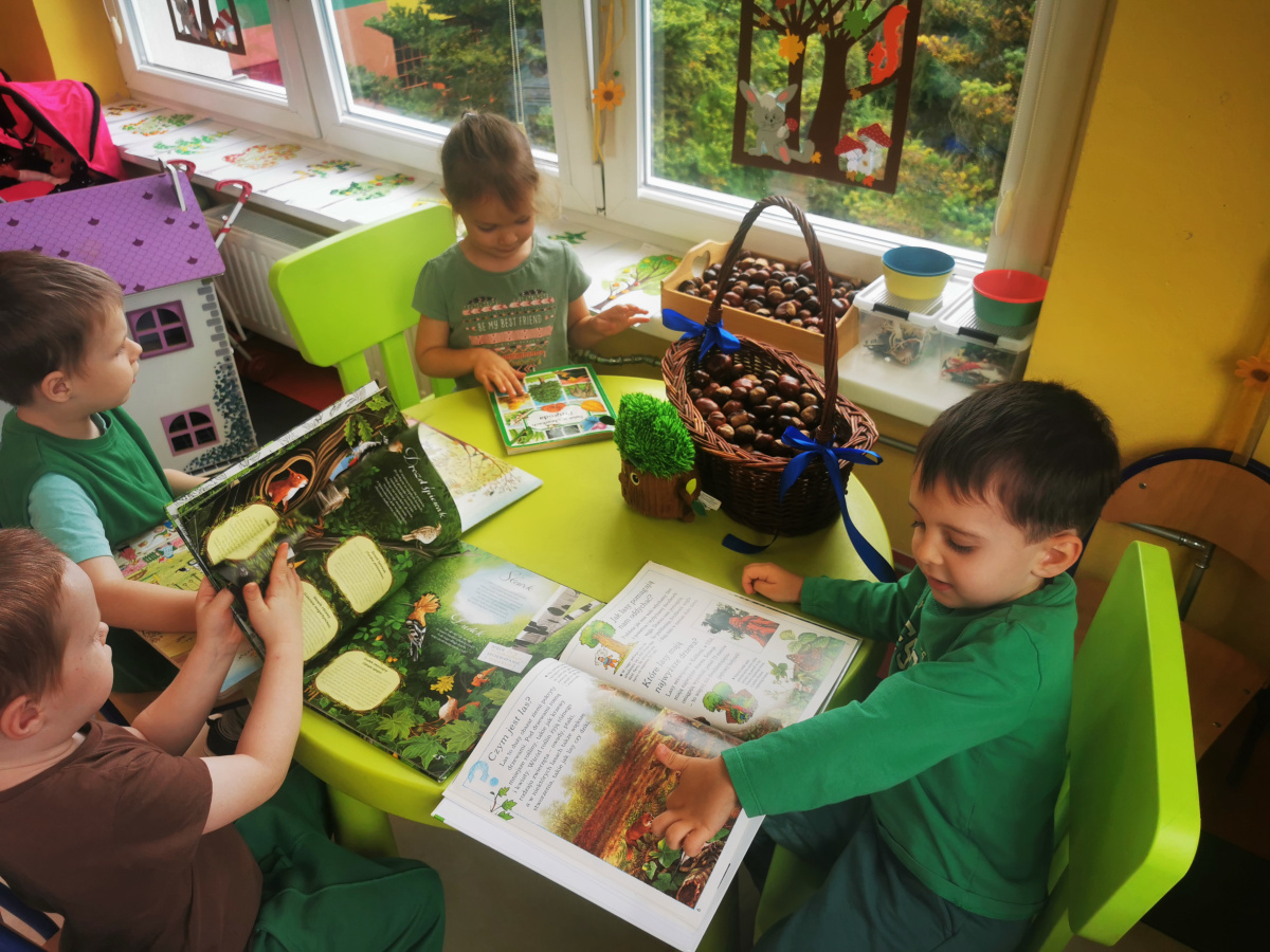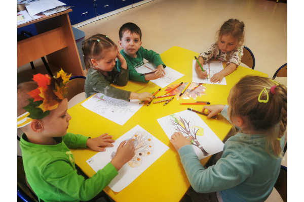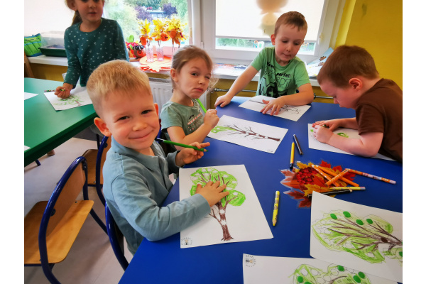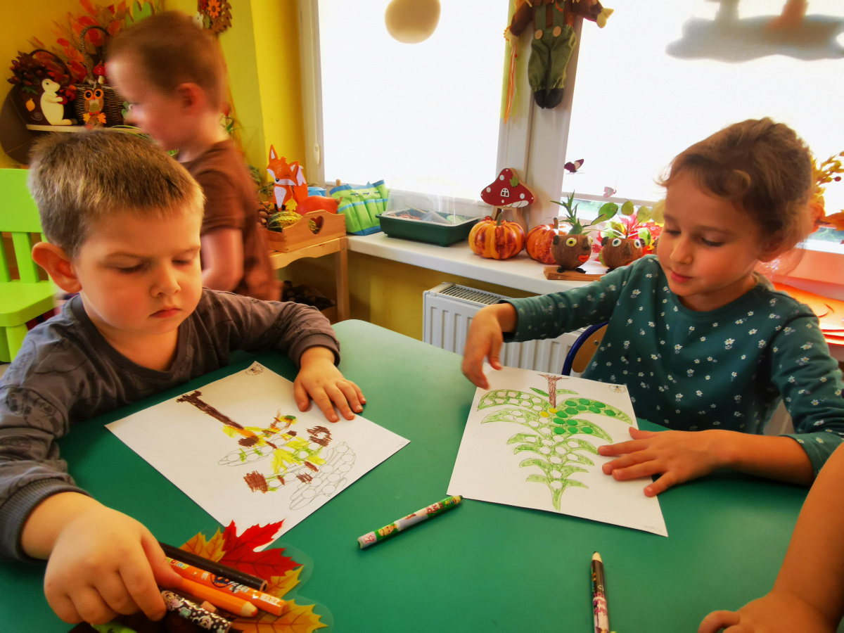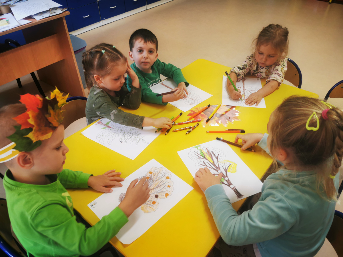 Z okazji Dnia Drzewa nasze Liski ubrały się na zielono i aktywnie uczestniczyły w przyrodniczych zabawach. Dzieci oglądały liście przez lupę, budowały drzewo z darów lasu, przeglądały książki o drzewach oraz wykonały piękne prace plastyczne, które najpierw kolorowały kredkami, a następnie wyklejały plasteliną.To był pełen radości i odkrywania dzień, który uczył miłości do przyrody ????????
