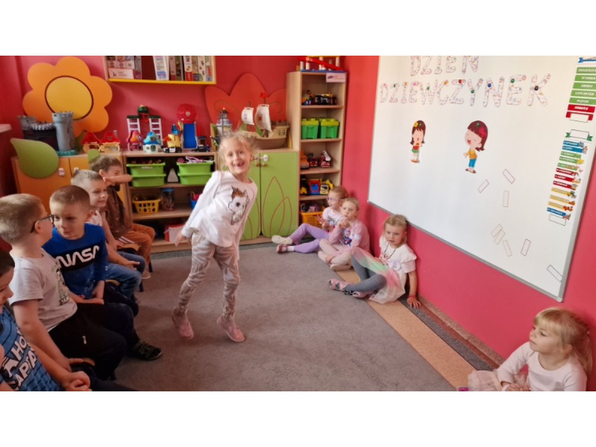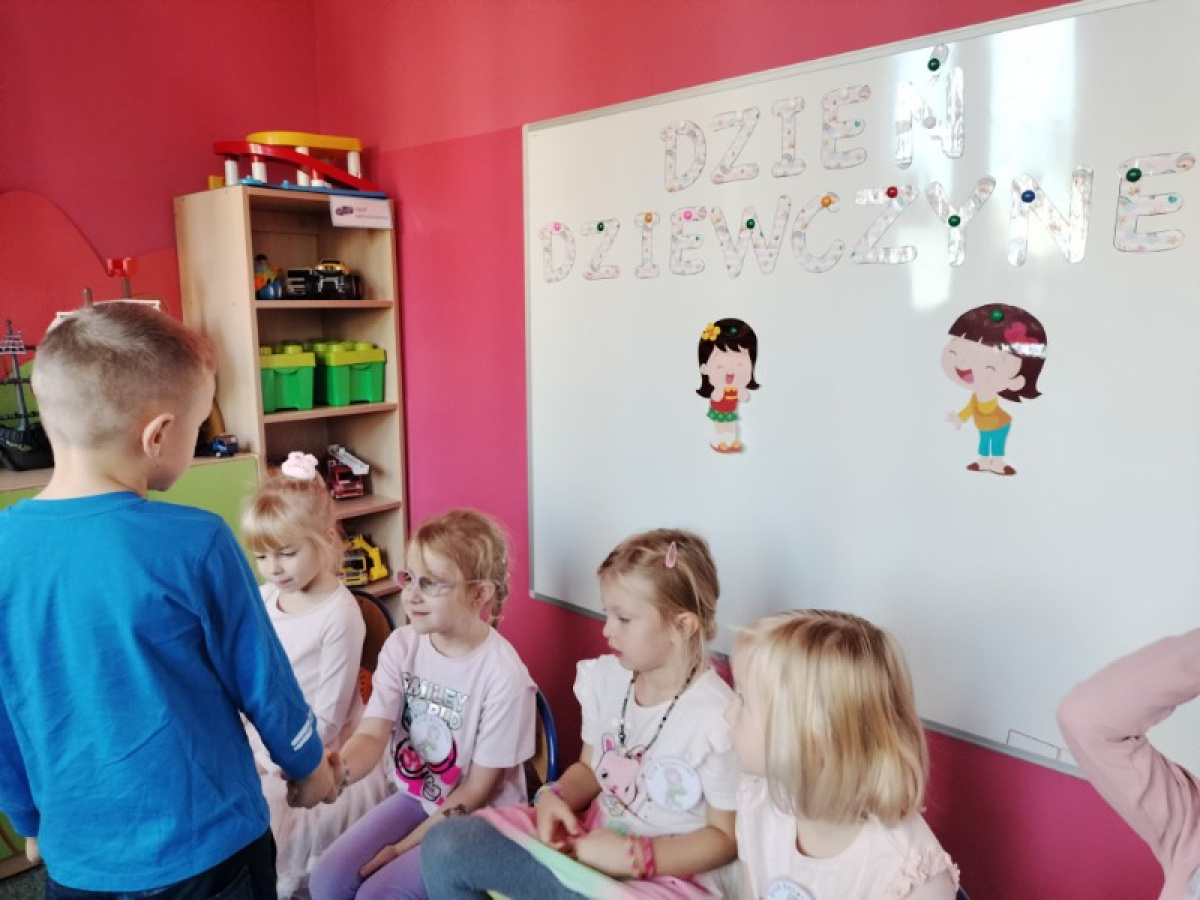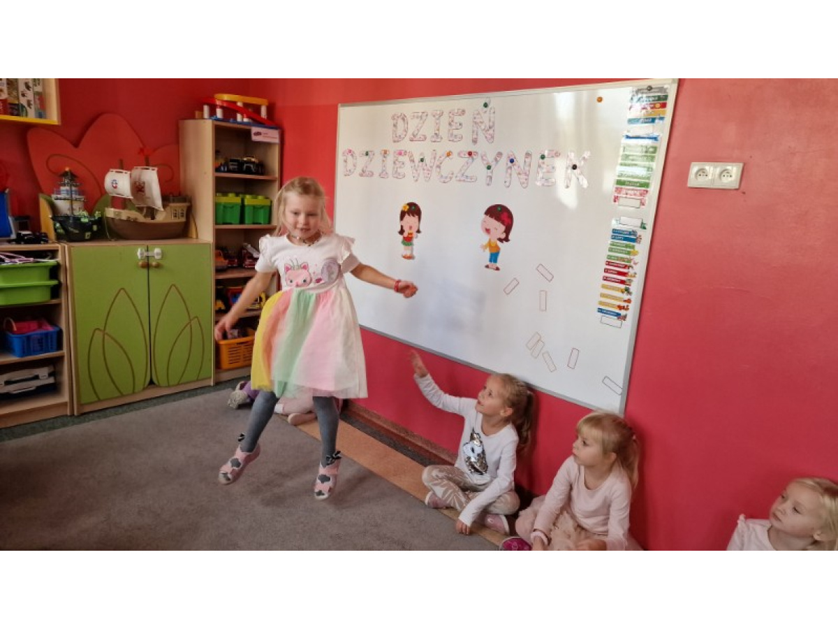 13 października dzieci z gr. Świetlików obchodziły Dzień Dziewczynek. Tego dnia odbyły się zabawy muzyczno-ruchowe. Chłopcy składali koleżankom życzenia oraz wręczyli im dyplomy i upominki.