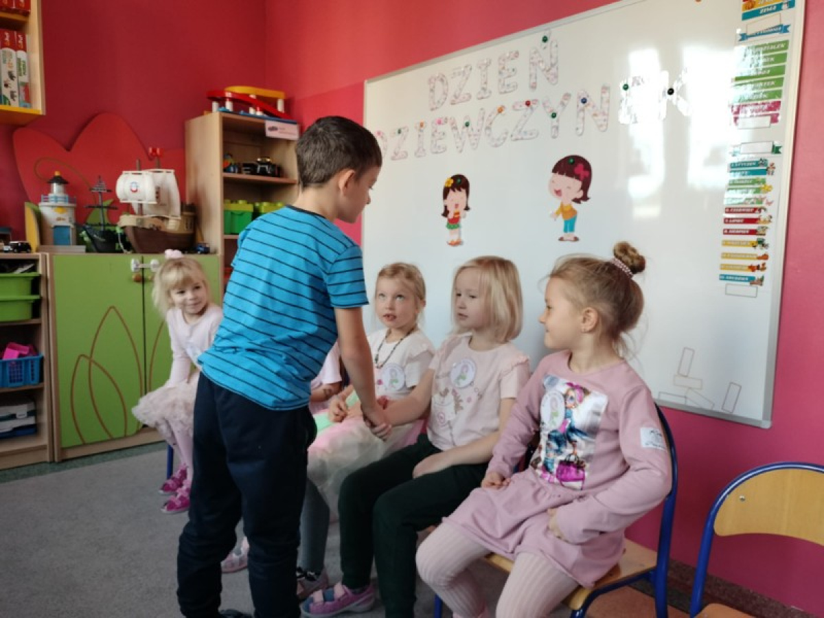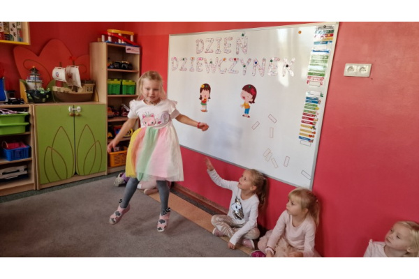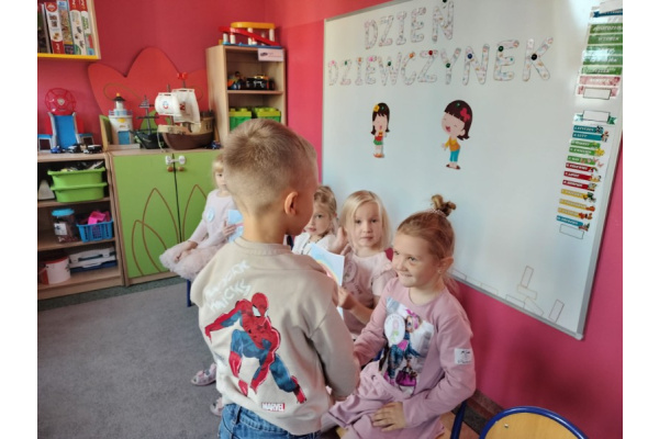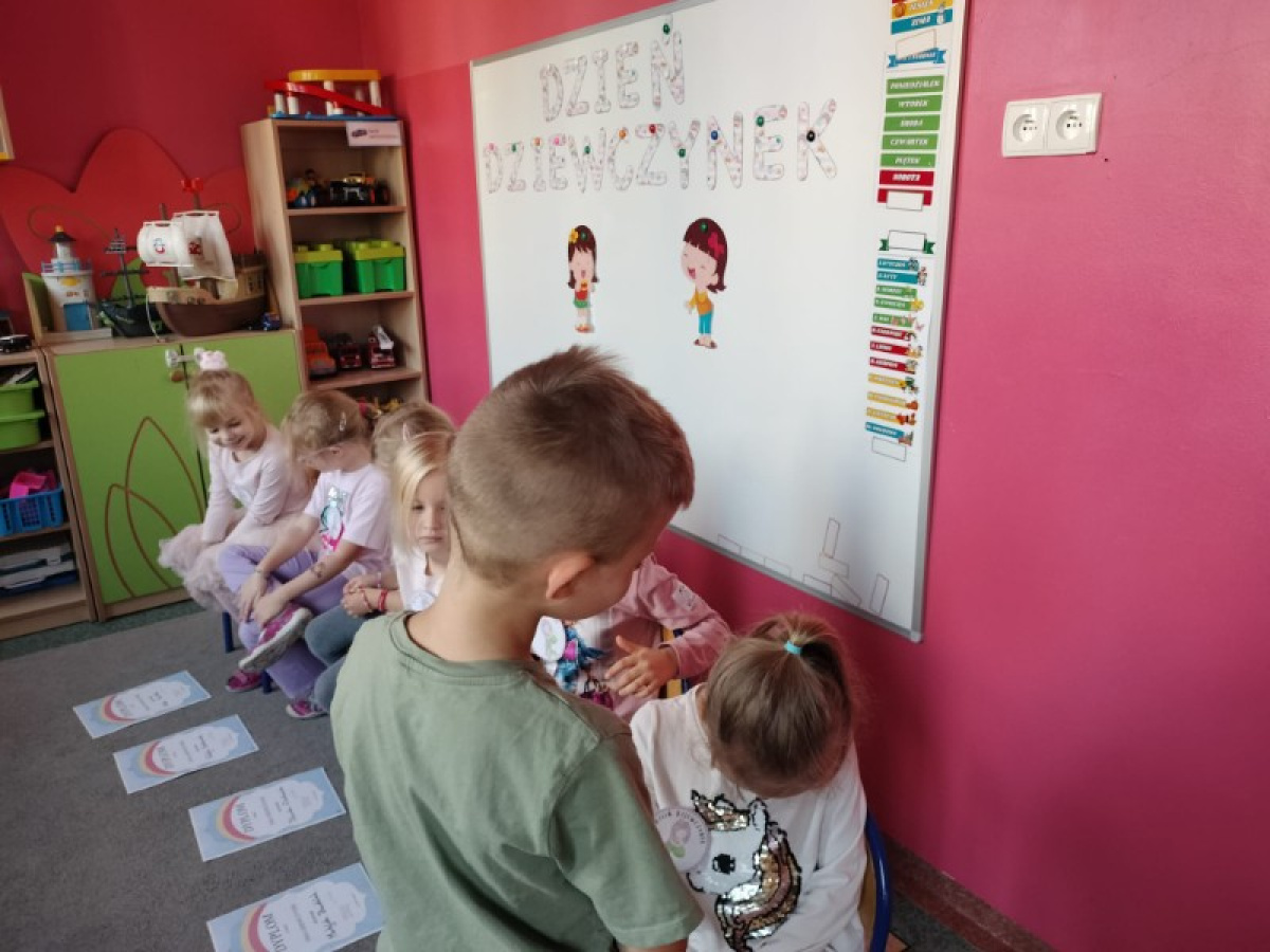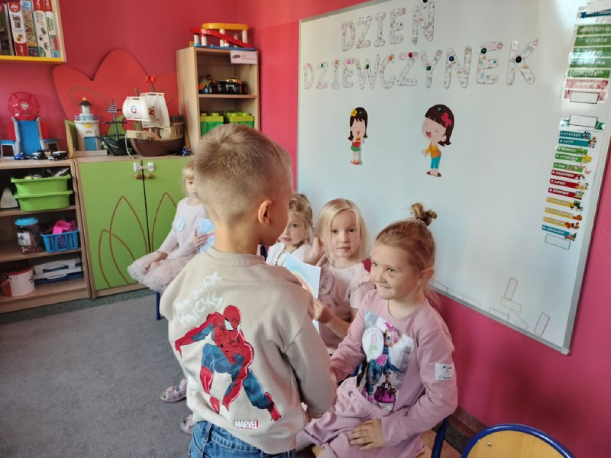 13 października dzieci z gr. Świetlików obchodziły Dzień Dziewczynek. Tego dnia odbyły się zabawy muzyczno-ruchowe. Chłopcy składali koleżankom życzenia oraz wręczyli im dyplomy i upominki.