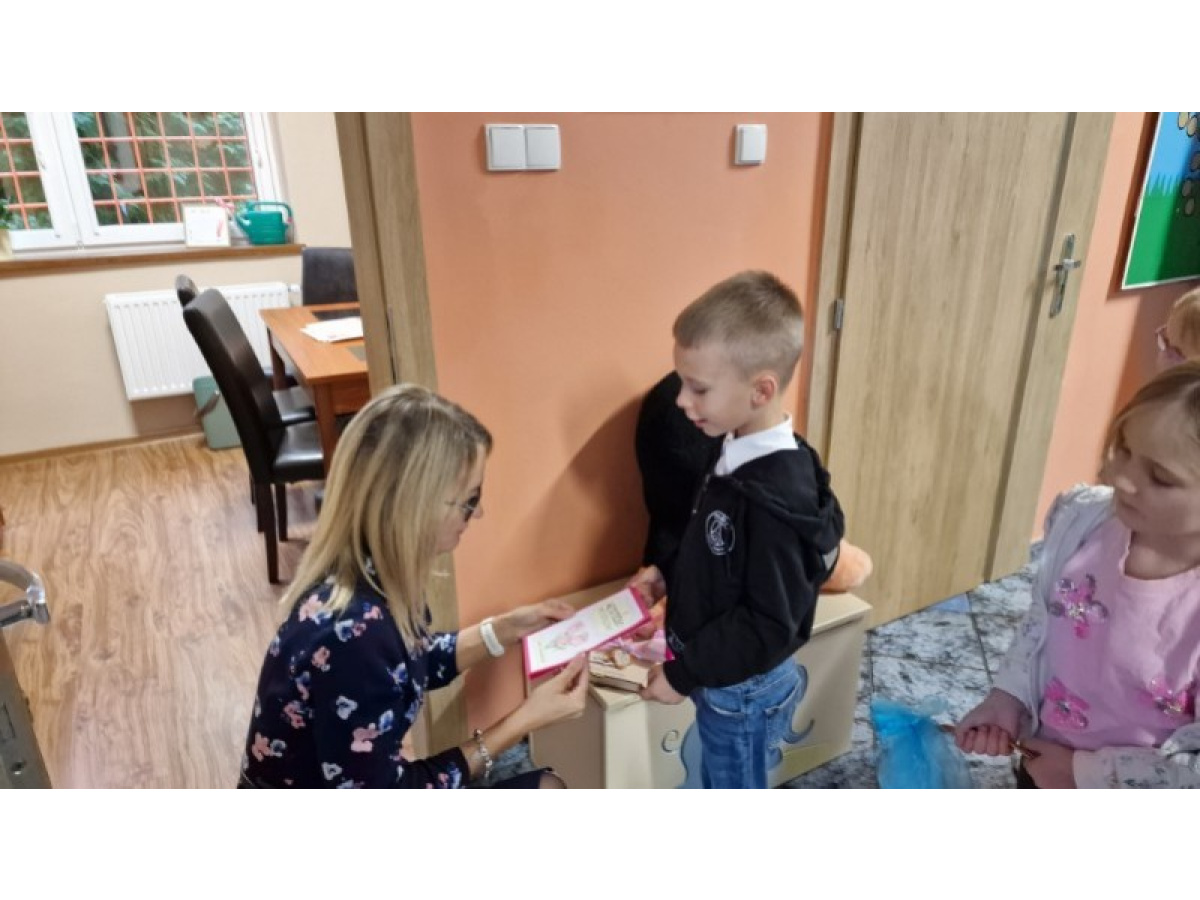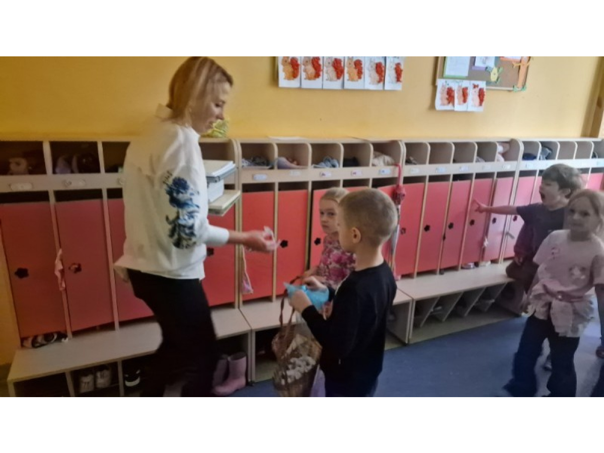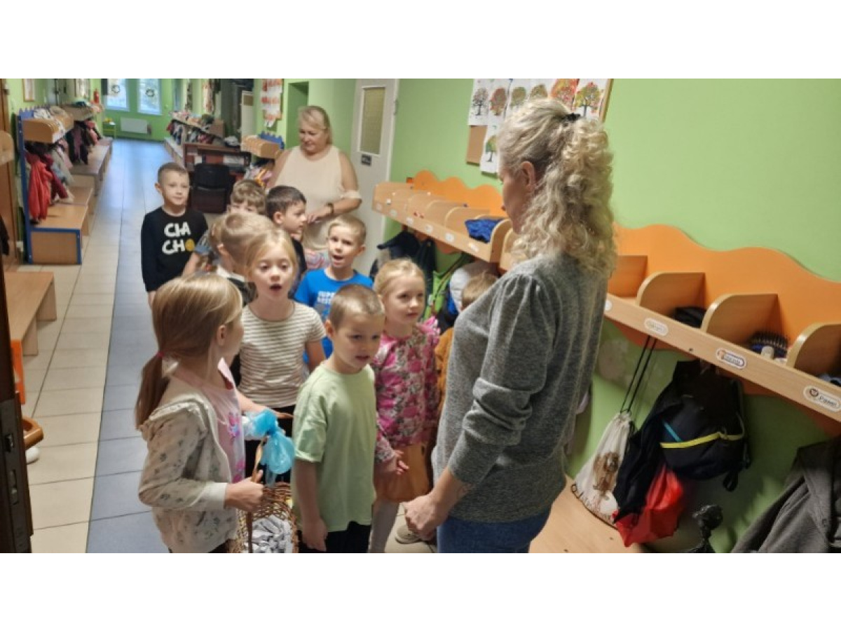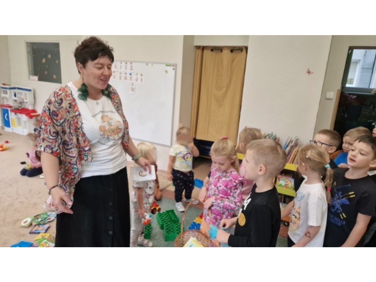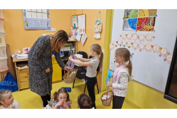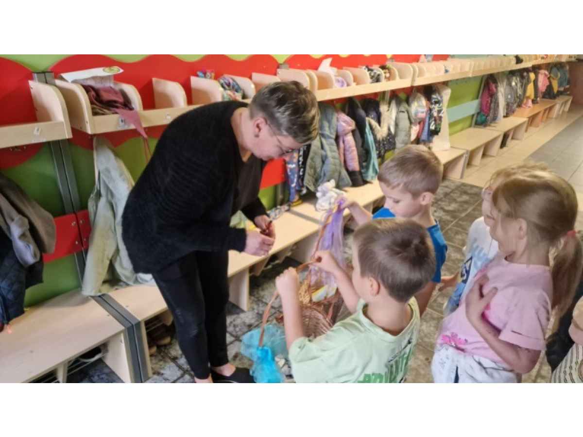 Z okazji Dnia Edukacji Narodowej przedszkolaki z radością wręczyły nauczycielom oraz wszystkim pracownikom przedszkola własnoręcznie przygotowane upominki oraz krówki. Dzieci z przejęciem składały życzenia, wywołując wzruszenie i uśmiechy na twarzach pracowników. Był to wyjątkowy moment pełen wdzięczności, ciepła i serdeczności.