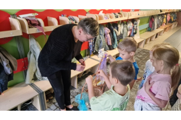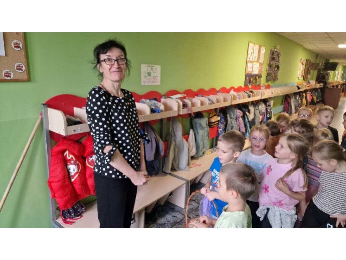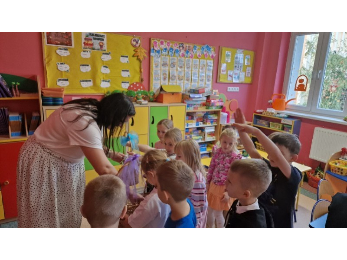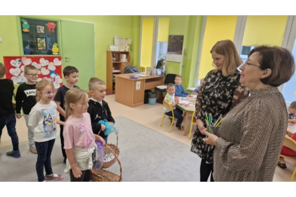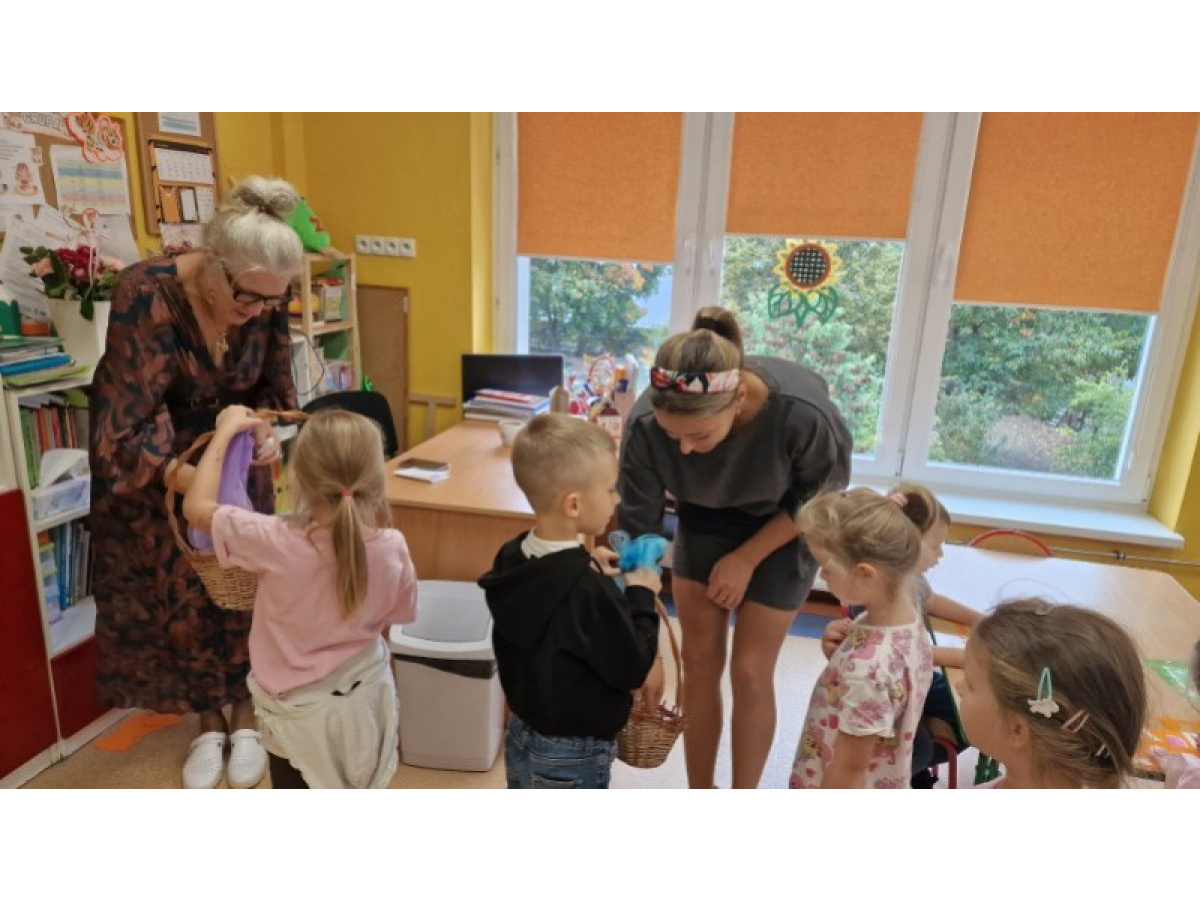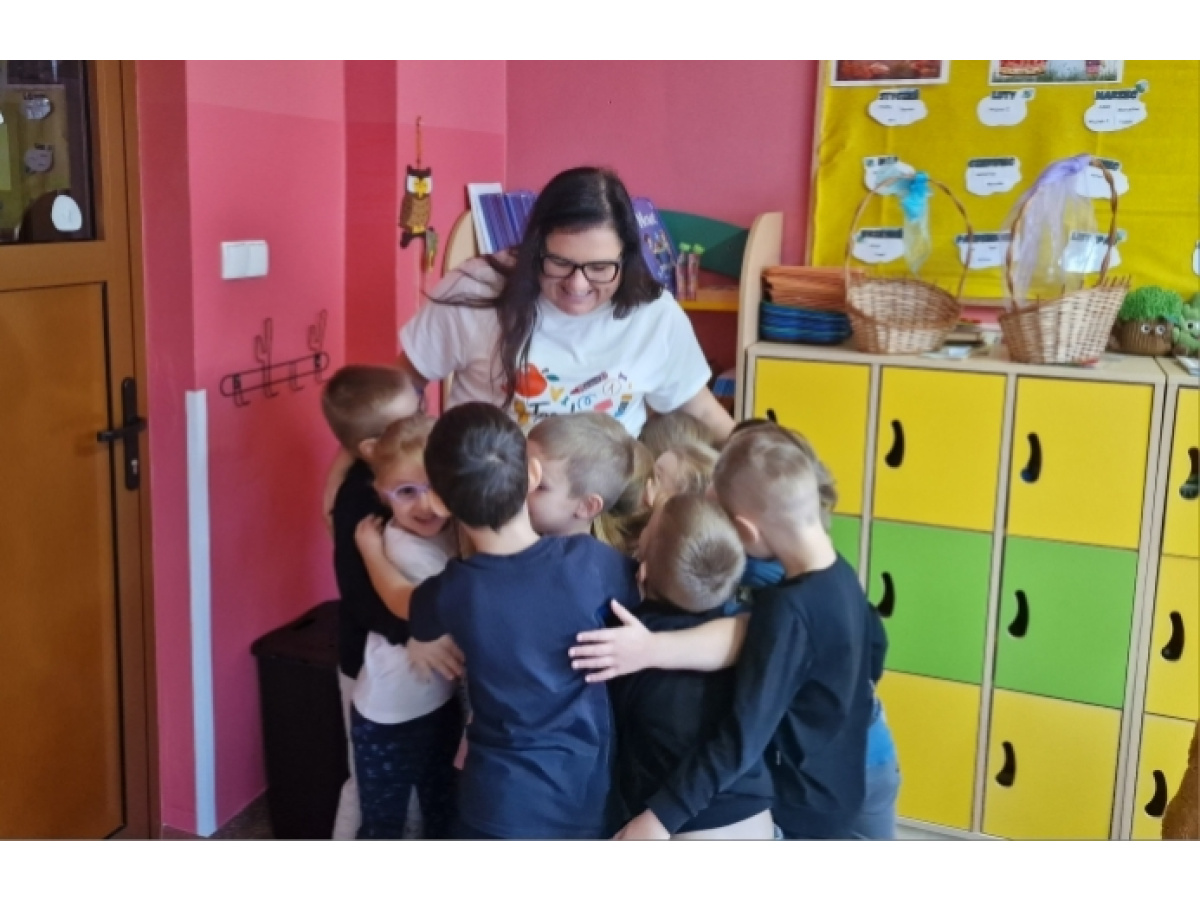 Z okazji Dnia Edukacji Narodowej przedszkolaki z radością wręczyły nauczycielom oraz wszystkim pracownikom przedszkola własnoręcznie przygotowane upominki oraz krówki. Dzieci z przejęciem składały życzenia, wywołując wzruszenie i uśmiechy na twarzach pracowników. Był to wyjątkowy moment pełen wdzięczności, ciepła i serdeczności.