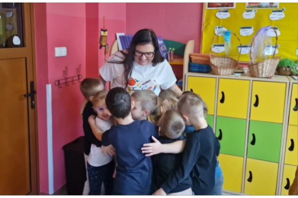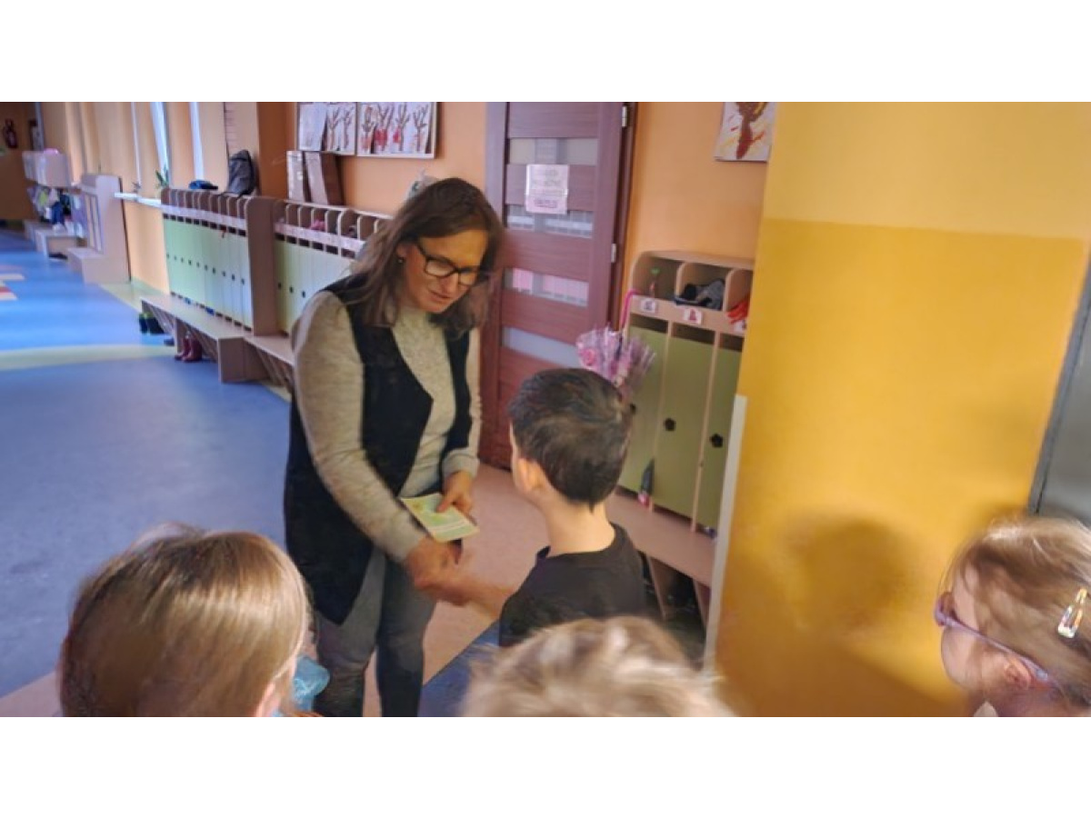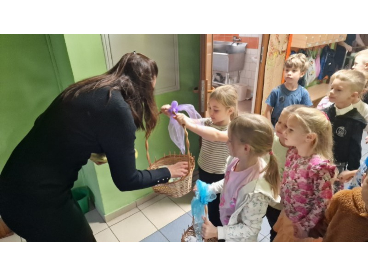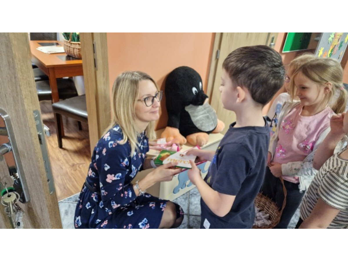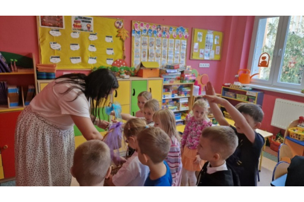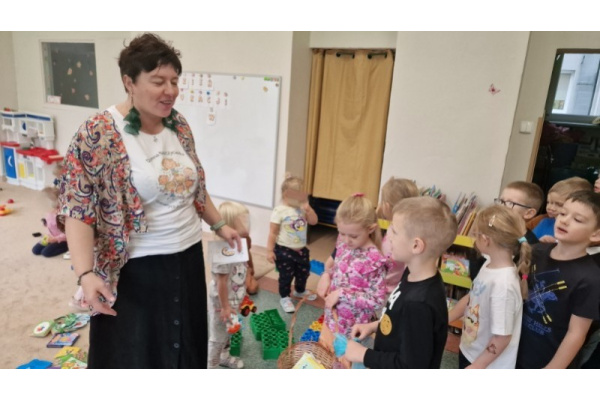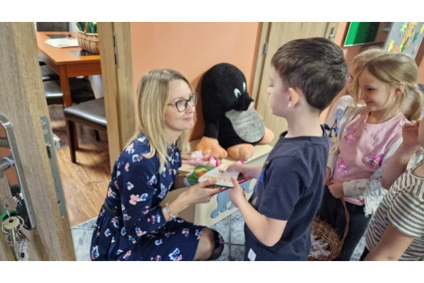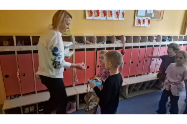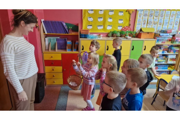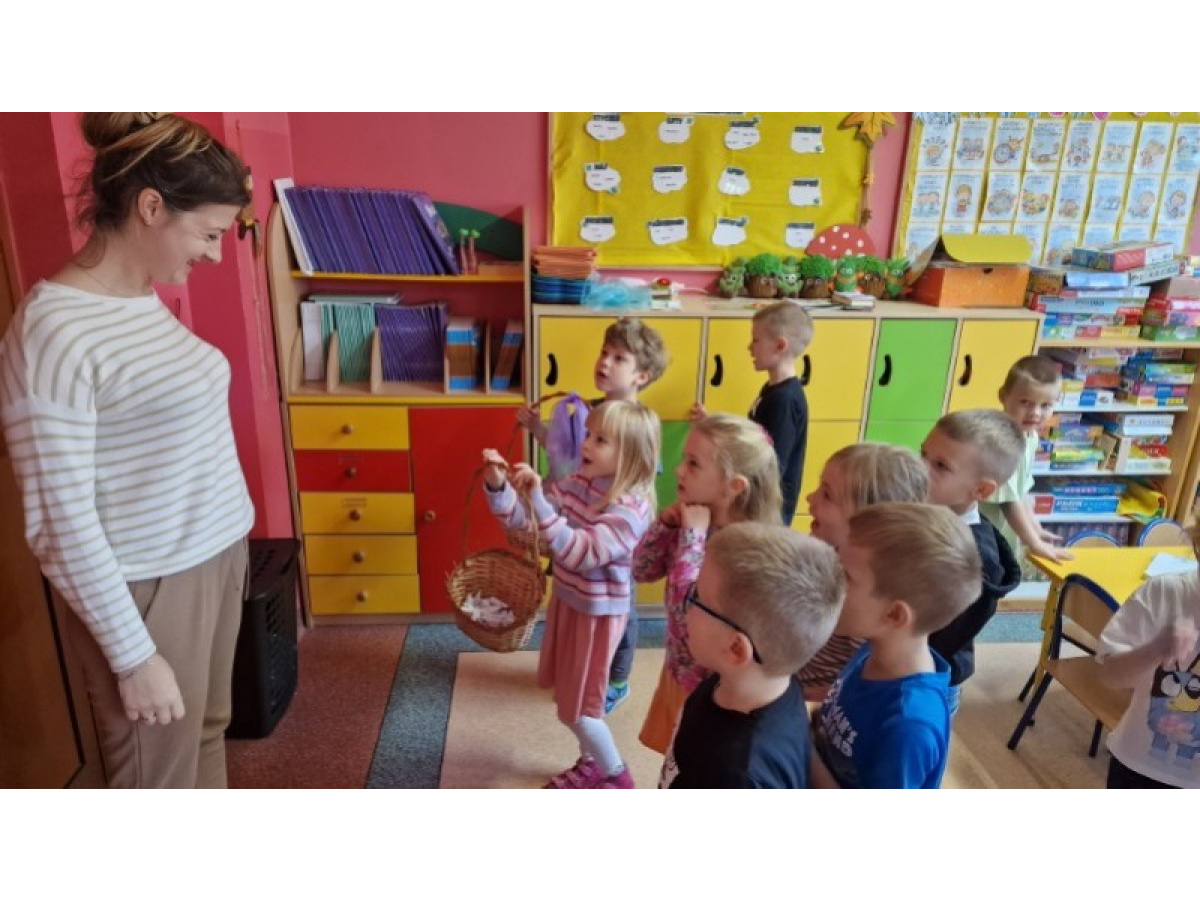 Z okazji Dnia Edukacji Narodowej przedszkolaki z radością wręczyły nauczycielom oraz wszystkim pracownikom przedszkola własnoręcznie przygotowane upominki oraz krówki. Dzieci z przejęciem składały życzenia, wywołując wzruszenie i uśmiechy na twarzach pracowników. Był to wyjątkowy moment pełen wdzięczności, ciepła i serdeczności.