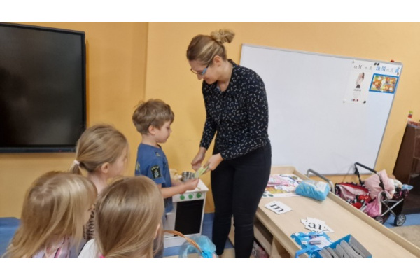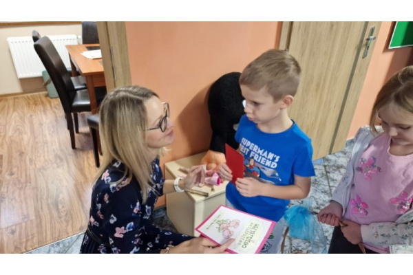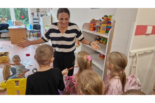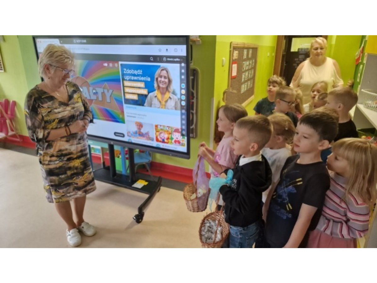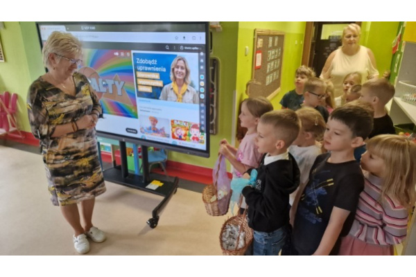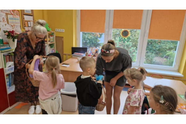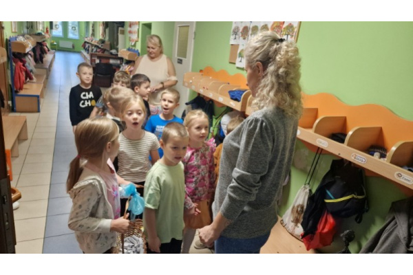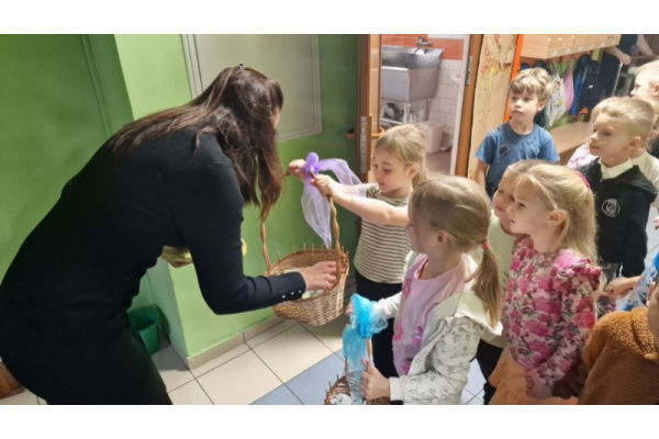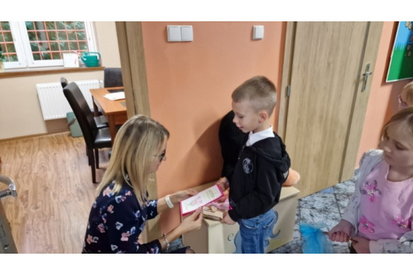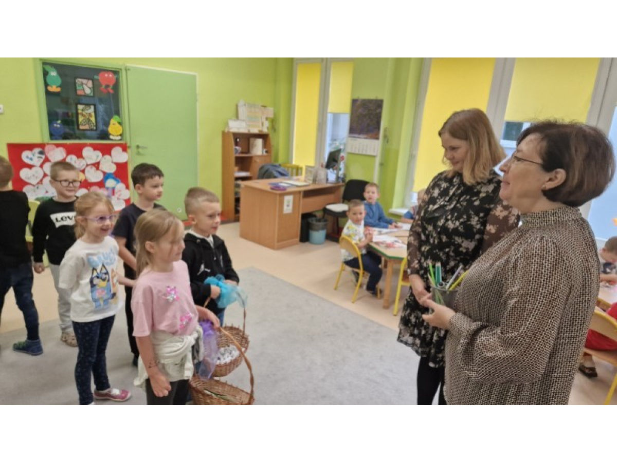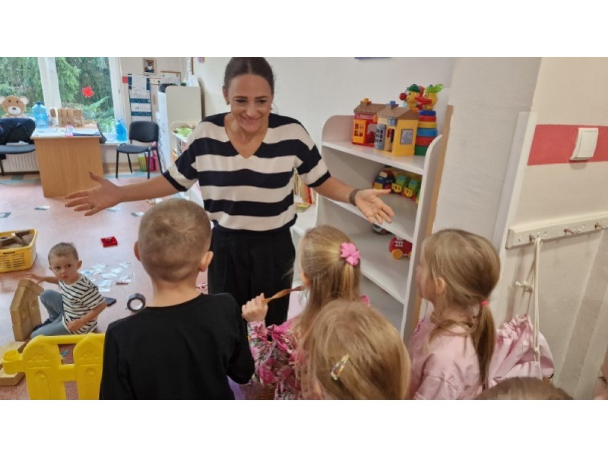 Z okazji Dnia Edukacji Narodowej przedszkolaki z radością wręczyły nauczycielom oraz wszystkim pracownikom przedszkola własnoręcznie przygotowane upominki oraz krówki. Dzieci z przejęciem składały życzenia, wywołując wzruszenie i uśmiechy na twarzach pracowników. Był to wyjątkowy moment pełen wdzięczności, ciepła i serdeczności.