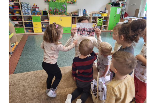 Dzieci z radością wręczyły każdej pani z przedszkola list z własnym zdjęciem jako wyraz wdzięczności i sympatii.