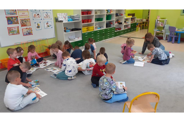 Ogólnopolski Dzień Głośnego Czytania obchodziliśmy 29 września. Z tej okazji przedszkolacy wysłuchali pięknej bajki pt "Jarzębinka" czytanej przez nauczyciela. Ciekawa treść i zwycięstwo dobra nad złem rozbudziły ciekawość małych słuchaczy. Czytanie dzieciom na głos stymuluje ich rozwój, wzbogaca słownictwo, pobudza wyobraźnię oraz poszerza wiedzę o otaczającym świecie. Dzieci przeżywają różne emocje. W naszej grupie głośne czytanie dzieciom jest codziennym rytuałem. Zachęcamy rodziców do odwiedzin w naszej grupie i przeczytania przedszkolakom bajki.