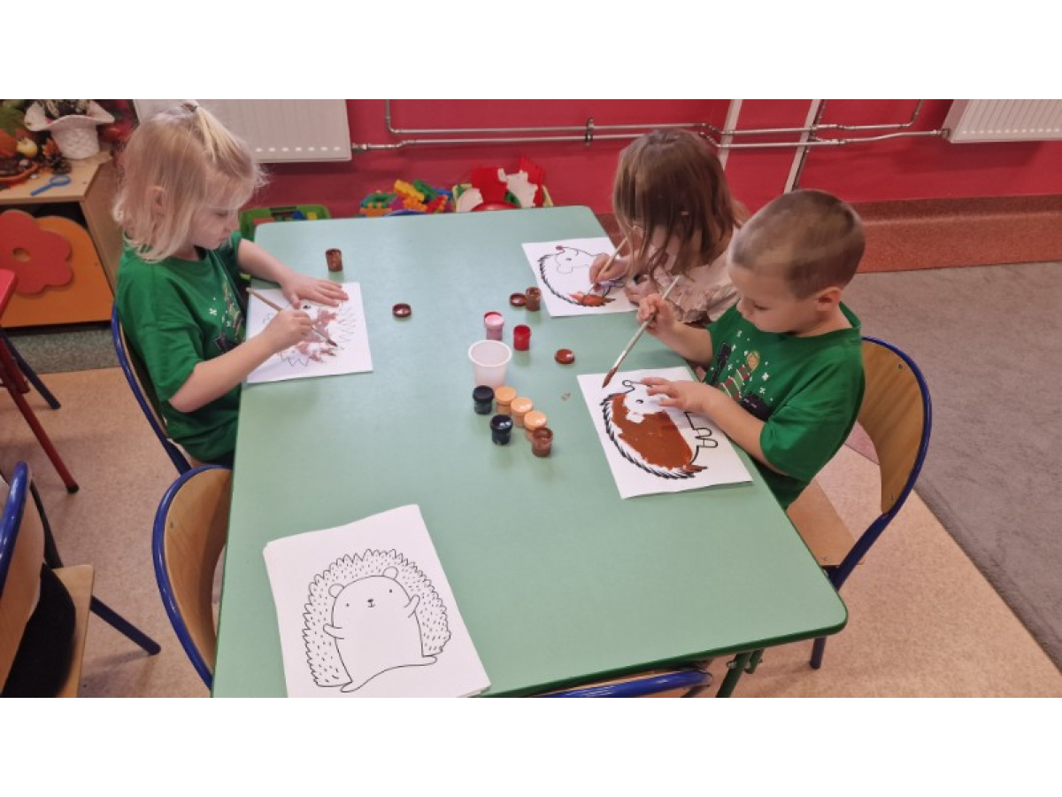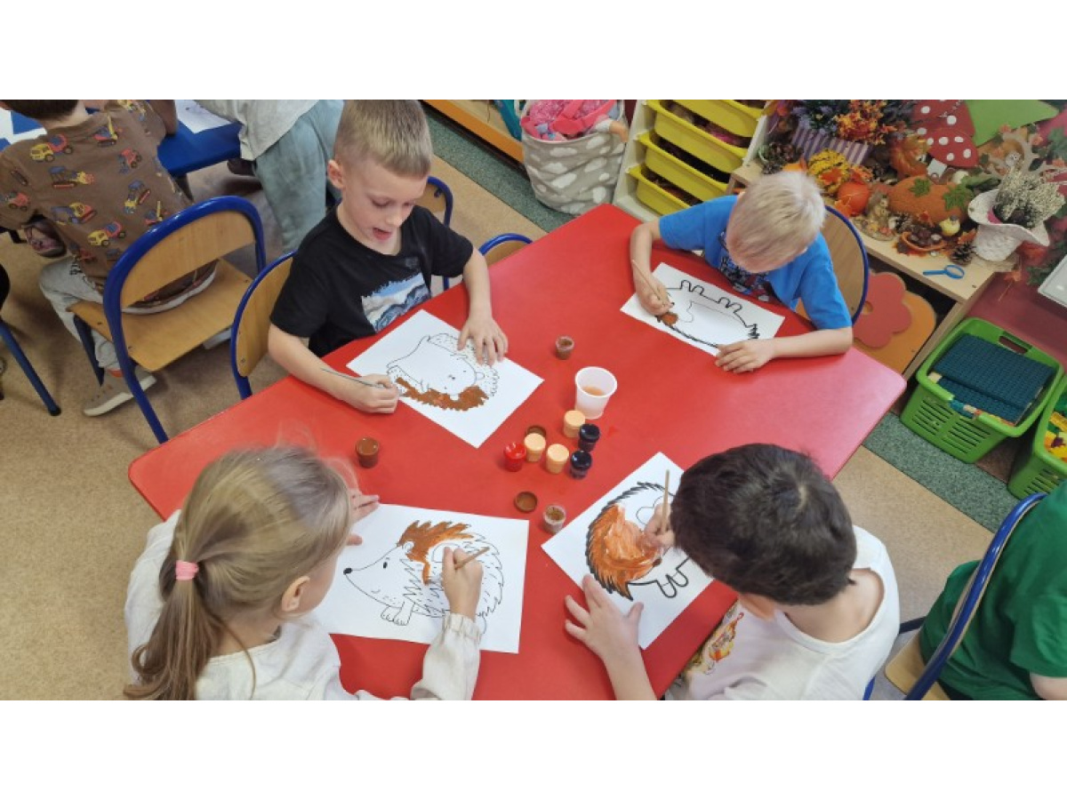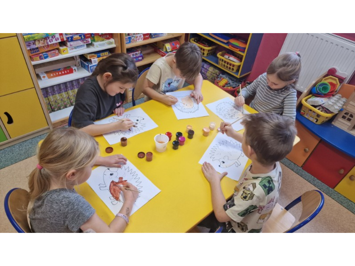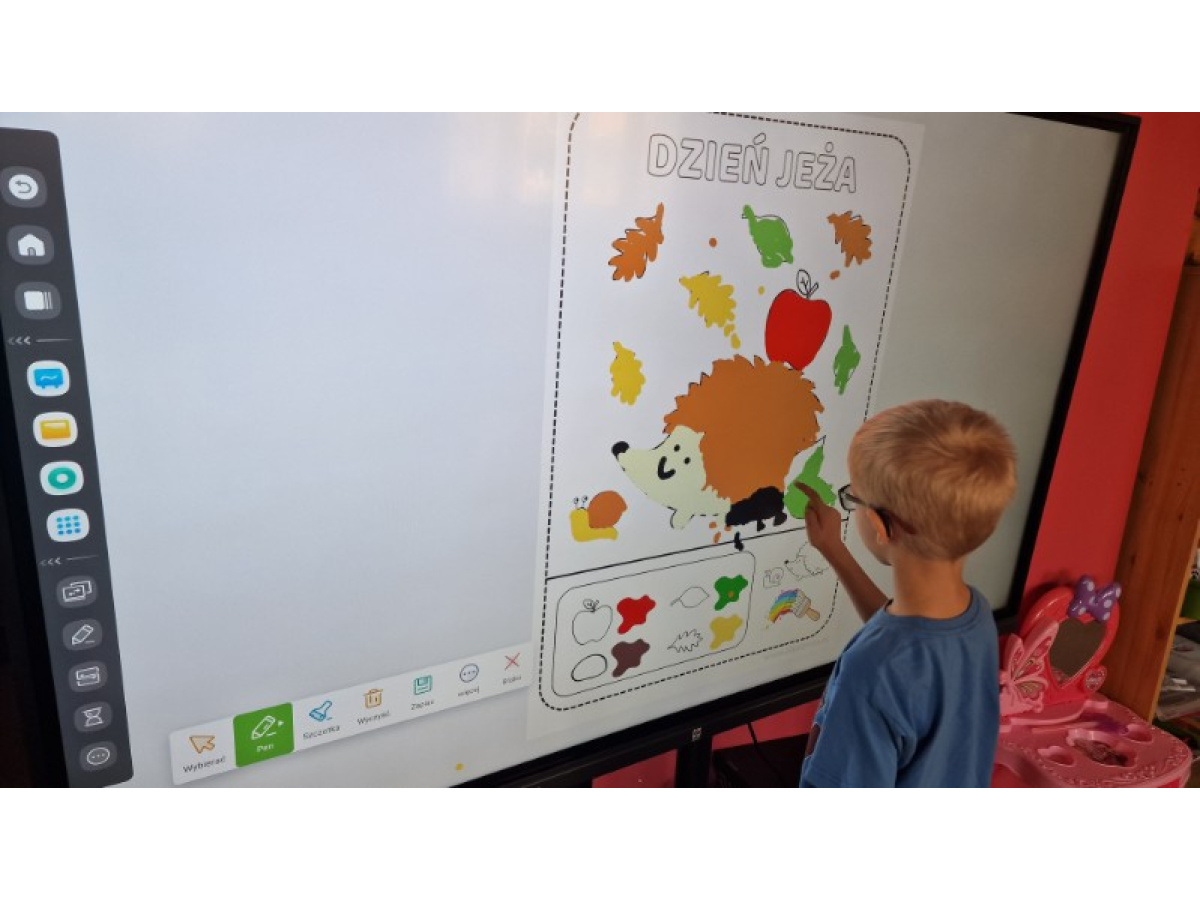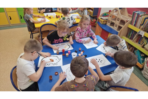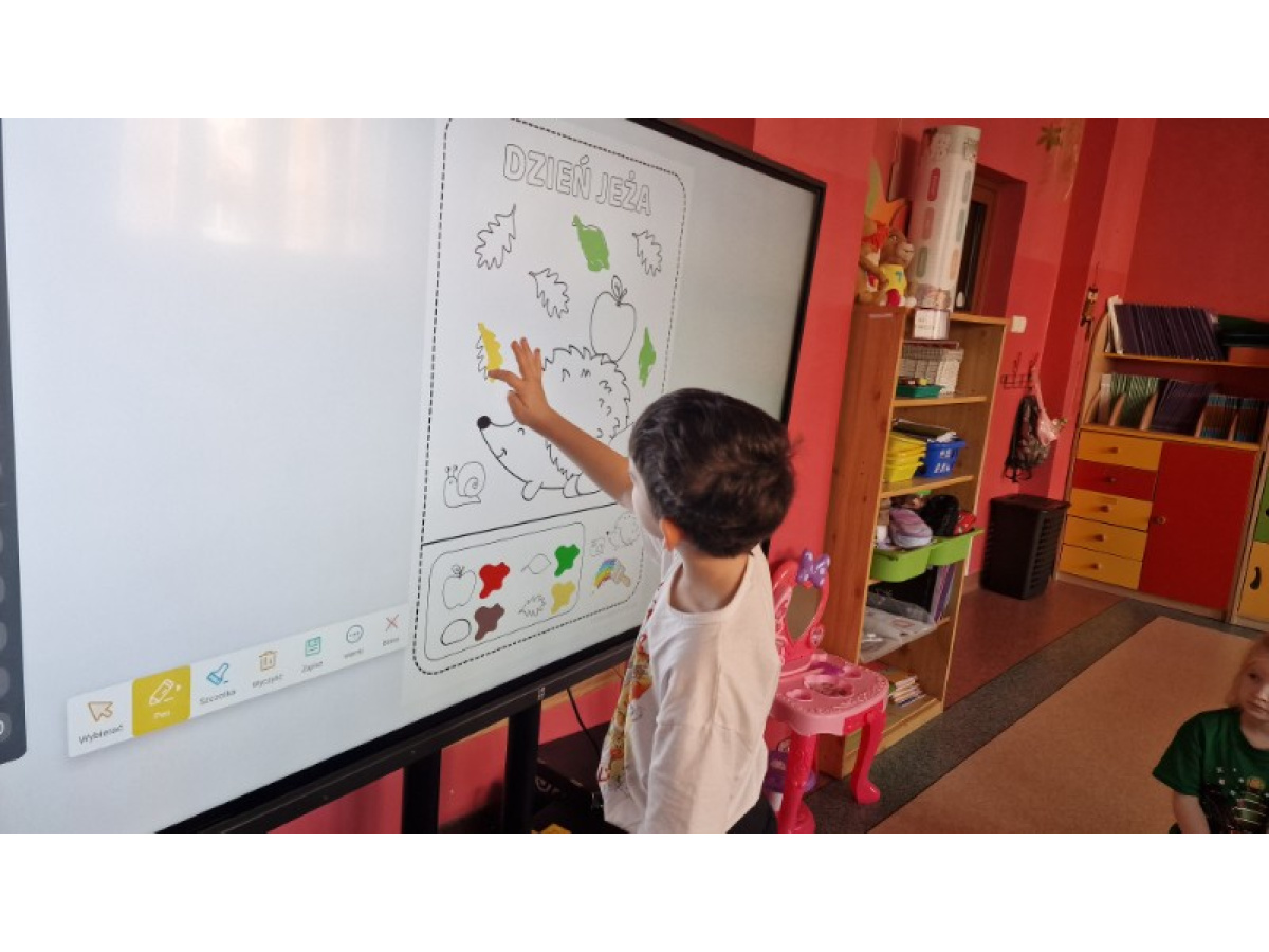 12 listopada obchodziliśmy w naszej grupie Dzień Jeża. Dzieci obejrzały filmik edukacyjny o jeżach, zrobiły także swoje własne jeżyki. Były zabawy ruchowe oraz zadania na tablicy multimedialnej. Każdy dostał medal Przyjaciela Jeża.