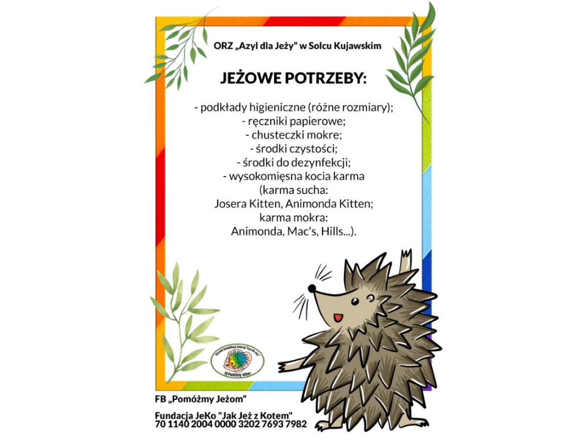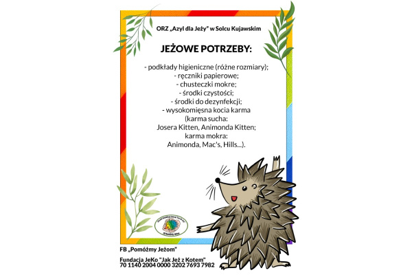 Dzień Jeża - zbiórka darów dla podopiecznych azylu fundacji Jek