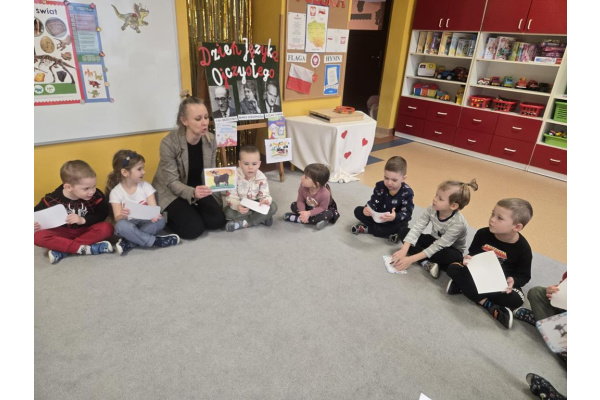 W lutym obchodziliśmy w naszej grupie Dzień Języka Ojczystego. Tygryski wiedzą, że mieszkamy w Polsce i język polski jest naszym językiem ojczystym. Jednak mimo że posługujemy się nim na co dzień, czasami może on sprawiać trudności... na przykład podczas powtarzania tzw. "łamańców językowych", z którymi mogły zmierzyć się dzieci. Tygryski wysłuchały tego dnia bajki terapeutycznej o emocjach "O borsuku, który na cały świat się obraził, w formie teatrzyku Kamishibai, a także kilku wierszy znanych polskich autorów. Dbajmy o nasz piękny język ojczysty, czytajmy dzieciom bajki, aby mogły rozwijać swoją tożsamość, myślenie twórcze, pamięć, a także swobodnie wyrażać swoje emocje.
