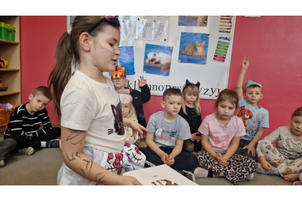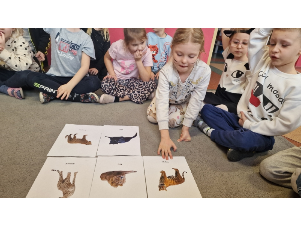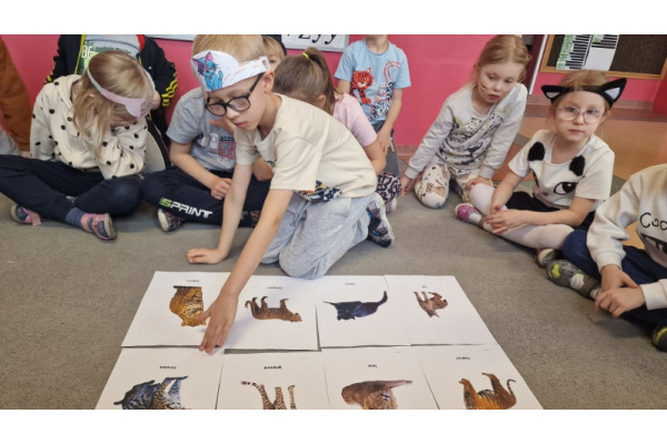 Dzieci poznały również różne rasy kotów, ciekawostki o ich zachowaniach oraz dowiedziały się, jakie zwierzęta należą do rodziny kotowatych. To był dzień pełen zabawy, nauki i kocich uśmiechów.