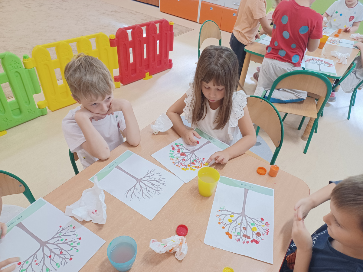 Dzień kropki to święto kreatywności, odwagi i okrywania talentów. Żabki poznały historię powstania tego święta, szukały kropek w otaczającej nas rzeczywistości, a także tworzyły obrazy z kropek.