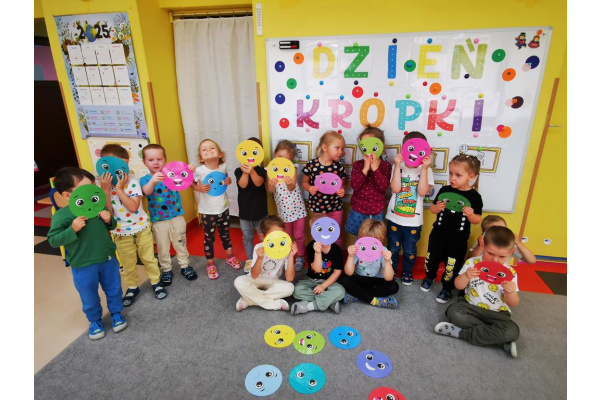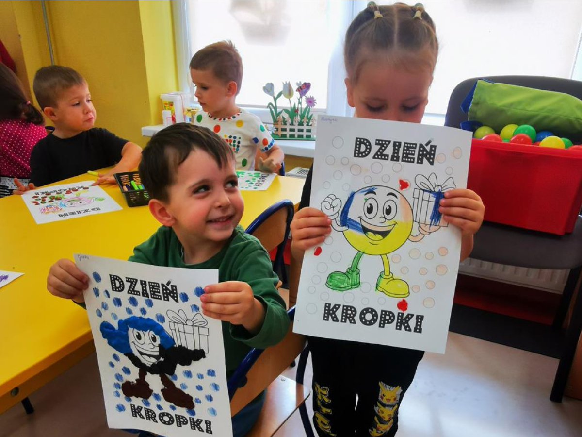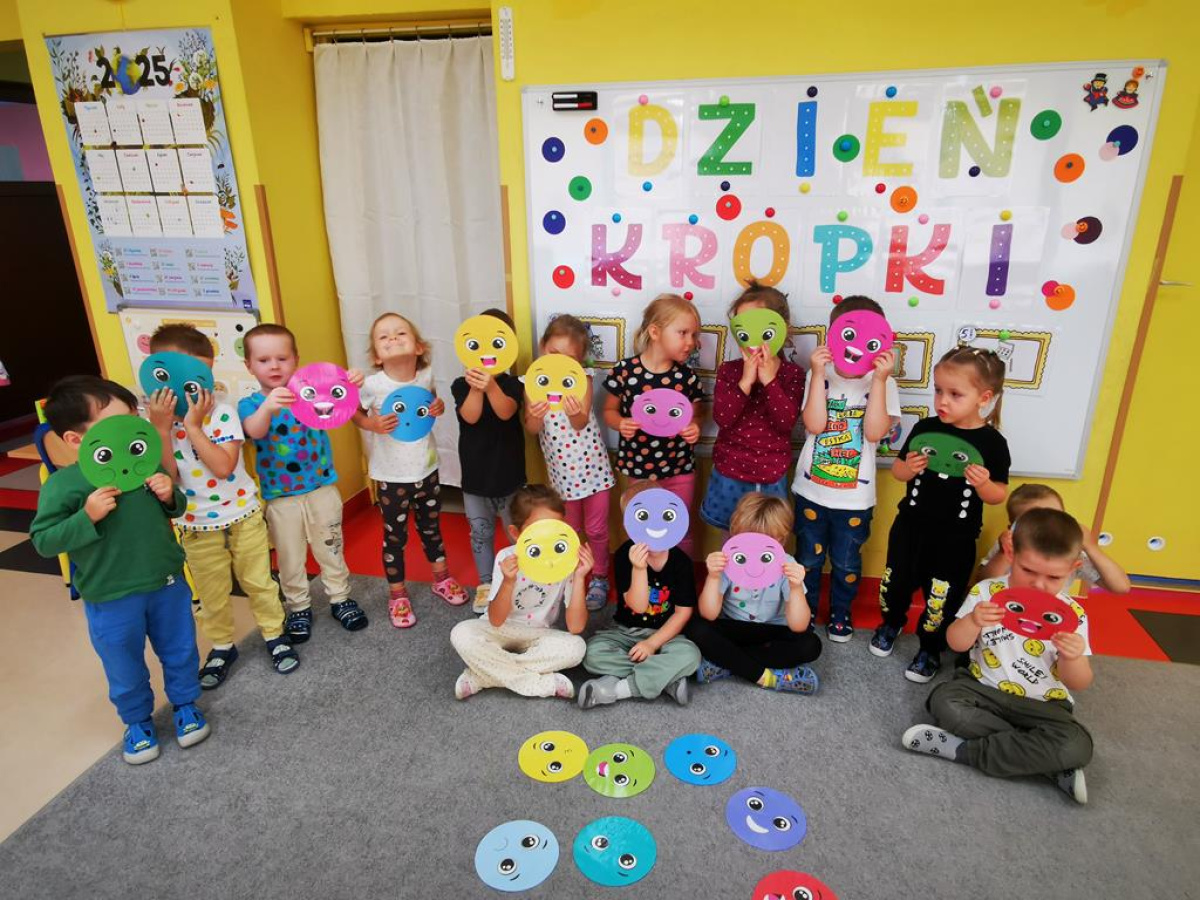 15 września świętowaliśmy Międzynarodowy Dzień Kropki – czas odkrywania talentów i kreatywnej zabawy. Dzieci wysłuchały opowieści o Vashti, tworzyły plastelinowe dzieła, a także uczestniczyły w radosnych zabawach ruchowych. „Buźki emocji” pomogły im lepiej poznać świat uczuć. To był dzień pełen uśmiechu, twórczości i współpracy.