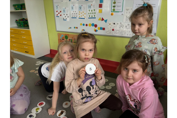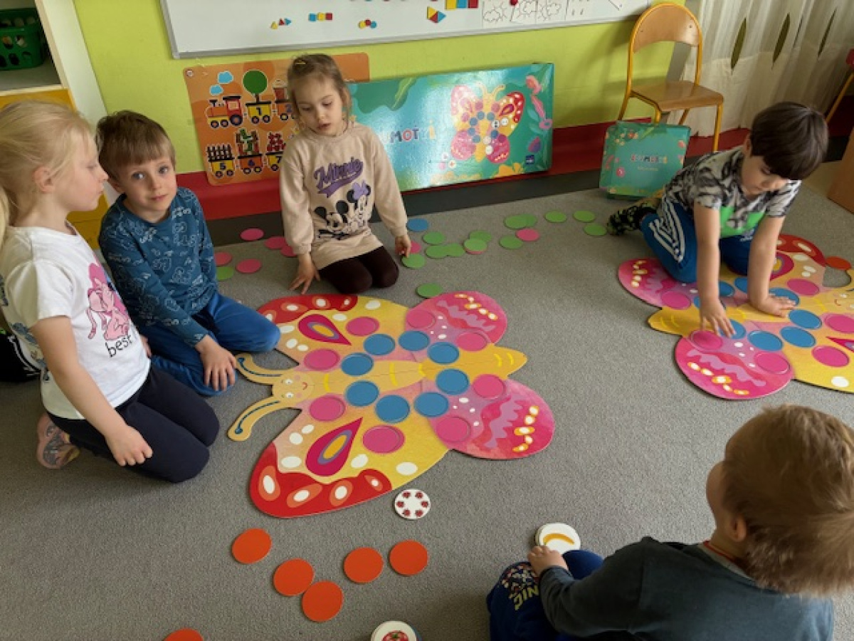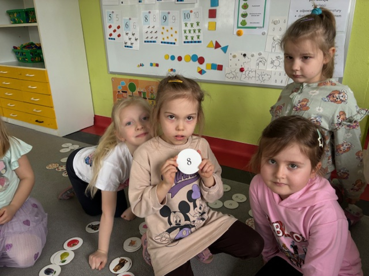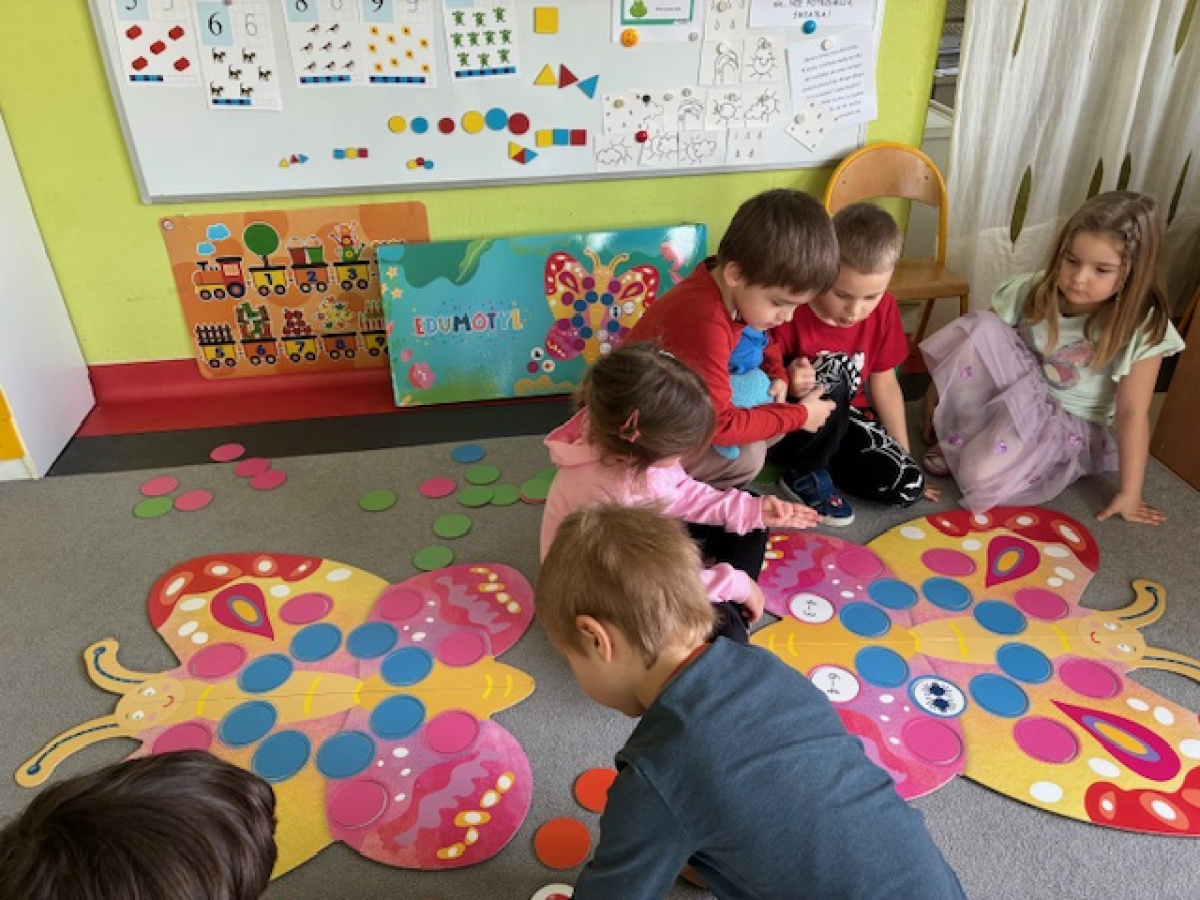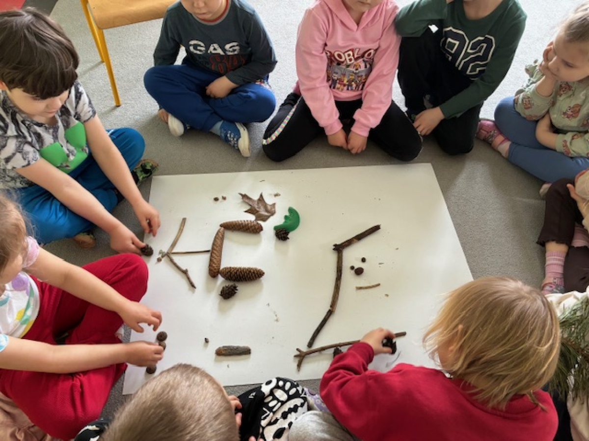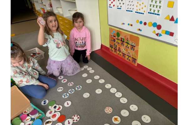 Dzień rozpoczęliśmy od zabaw z wykorzystaniem darów natury. Dzieci tworzyły zbiory z przygotowanych elementów, układały je według określonych zasad oraz przeliczały. „Myszki” chętnie uczestniczyły także w zadaniach związanych z kodowaniem, a podczas zabaw matematycznych ćwiczyły dodawanie i odejmowanie w zakresie do 10 oraz powyżej. Wszystkie aktywności sprawiły dzieciom wiele radości. Przedszkolaki z dużym zaangażowaniem uczestniczyły w zajęciach, doskonaląc swoje umiejętności matematyczne poprzez zabawę. Był to dzień pełen uśmiechu, ciekawych wyzwań i dobrej zabawy.