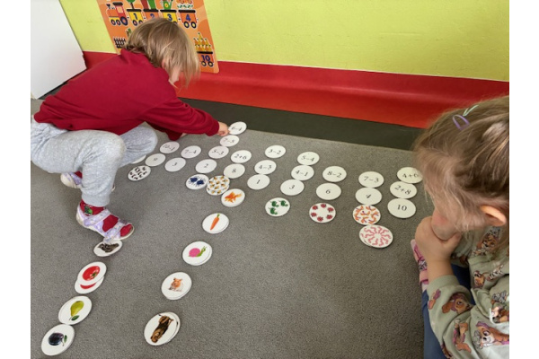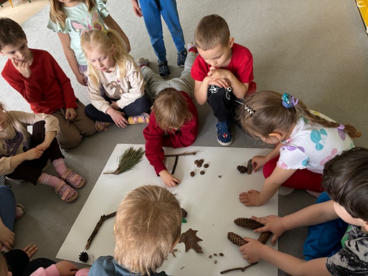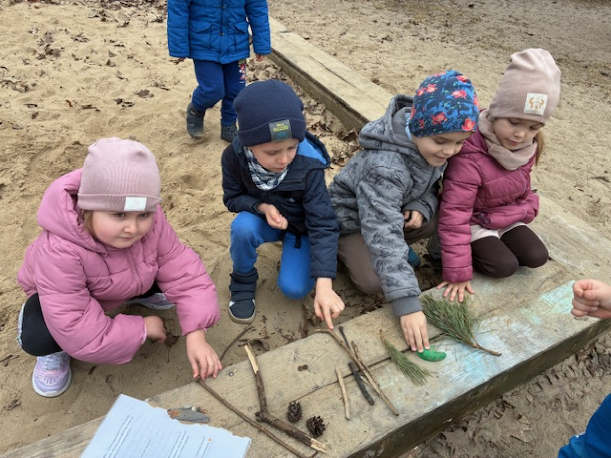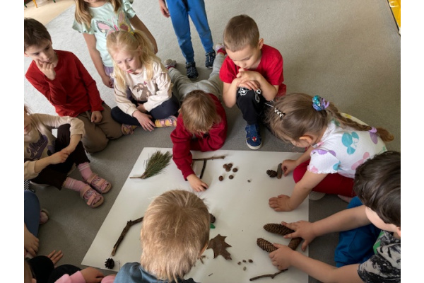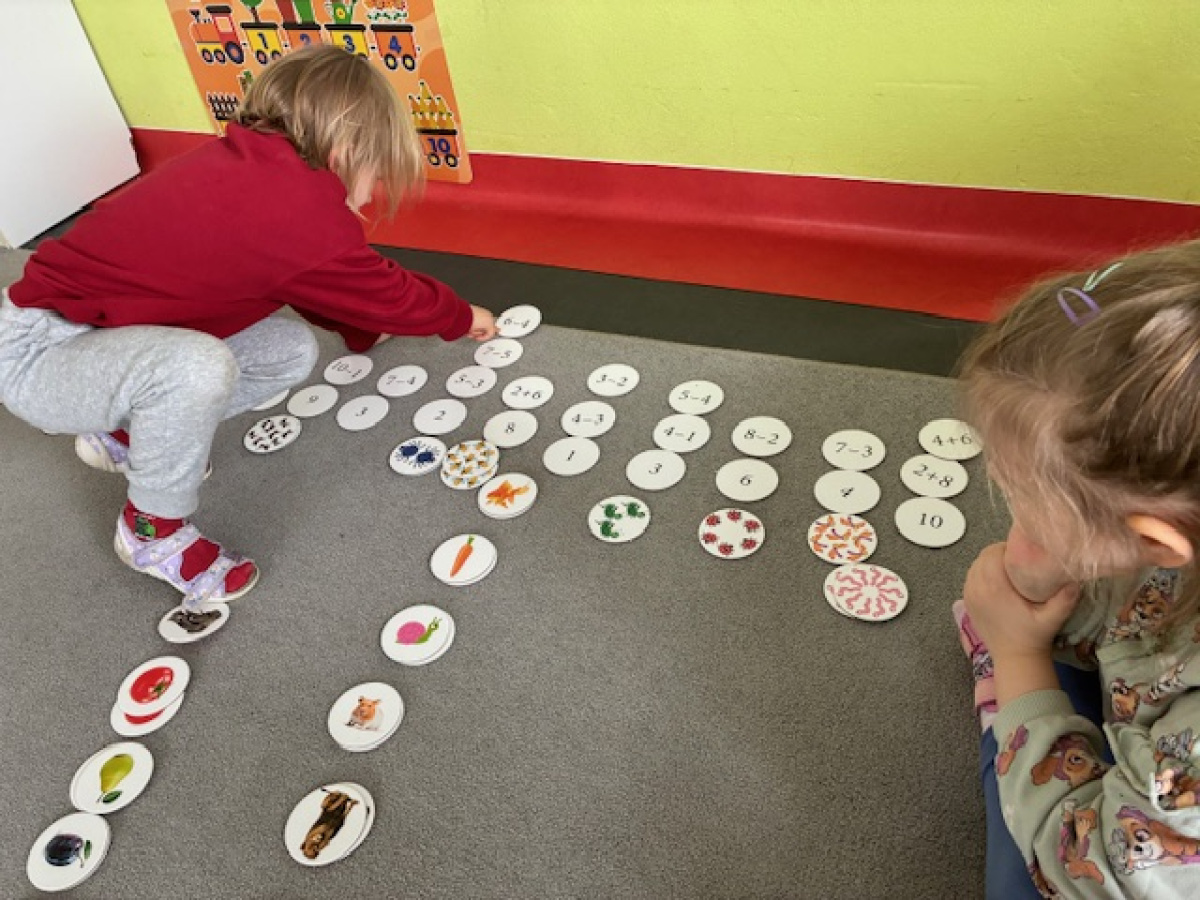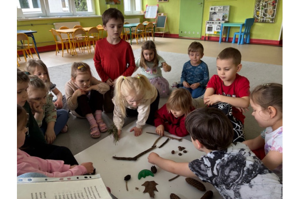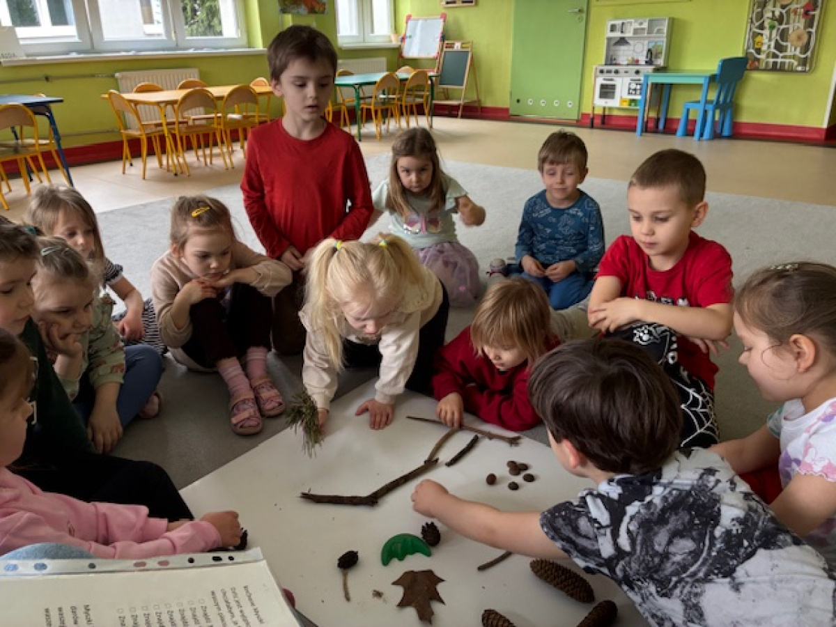 Dzień rozpoczęliśmy od zabaw z wykorzystaniem darów natury. Dzieci tworzyły zbiory z przygotowanych elementów, układały je według określonych zasad oraz przeliczały. „Myszki” chętnie uczestniczyły także w zadaniach związanych z kodowaniem, a podczas zabaw matematycznych ćwiczyły dodawanie i odejmowanie w zakresie do 10 oraz powyżej. Wszystkie aktywności sprawiły dzieciom wiele radości. Przedszkolaki z dużym zaangażowaniem uczestniczyły w zajęciach, doskonaląc swoje umiejętności matematyczne poprzez zabawę. Był to dzień pełen uśmiechu, ciekawych wyzwań i dobrej zabawy.