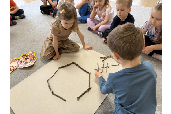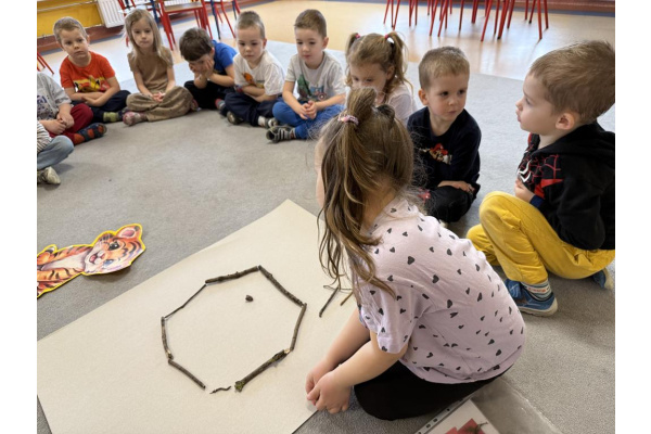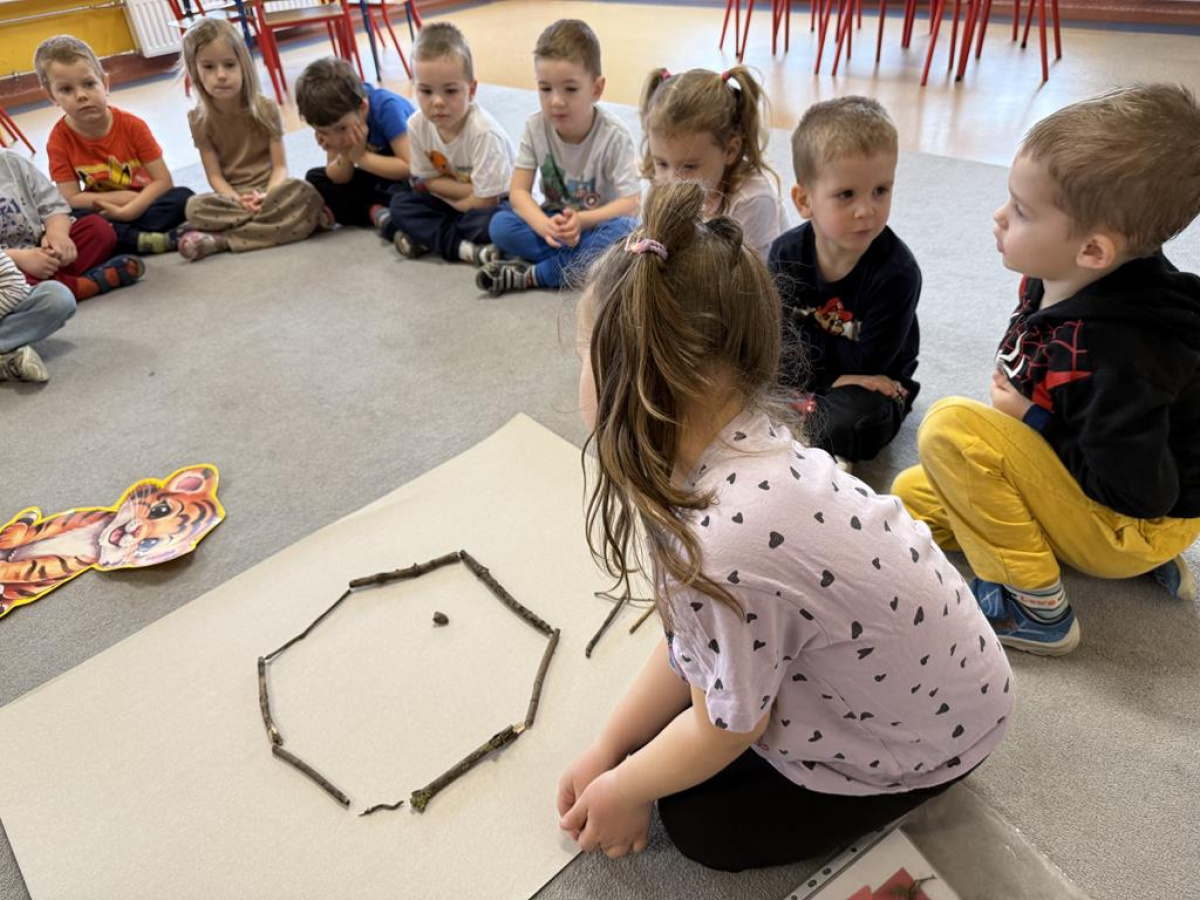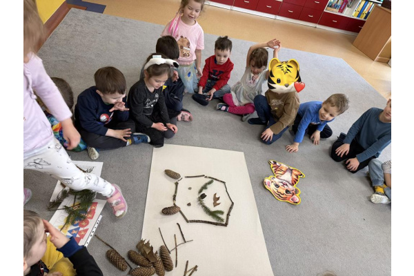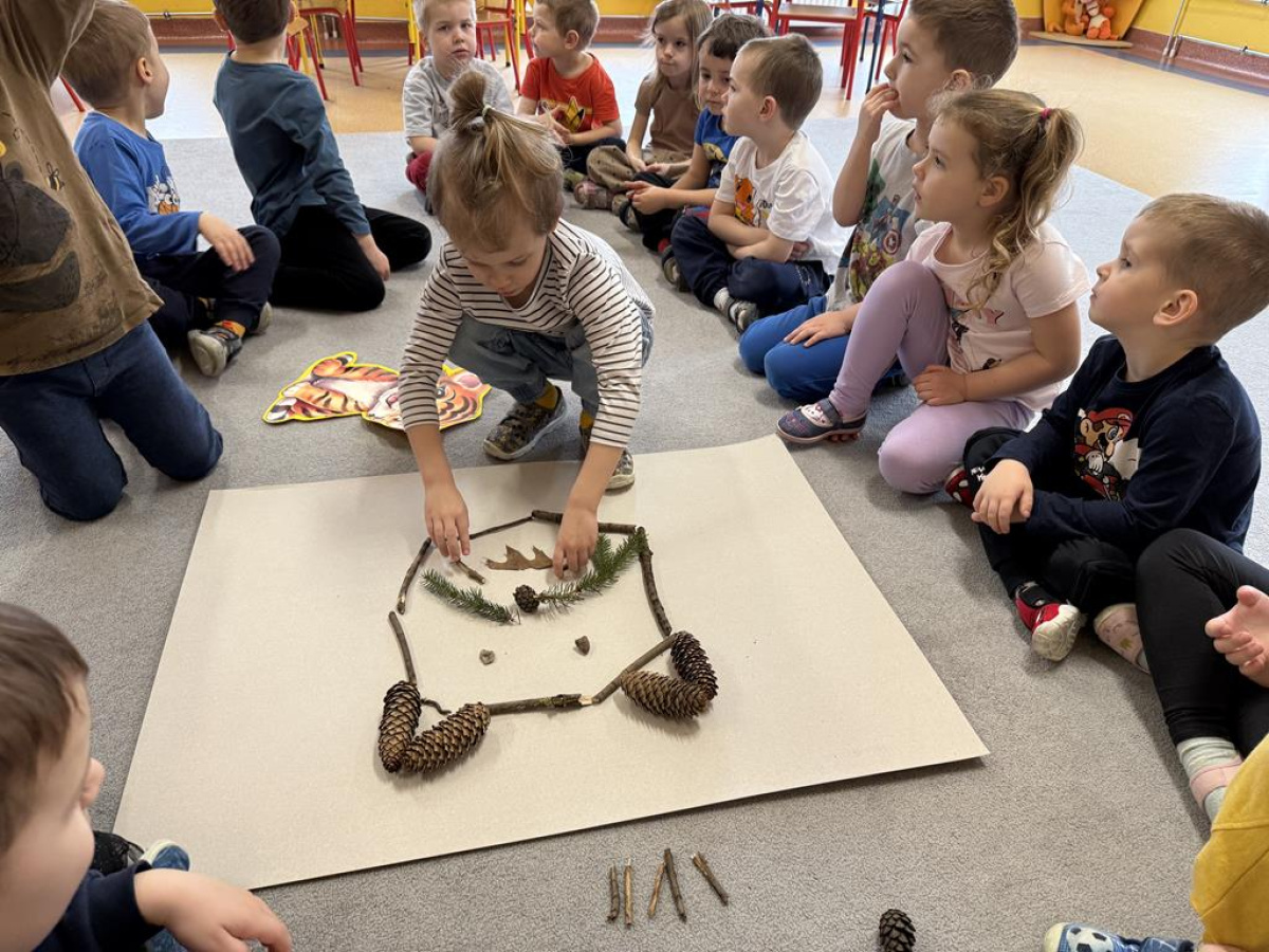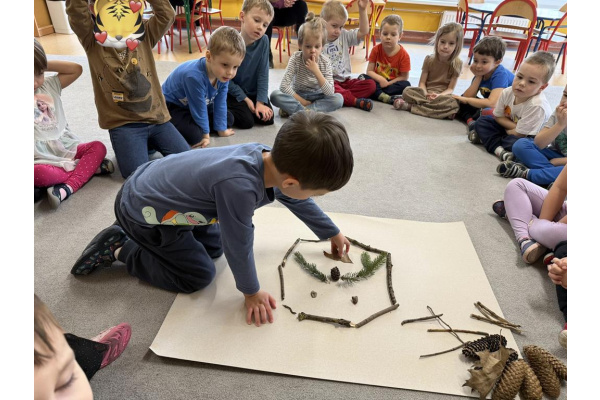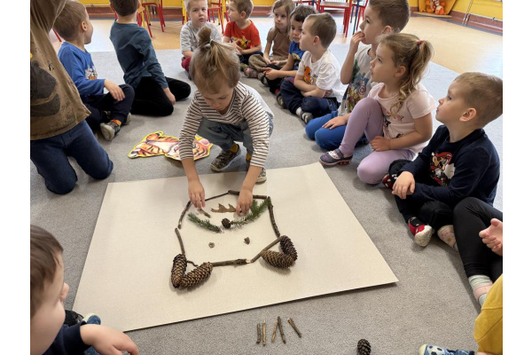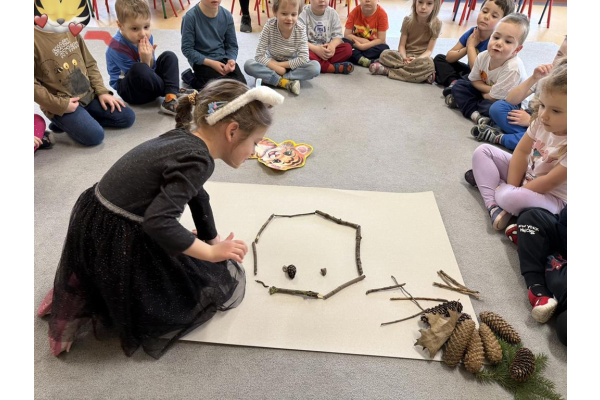 12 marca obchodziliśmy w przedszkolu Dzień Matematyki. Była to doskonała okazja, aby rozwijać wśród dzieci umiejętność przeliczania obiektów, klasyfikowania wg kształtu, tworzenia zbiorów. Działaliśmy w sali, ale również na dworze z wykorzystaniem materiałów edukacyjnych prosto z ogrodu przedszkolnego! Nasze mózgi pięknie pracowały, a my mogliśmy spożytkować energię na świeżym powietrzu, a przy okazji "złapać" troszkę witaminy D! Zwieńczeniem naszych zabaw było utworzenie symbolu naszej grupy z materiału przyrodniczego :)