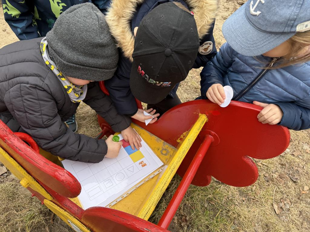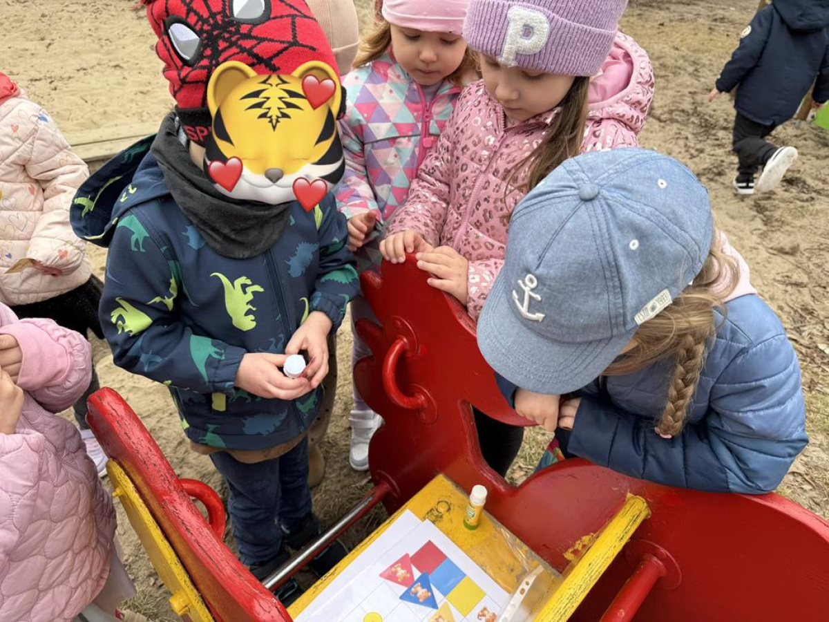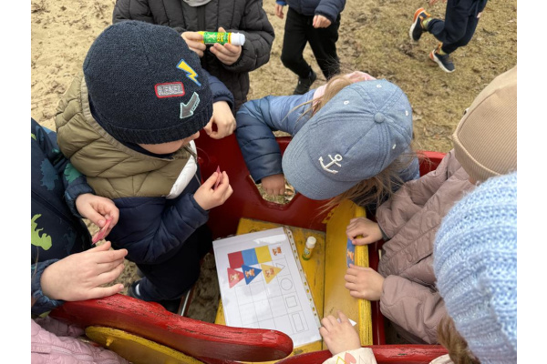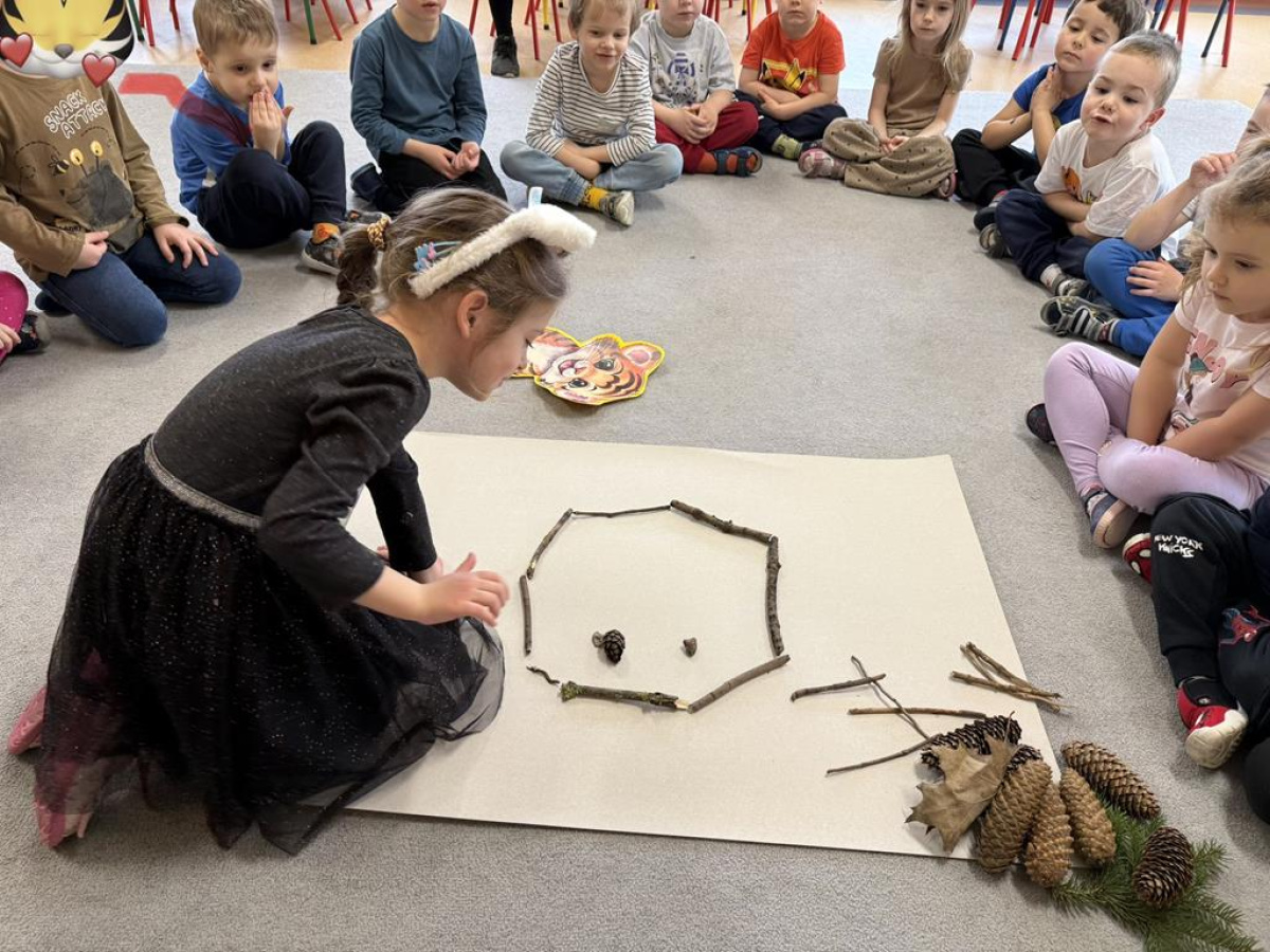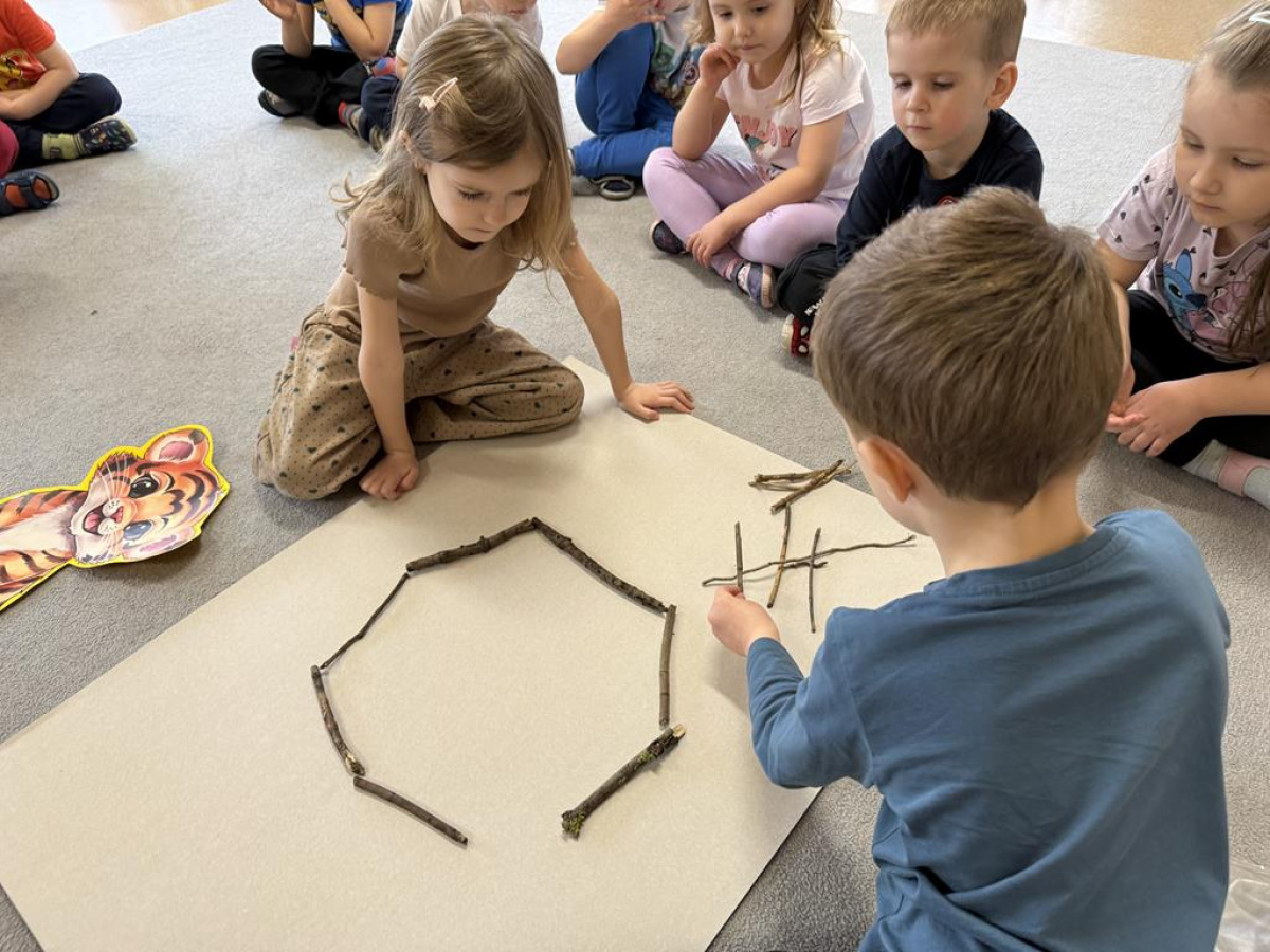 12 marca obchodziliśmy w przedszkolu Dzień Matematyki. Była to doskonała okazja, aby rozwijać wśród dzieci umiejętność przeliczania obiektów, klasyfikowania wg kształtu, tworzenia zbiorów. Działaliśmy w sali, ale również na dworze z wykorzystaniem materiałów edukacyjnych prosto z ogrodu przedszkolnego! Nasze mózgi pięknie pracowały, a my mogliśmy spożytkować energię na świeżym powietrzu, a przy okazji "złapać" troszkę witaminy D! Zwieńczeniem naszych zabaw było utworzenie symbolu naszej grupy z materiału przyrodniczego :)