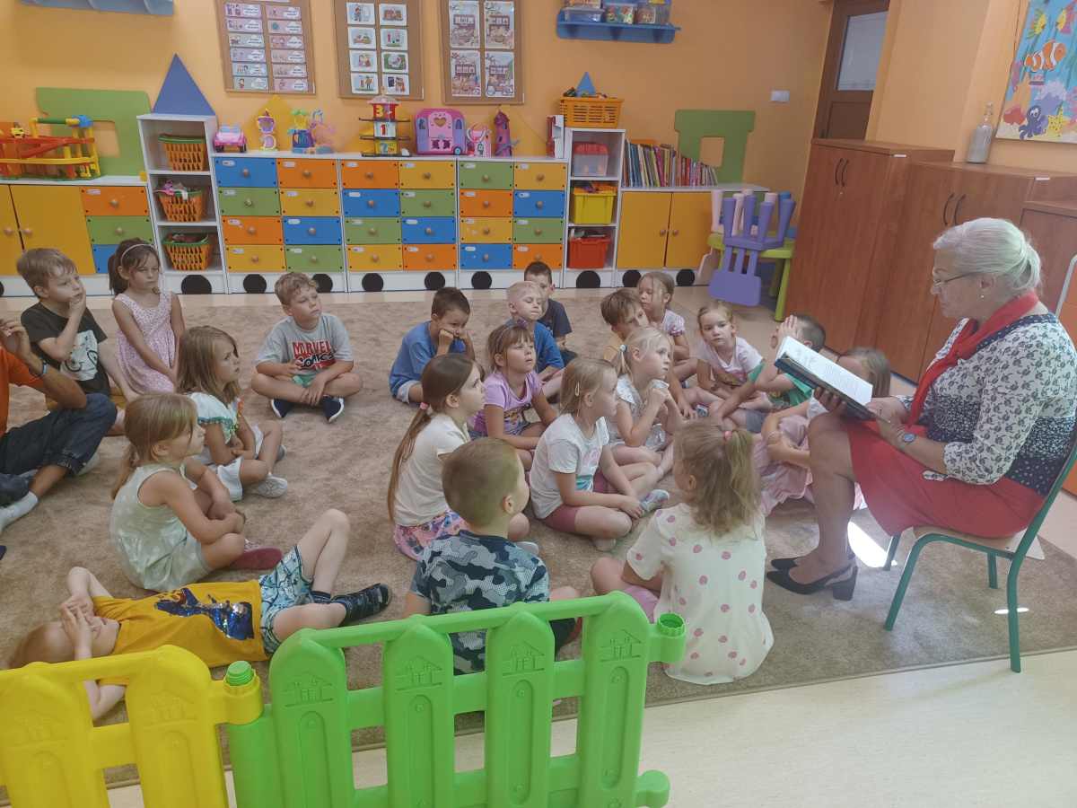 6. września w całej Polsce obchodziliśmy Dzień Narodowego Czytania. W tym roku, czytanie było poświęcone poezji Jana Kochanowskiego. Akcja ta pozwoliła przybliżyć przedszkolakom postać Jana Kochanowskiego. Jest to również okazja do popularyzacji i promocji czytelnictwa oraz wzmacniania tożsamości narodowej. Nasze kochane "Żabki" odwiedziała Pani Danusia, która czytała dzieciom bajkę, a przedszkolaki z zaciekawieniem słuchały. Zainspirowane utworem, same stworzyły własne książeczki. Bardzo dziękujemy Pani Danusi za wspólne czytania!