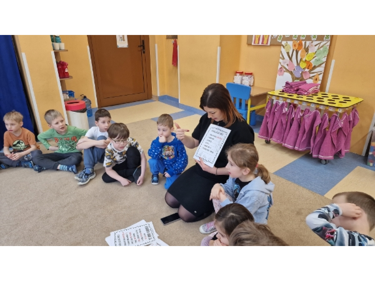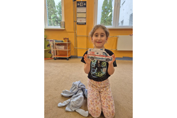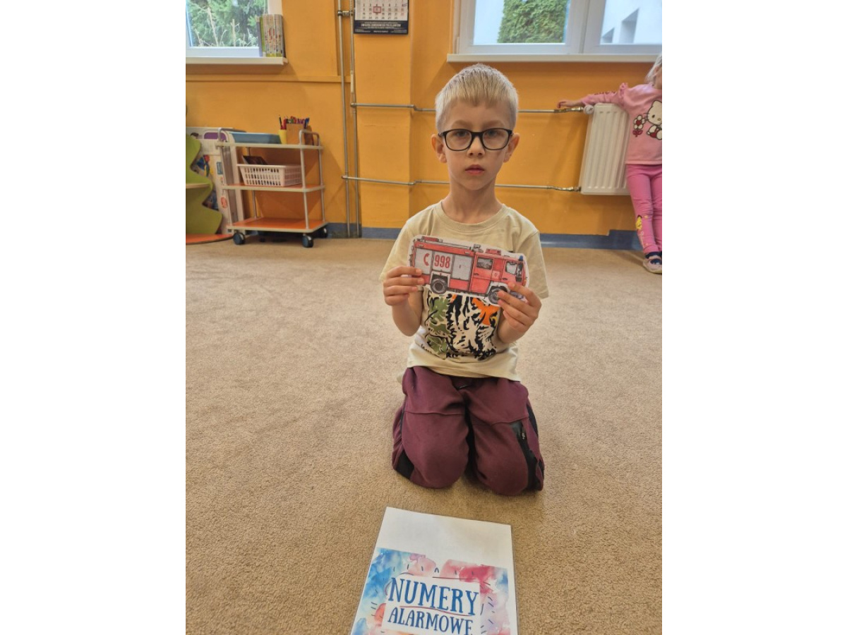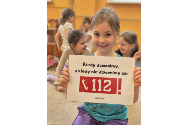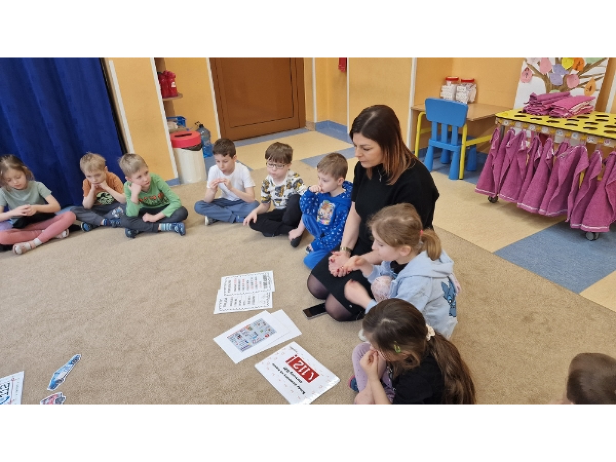 Z okazji Dnia Numeru Alarmowego 112 dzieci uczestniczyły w zajęciach edukacyjnych dotyczących zasad udzielania pierwszej pomocy oraz właściwego korzystania z numerów alarmowych. Przedszkolaki utrwalały, w jakich sytuacjach należy dzwonić pod numer 112 oraz jakie informacje należy przekazać dyspozytorowi. Podczas odgrywania scenki z Panią Patrycją ćwiczyły co zrobić gdy ktoś zasłabnie i jak powinna wygladać rozmowa z dyspozytorem.