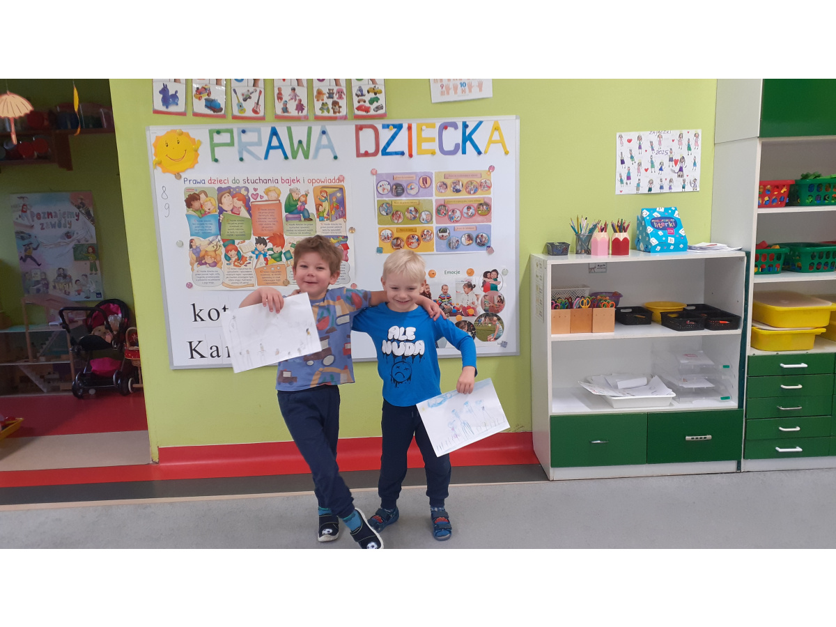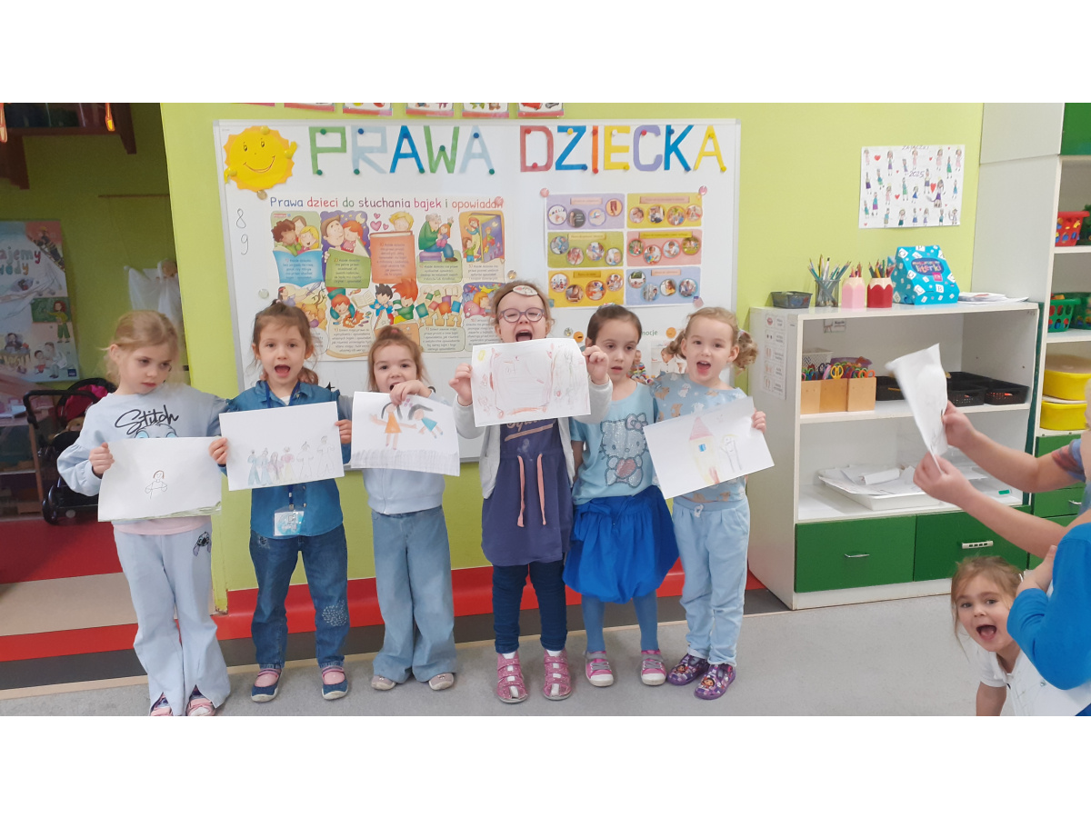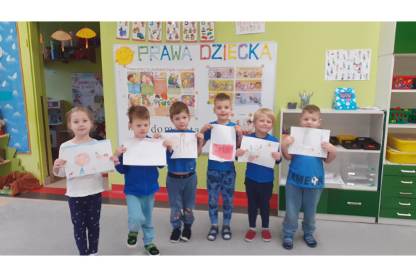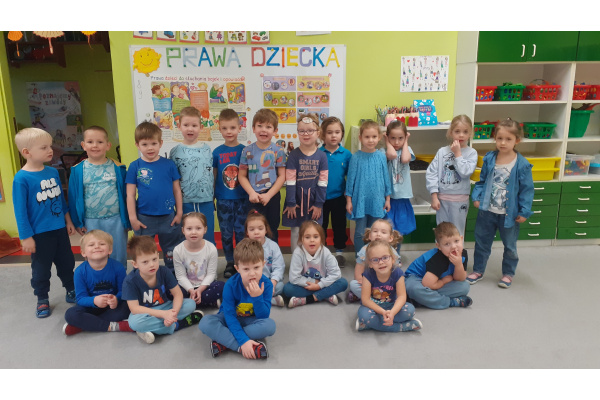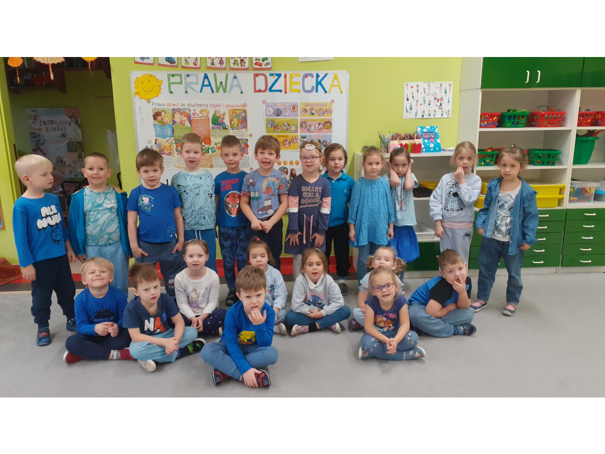 "Znamy prawa i obowiązki", tak śpiewały "Zajączki" w piosence. W czwartek, 20 listopada dzieci przyszły do przedszkola w ubraniach koloru niebieskiego, aby zasygnalizować ważne znaczenie tego dnia. Podczas rozmowy przy ilustracjach dzieci dowiedziały się jakie mają prawa i w jaki sposób dorośli pomagają im w ich realizacji. W pracy plastycznej przedszkolaki przedstawiły, które prawa są dla nich ważne. Szczęśliwe dzieciństwo związane jest z przestrzeganiem Praw Dziecka.