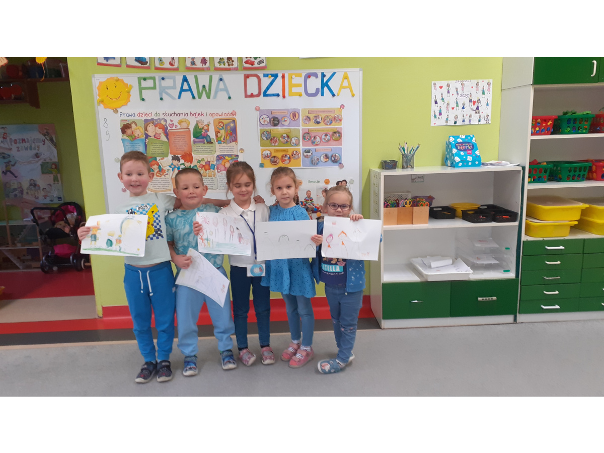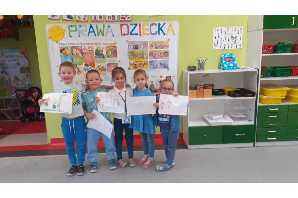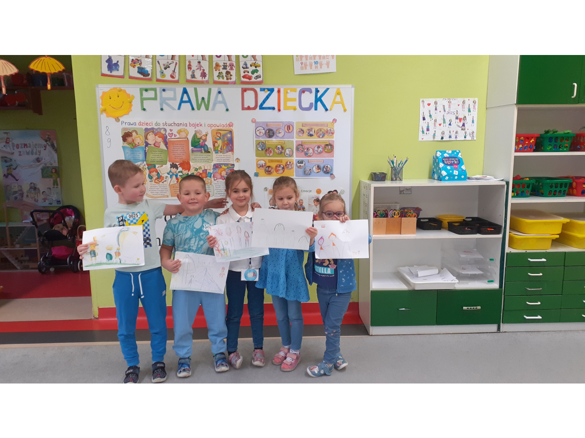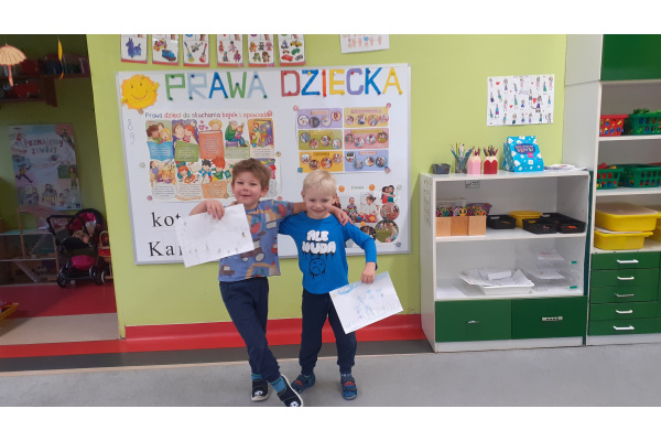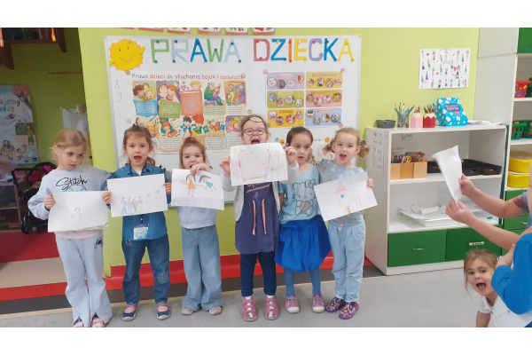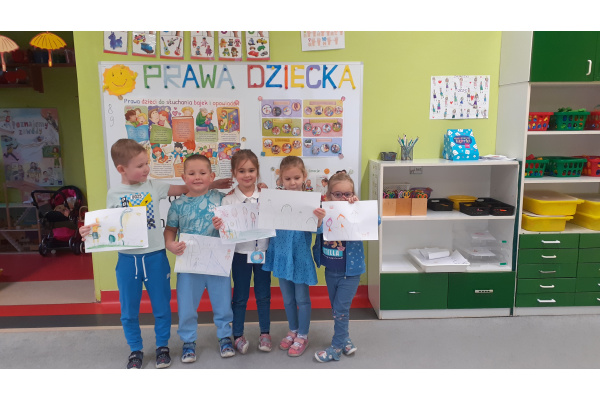 "Znamy prawa i obowiązki", tak śpiewały "Zajączki" w piosence. W czwartek, 20 listopada dzieci przyszły do przedszkola w ubraniach koloru niebieskiego, aby zasygnalizować ważne znaczenie tego dnia. Podczas rozmowy przy ilustracjach dzieci dowiedziały się jakie mają prawa i w jaki sposób dorośli pomagają im w ich realizacji. W pracy plastycznej przedszkolaki przedstawiły, które prawa są dla nich ważne. Szczęśliwe dzieciństwo związane jest z przestrzeganiem Praw Dziecka.
