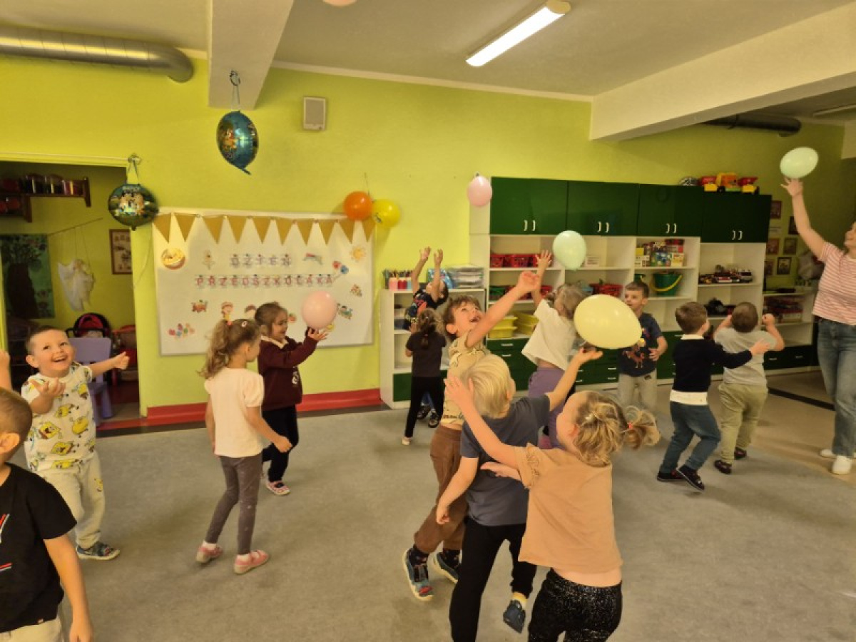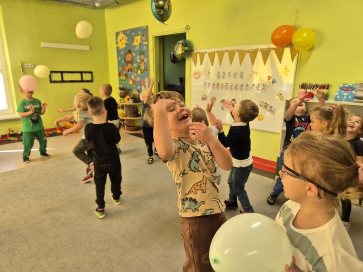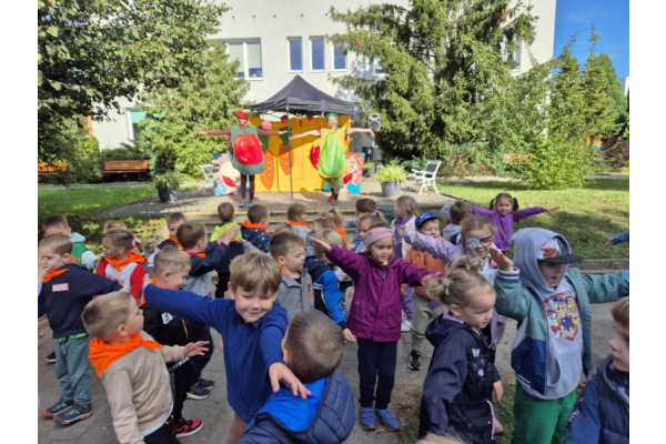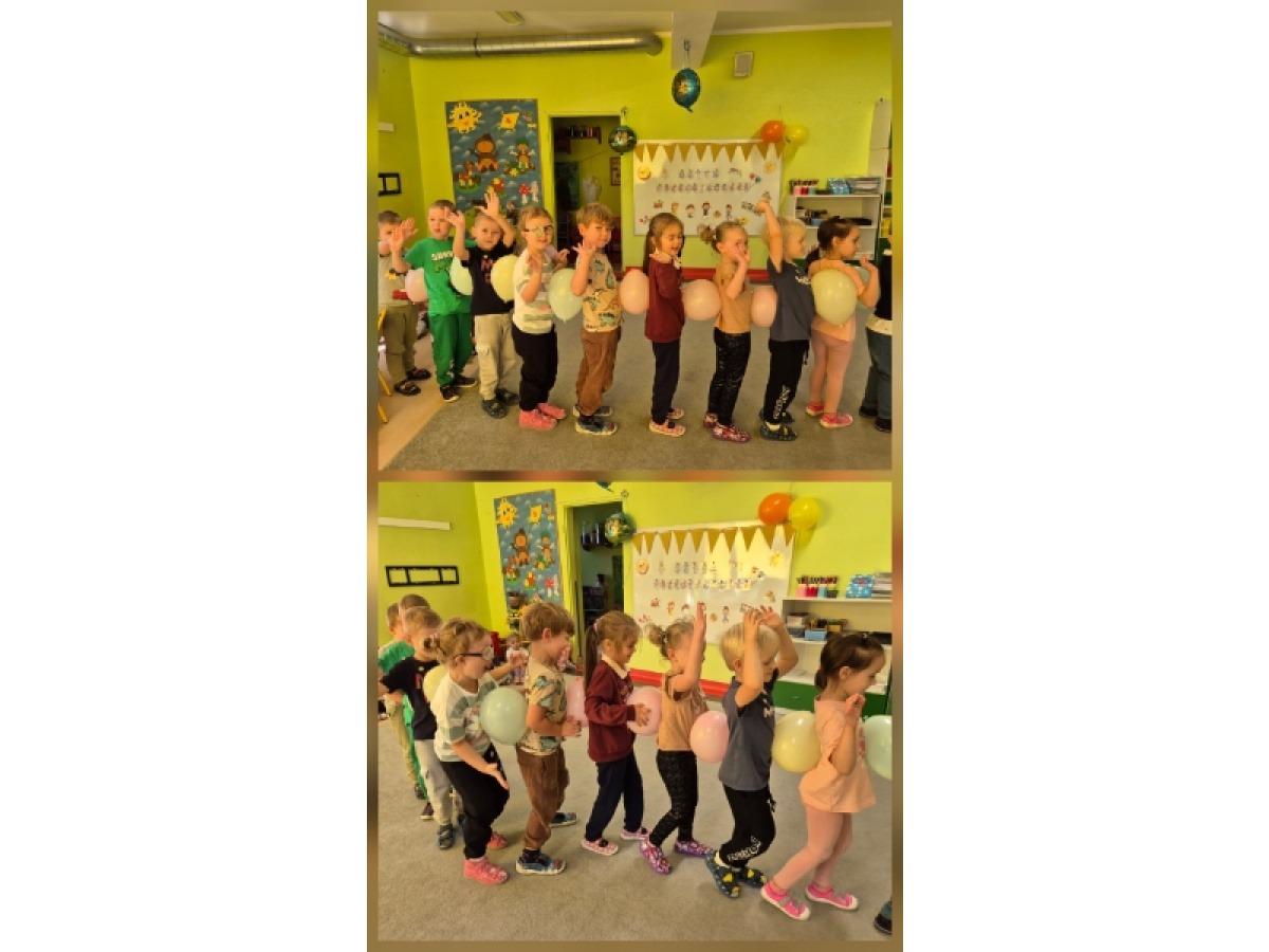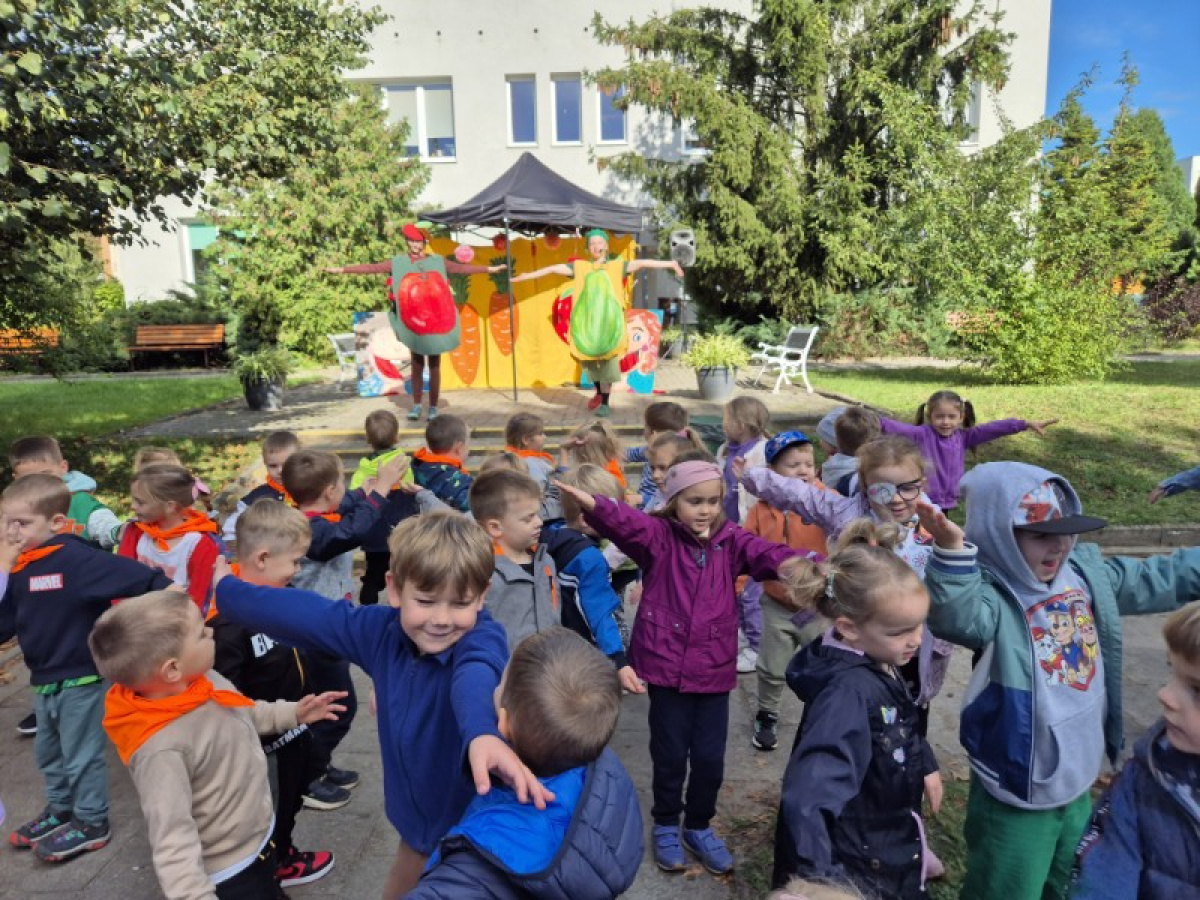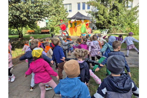 23 września obchodziliśmy w naszym przedszkolu wyczekiwany dzień przedszkolaka. Z aktorami Magmowcami bawiliśmy się przy animacji ruchowej w spektaklu pt. ,,Jabłuszko i gruszka witają przedszkole". W naszej sali również odbyło się zabawy. Uśmiechu i radości nie było końca. Kochane dzieci życzymy Wam raz jeszcze wszystkiego najlepszego!