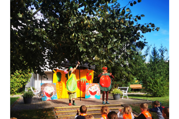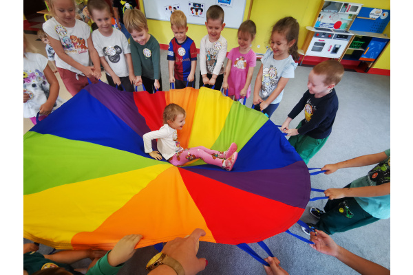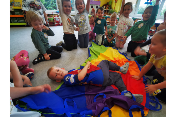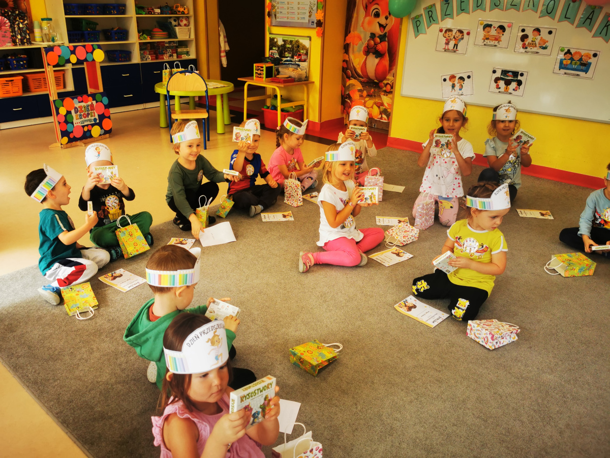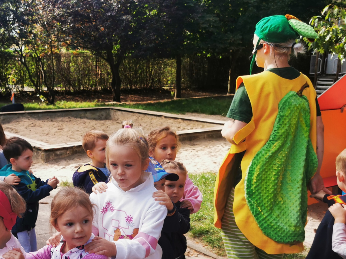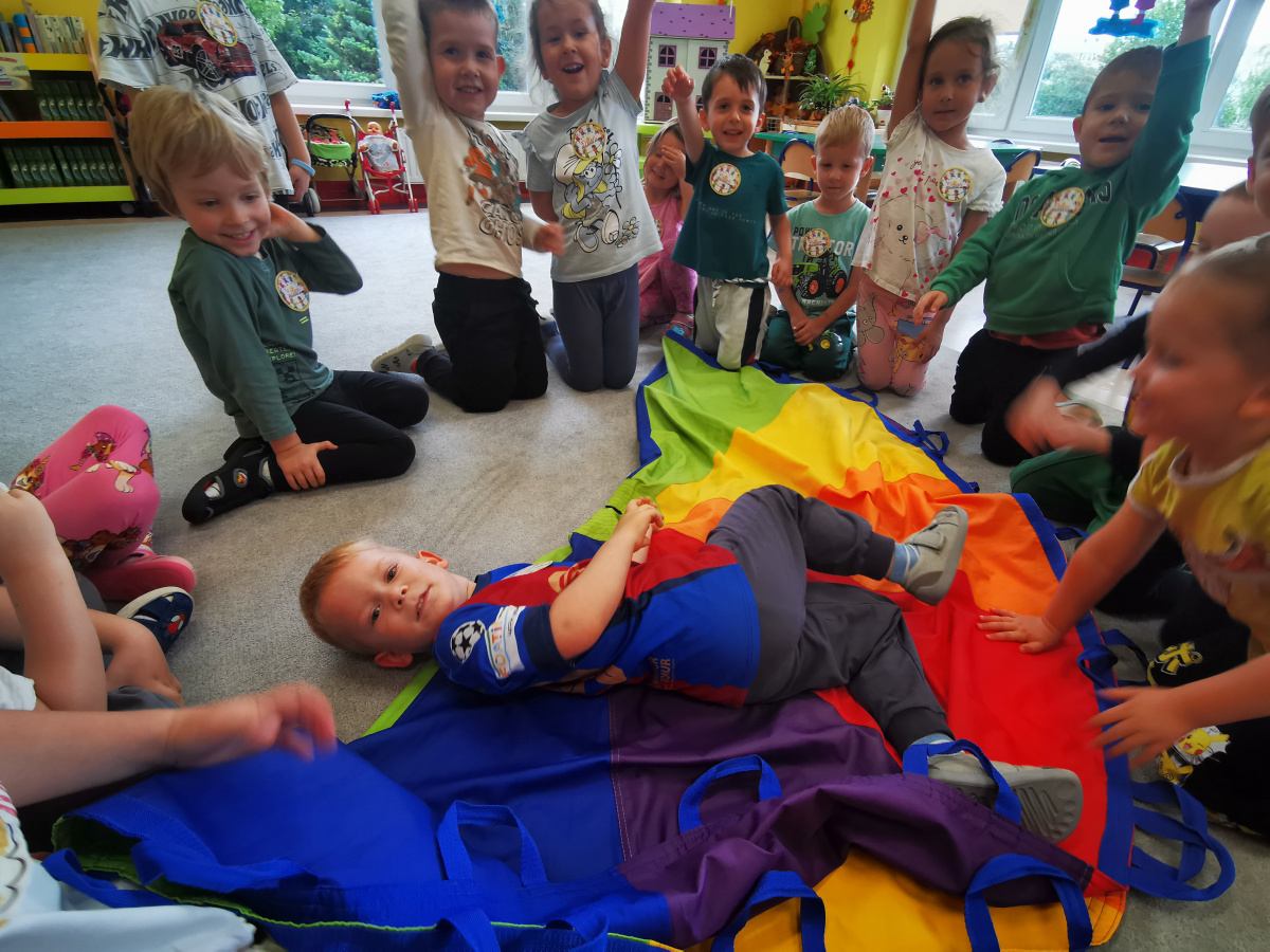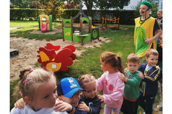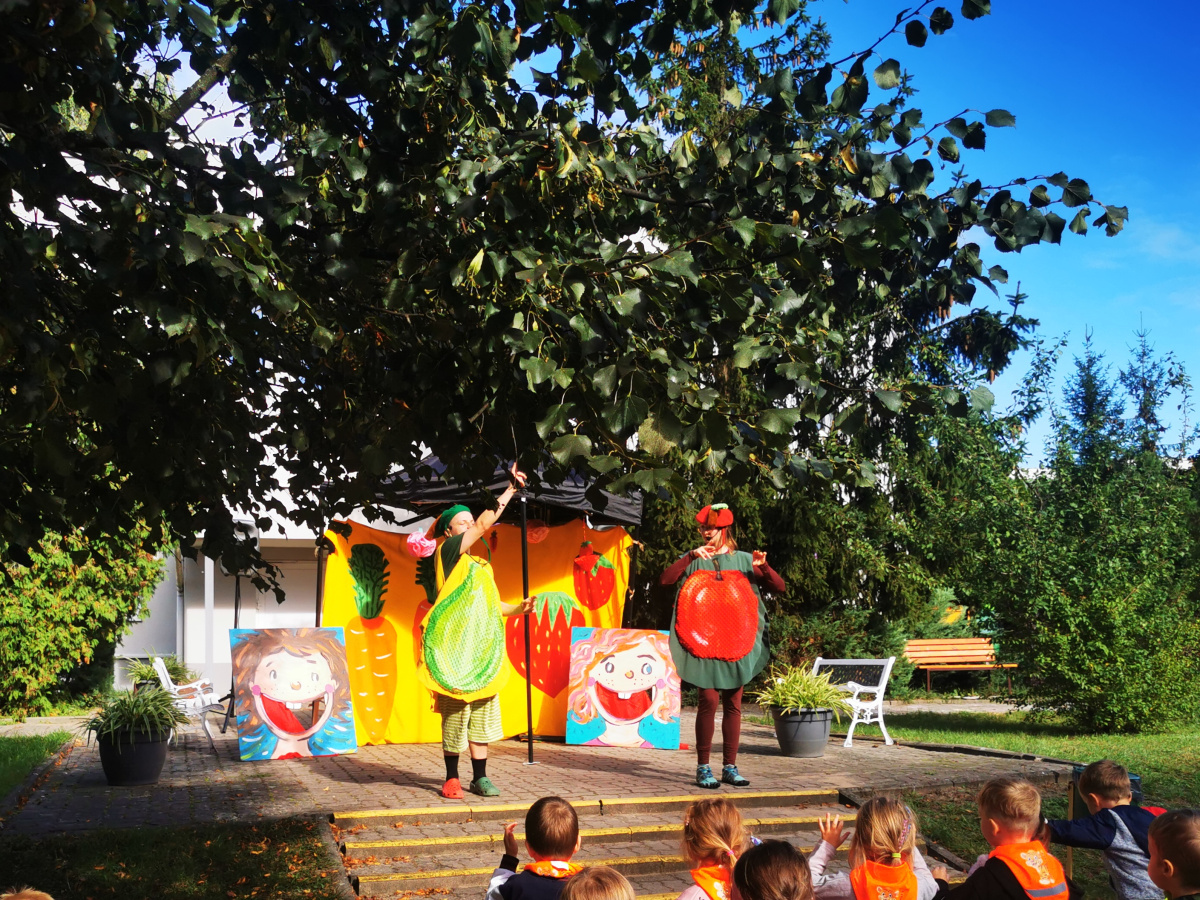 23 września dzieci z grupy „Liski” radośnie obchodziły Dzień Przedszkolaka. Tego dnia czekała na nie wyjątkowa niespodzianka – Teatrzyk Magmowcy z animacją ruchową pt. „Jabłuszko i Gruszka witają przedszkole”. Przedszkolaki chętnie uczestniczyły w zabawach muzyczno-ruchowych na ogrodzie, a w sali bawiły się przy chuście Klanzy. Zabawa była pełna śmiechu, radości i pozytywnej energii. Na zakończenie każde dziecko otrzymało upominek, dyplom oraz kolorową opaskę, które były miłym podsumowaniem tego wyjątkowego dnia.