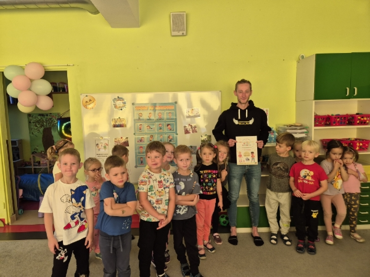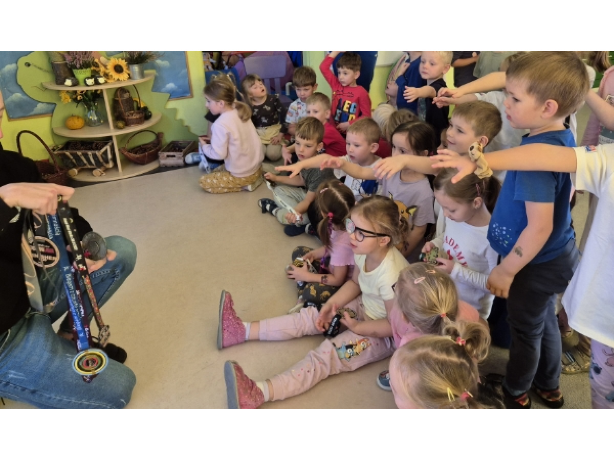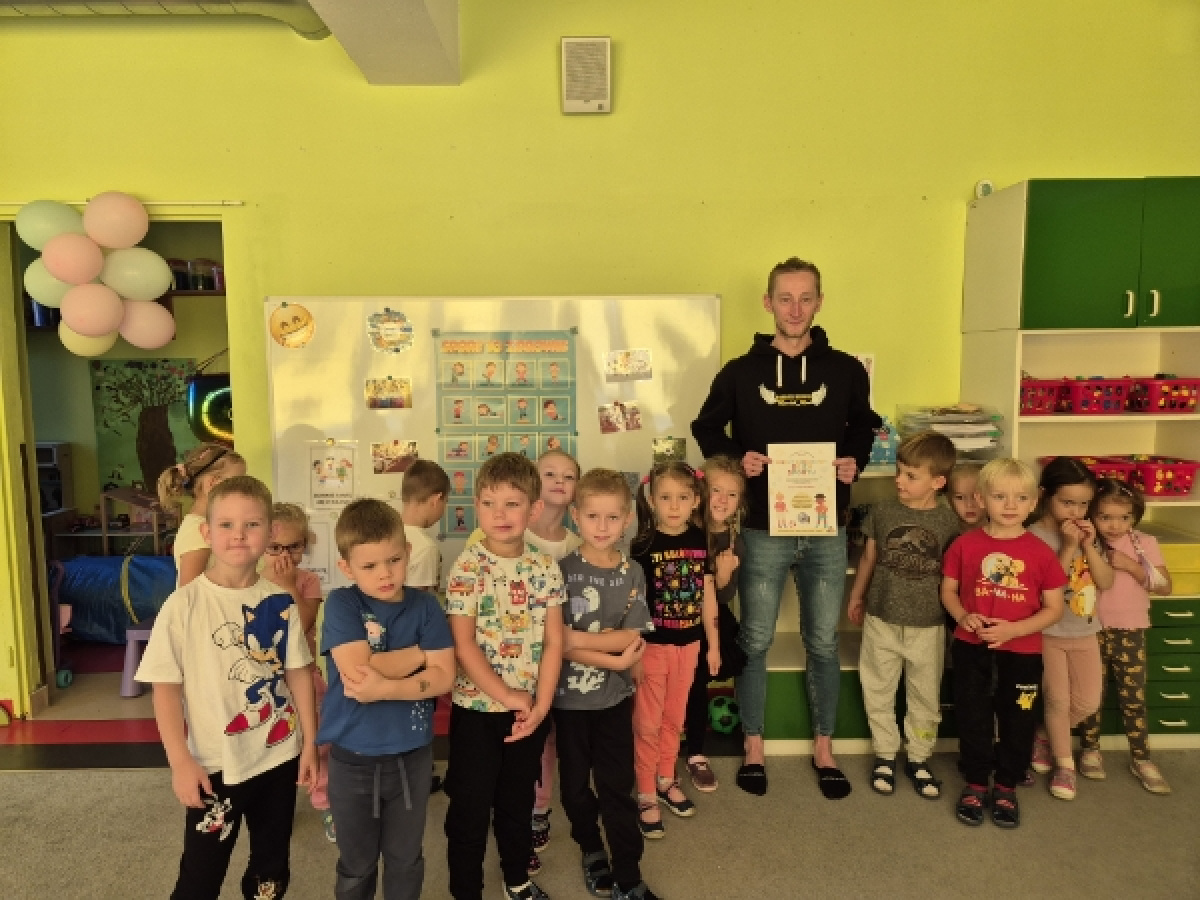 26 września obchodziliśmy dzień sportu. Głównym celem tego dnia było zachęcanie dzieci do aktywności ruchowej i kształtowanie zachowań prozdrowotnych. Dzieci bardzo chętnie brały udział w konkurencjach sportowych i zabawach ruchowych. Odwiedził nas również Pan Patryk maratończyk, który opowiedział o swojej pasji do biegania i zaprezentowal swoje medal. Dzieci były zachwycone, a my serdecznie dziękujemy!