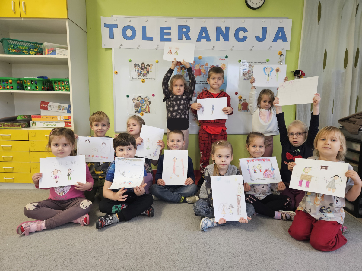 W naszej grupie nie od dziś wiemy co to znaczy być tolerancyjnym. Nie ma ludzi innych i gorszych są tylko tacy wyjątkowi. Na zajęciach przypomnieliśmy sobie te zagadnienia i stworzyliśmy piękne tematyczne rysunki.