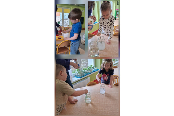 22 marca obchodziliśmy w przedszkolu Międzynarodowy Dzień Wody. Dzieci poznawały znaczenie wody w życiu ludzi, zwierząt i roślin. Dowiedziały się, że woda jest niezbędna do życia oraz że jej picie ma duże znaczenie dla zdrowia. Przedszkolaki uczestniczyły również w doświadczeniach z wodą, podczas których samodzielnie wyciągały wnioski oraz zadawały pytania dotyczące obserwowanych zjawisk. Zajęcia były ciekawą i wartościową formą nauki poprzez działanie.