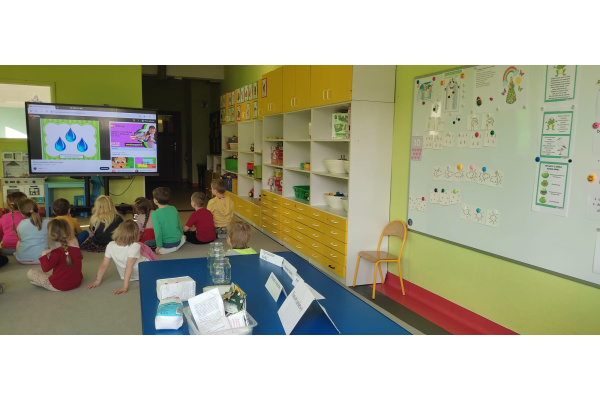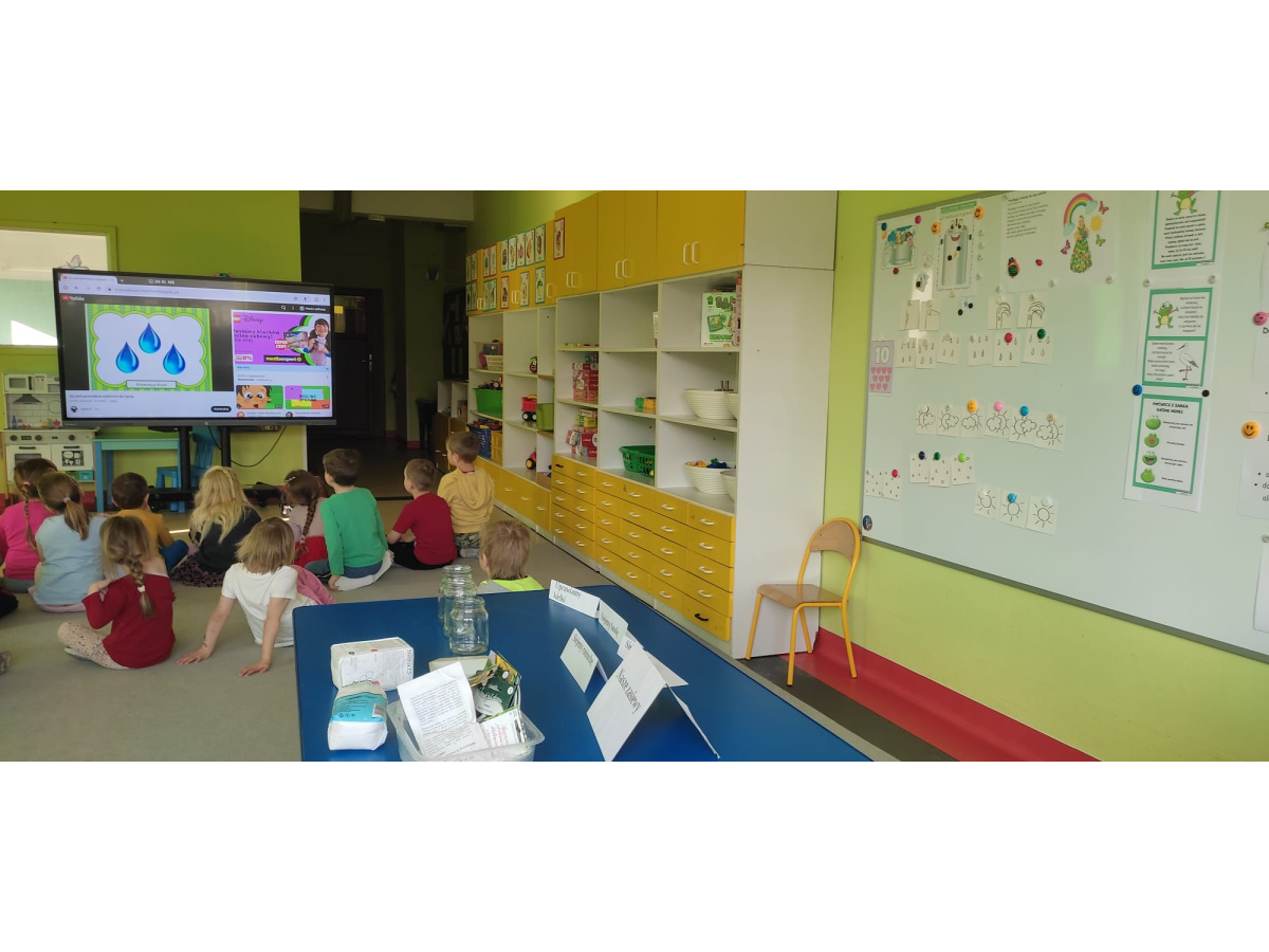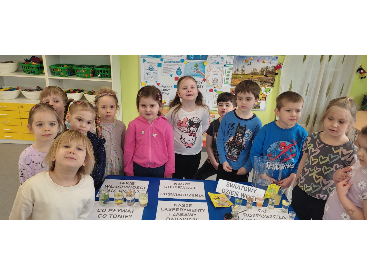 Z okazji Światowego Dnia Wody dzieci z grupy Myszek uczestniczyły w ciekawych zabawach badawczych i doświadczeniach z wodą. Przedszkolaki sprawdzały, co pływa, a co tonie, obserwowały właściwości wody oraz z dużym zainteresowaniem oglądały film edukacyjny poświęcony jej znaczeniu. To był dzień pełen radości, odkrywania i świetnej zabawy!