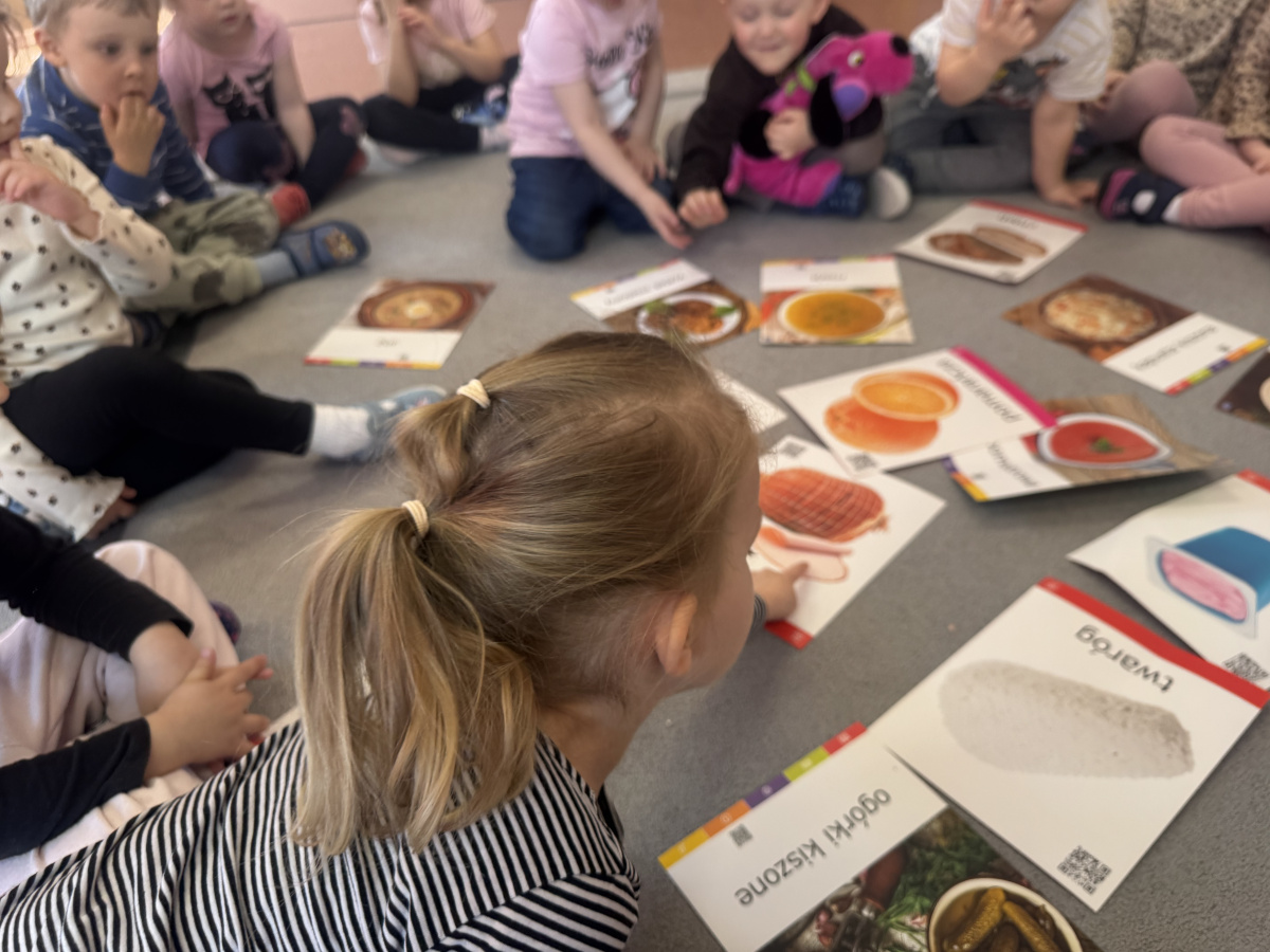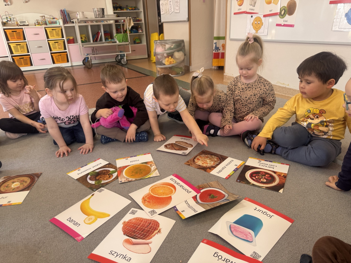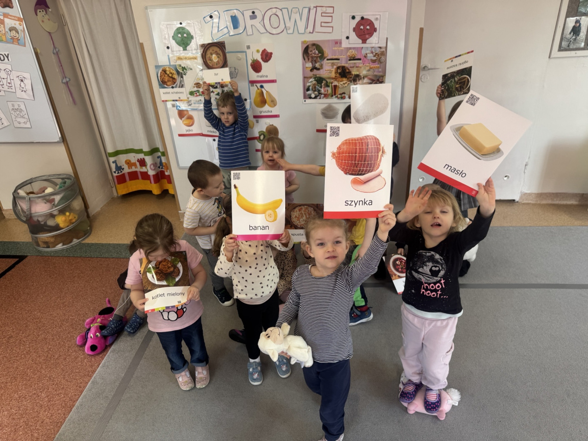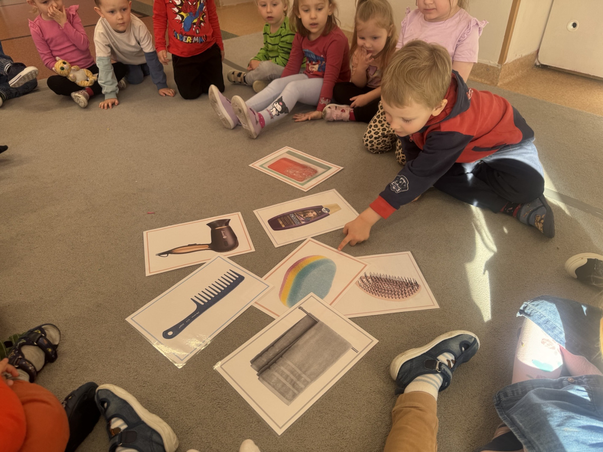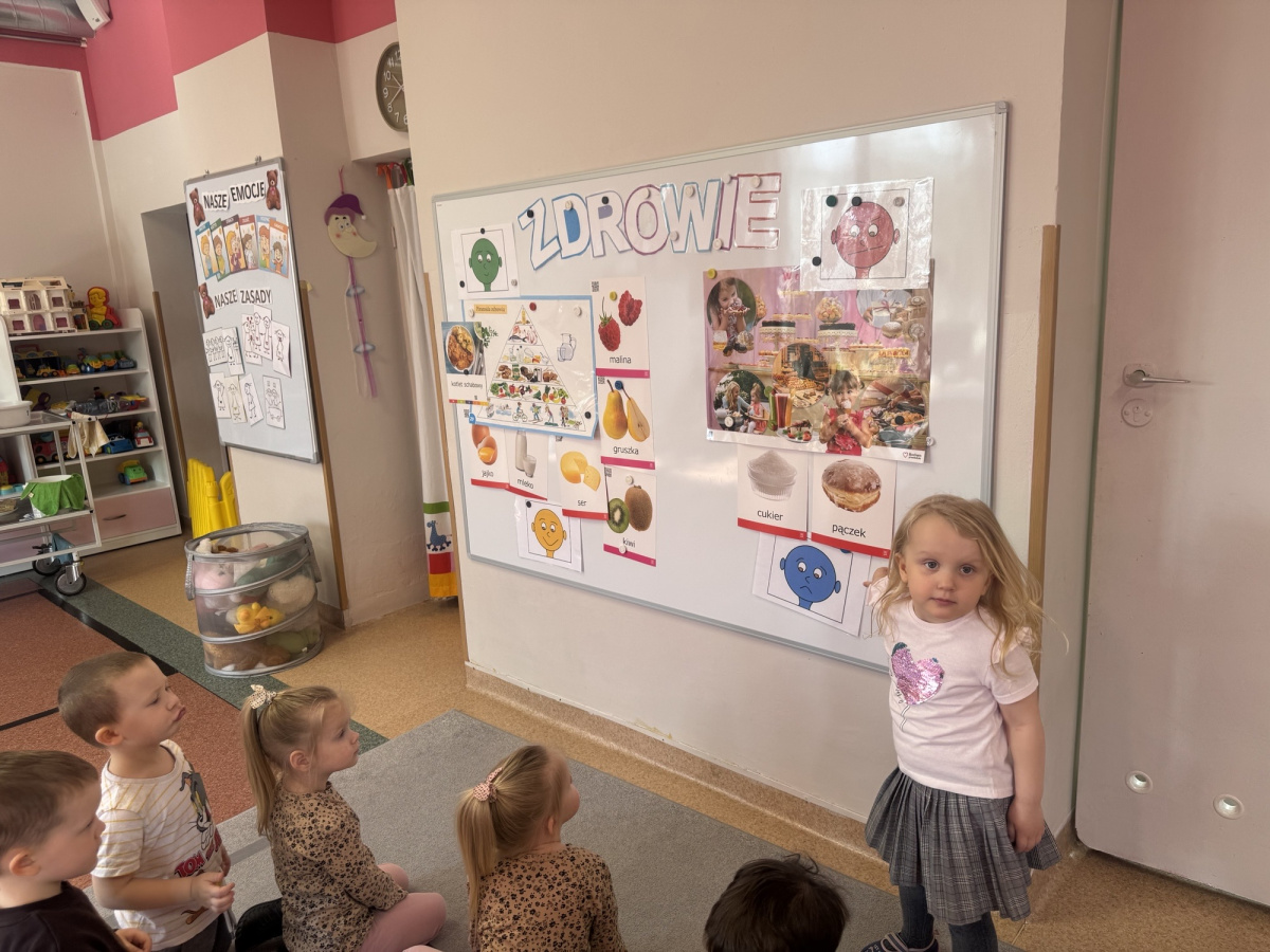 Dzieci poznały zasady zdrowego stylu życia oraz znaczenie prawidłowego odżywiania. W kolejnych dniach rozmawialiśmy również o higienie – prawidłowym myciu rąk, korzystaniu z toalety, dbaniu o wygląd oraz czesaniu włosów.