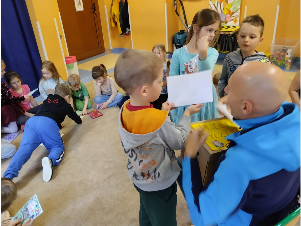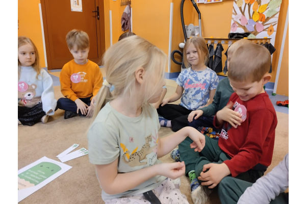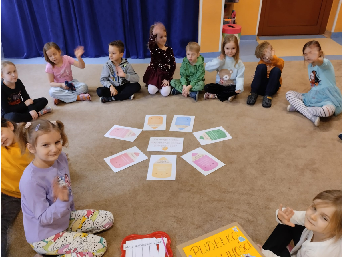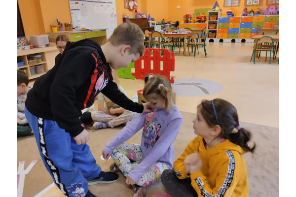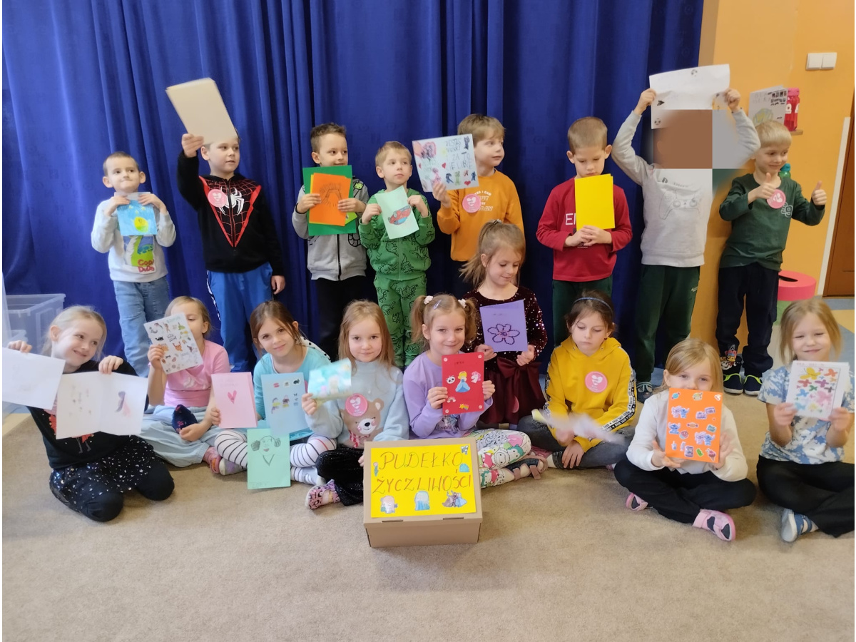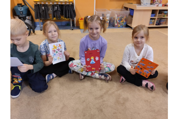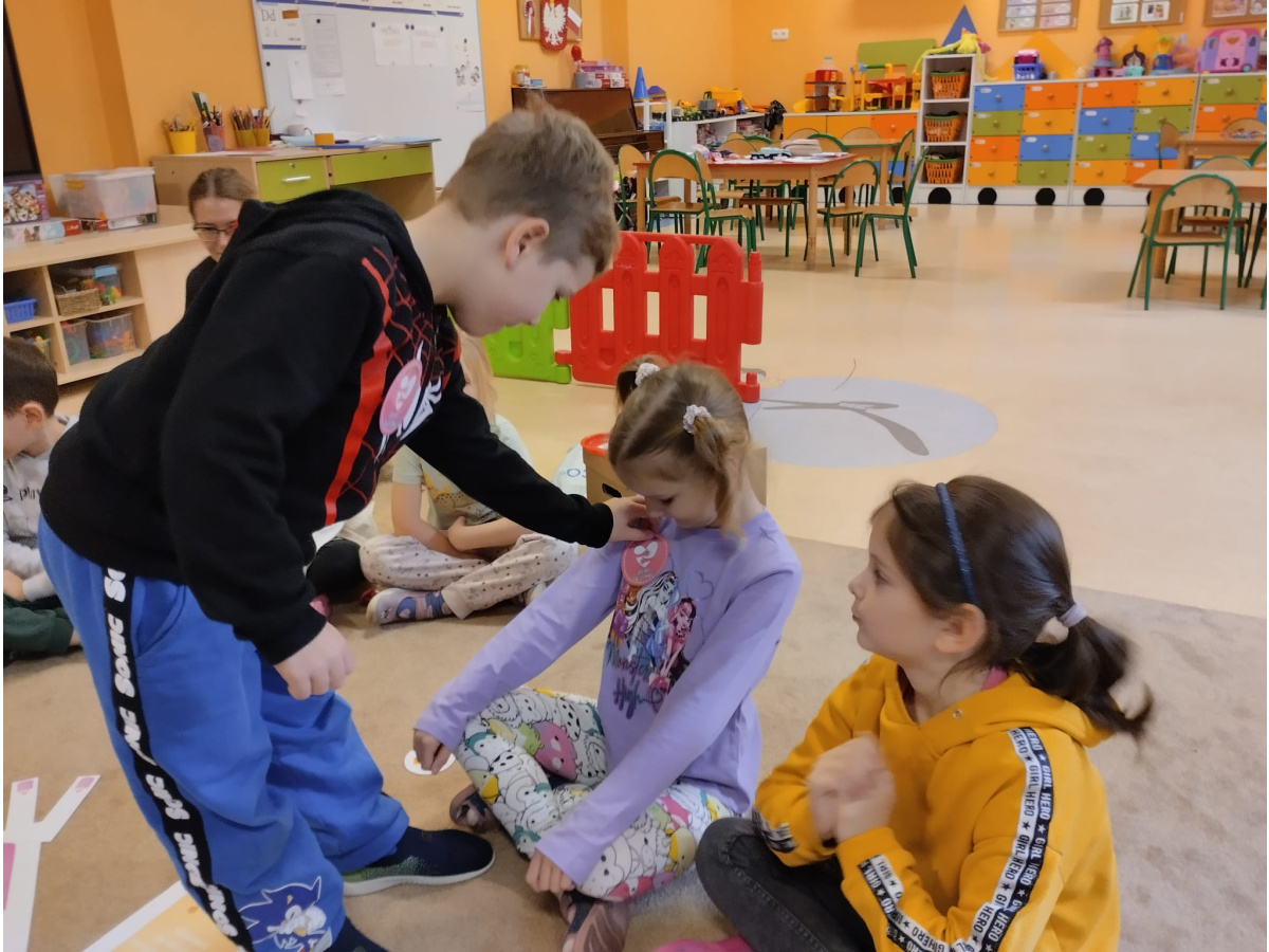 21 listopada to "Dzień Życzliwości". Z tej okazji przypomnieliśmy sobie co oznacza słowo "życzliwość" i jaki wpływ ma nasze zachowanie na samopoczucie innych osób. Wspólnie szukaliśmy także odpowiedzi na pytanie "Co mogę zrobić, aby sprawić komuś przyjemność?". Okazało się, że pomysłów było naprawdę dużo. Za wcielenie ich w życie, dzieci zostały nagrodzone odznaką "Życzliwego kolegi/koleżanki". Punktem szczególnym dzisiejszego dnia było podarowanie wcześniej wylosowanemu dziecku laurki, która została wykonana z dużą starannością i dziecięcym sercem.