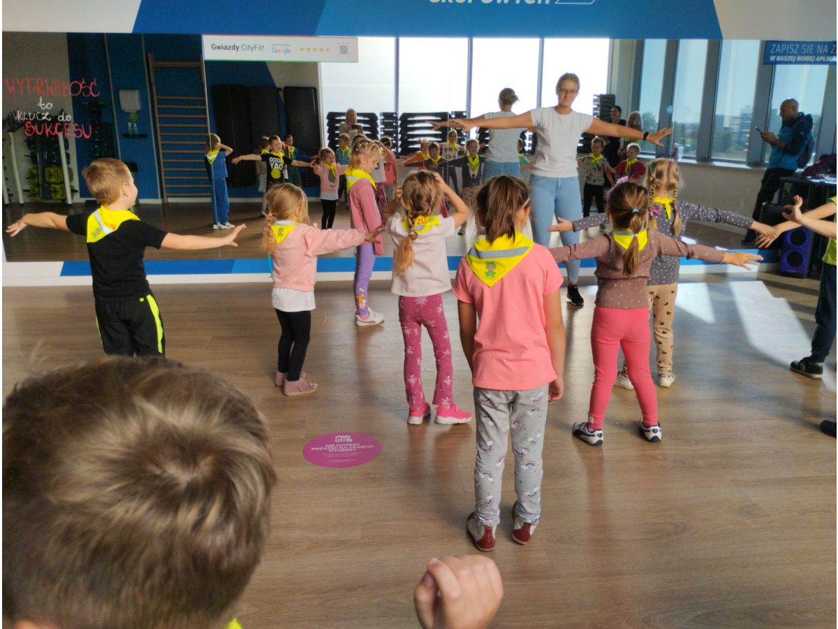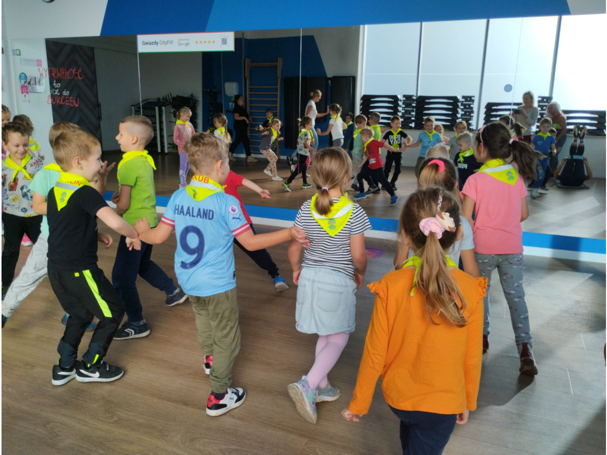 26 września z okazji obchodzonego "Europejskiego Dnia Sportu" nasze Żabki odwiedziły siłownię "City Fit". Poznały miejsce, gdzie dorośli mogą aktywnie spędzać czas, dbać o swoją sylwetkę i zdrowie. Same również miały okazję wziąć udział w zabawach tanecznych i na sportowo spędzić czas ze swoimi koleżankami i kolegami z grupy.