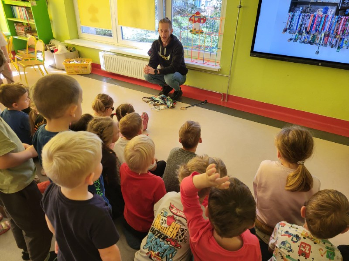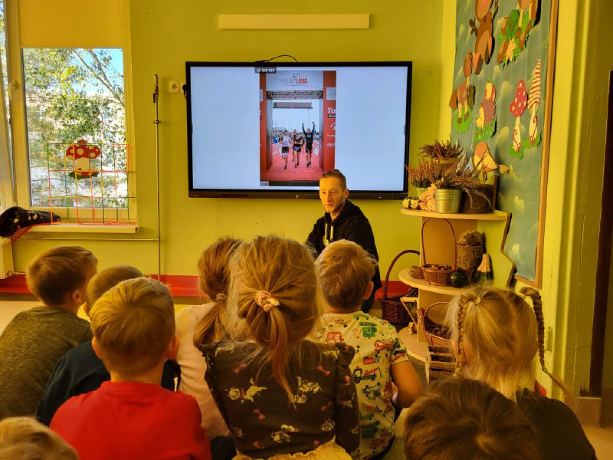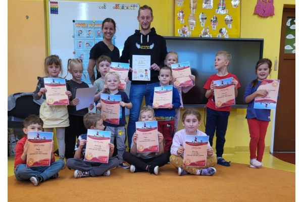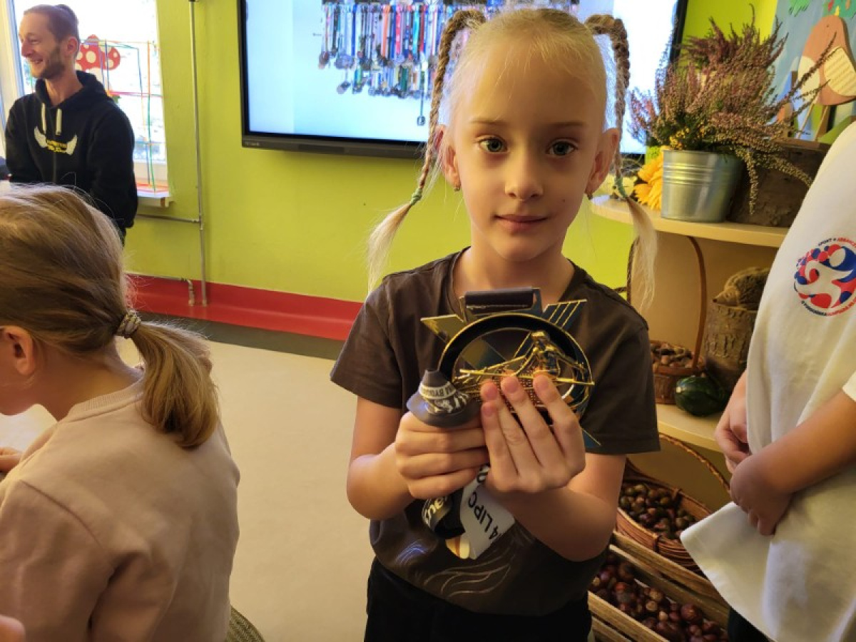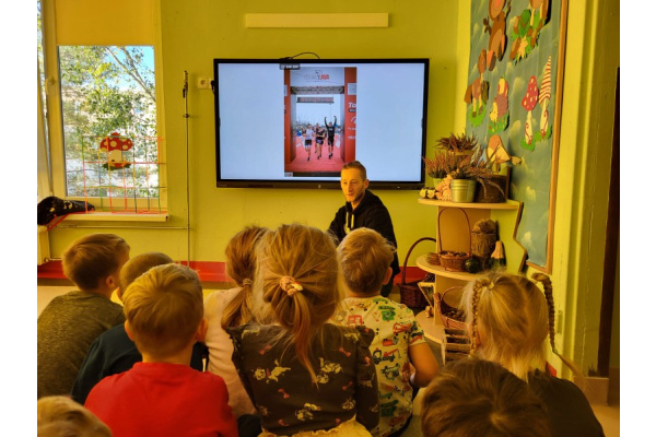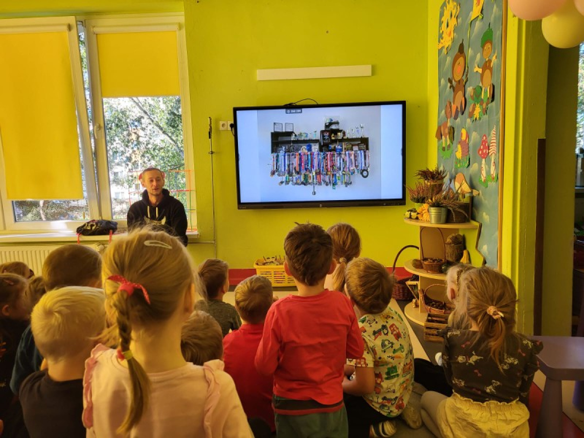 26 września obchodzimy Europejski Dzień Sportu. Z tej okazji Do Krecika Szybownika przyjechał Maratończyk Pan Patryk Mendel. Pan Patryk opowiedział nam jak zaczęła się jego przygoda z bieganiem. Jak wiele wsparcia daje mu jego najbliższa rodzina oraz jak ze swoimi siostrami ukończyli sztafetę Triathlonu. Okazuje się, że dla biegacza wsiąść na rower i dać z siebie wszystko, dokładnie tak jak na biegu, to ogromne wyzwanie. Staraliśmy się policzyć wszystkie puchary oraz medale Pana Patryka. Ostatecznie oszacowaliśmy ich ilość na 22 puchary oraz 120 medali. Na zakończenie podzieliliśmy się na 3 drużyny i razem z Panem Patrykiem pokonaliśmy mini tor przeszkód. Serdecznie dziękujemy za poświęcony czas i podzielenie się swoją pasją.